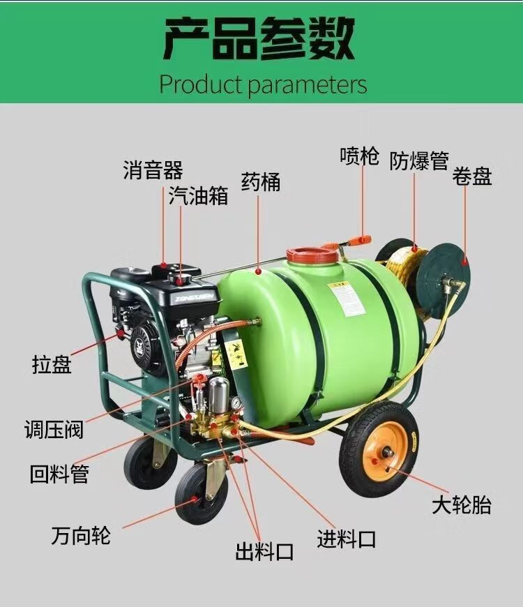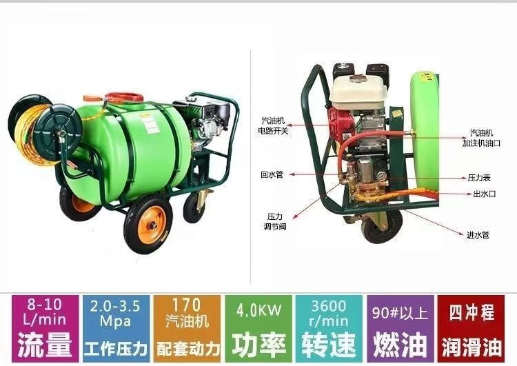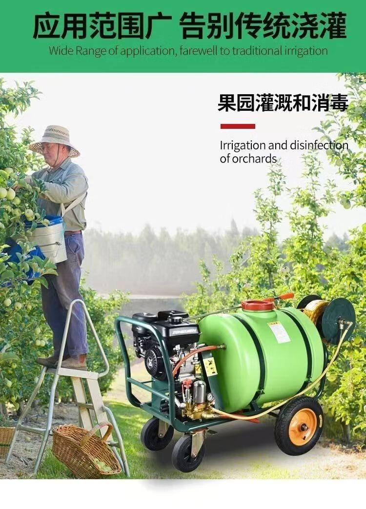 Gasoline powered hand push sprayer non-electric 2024 new high-pressure agricultural sprayer disinfection sprayer truck 300L 1 piece with 100m pipe