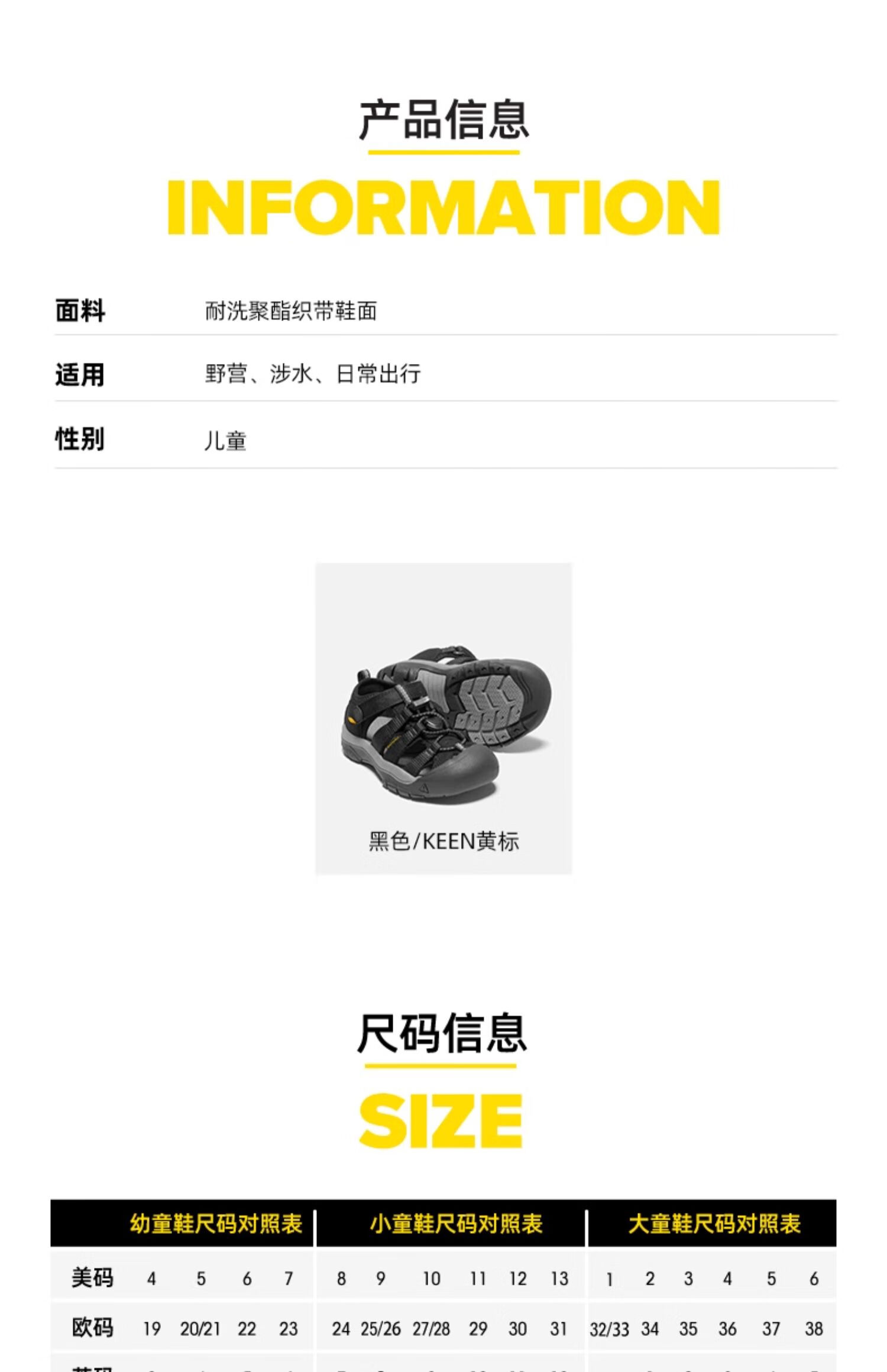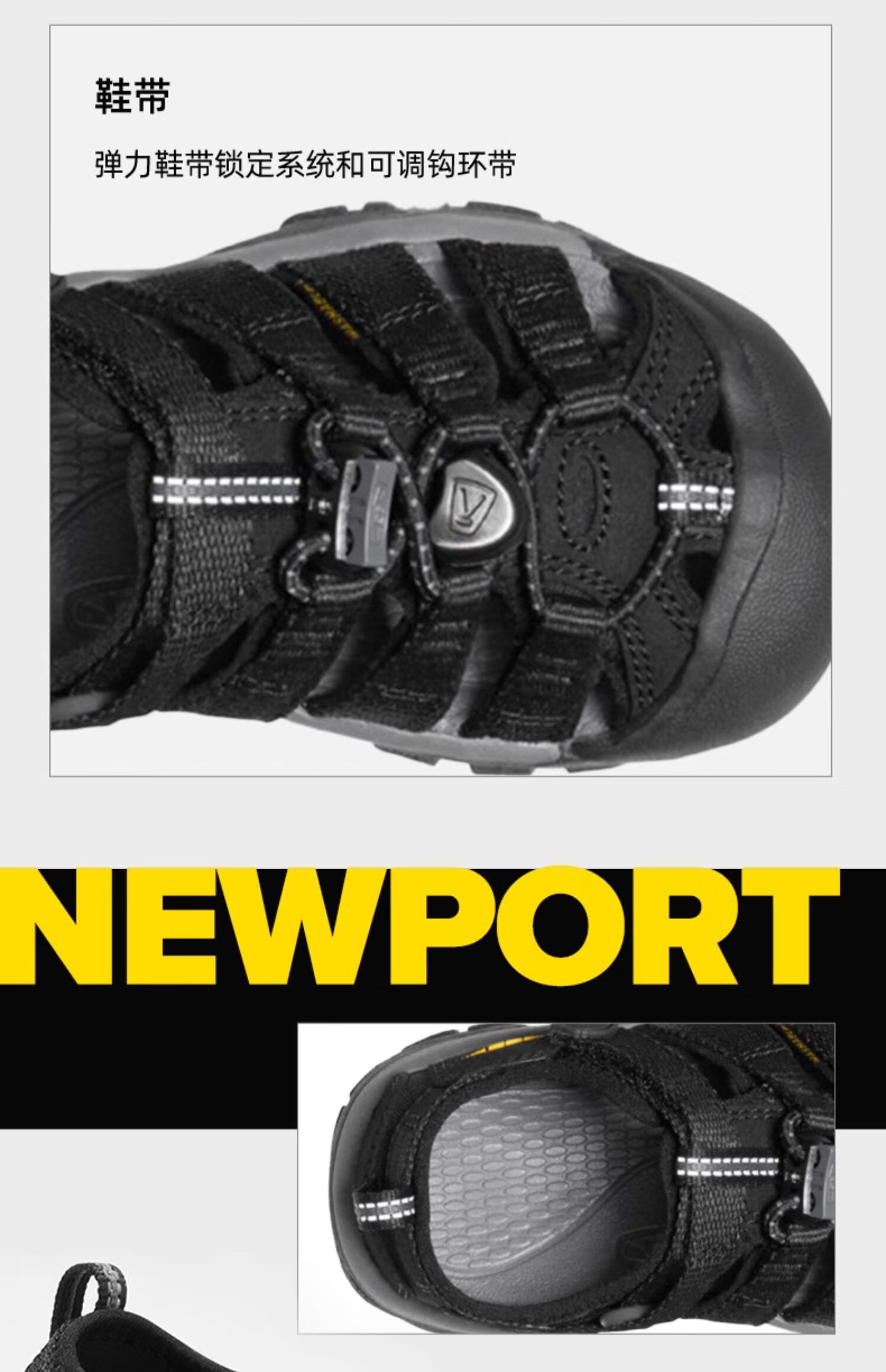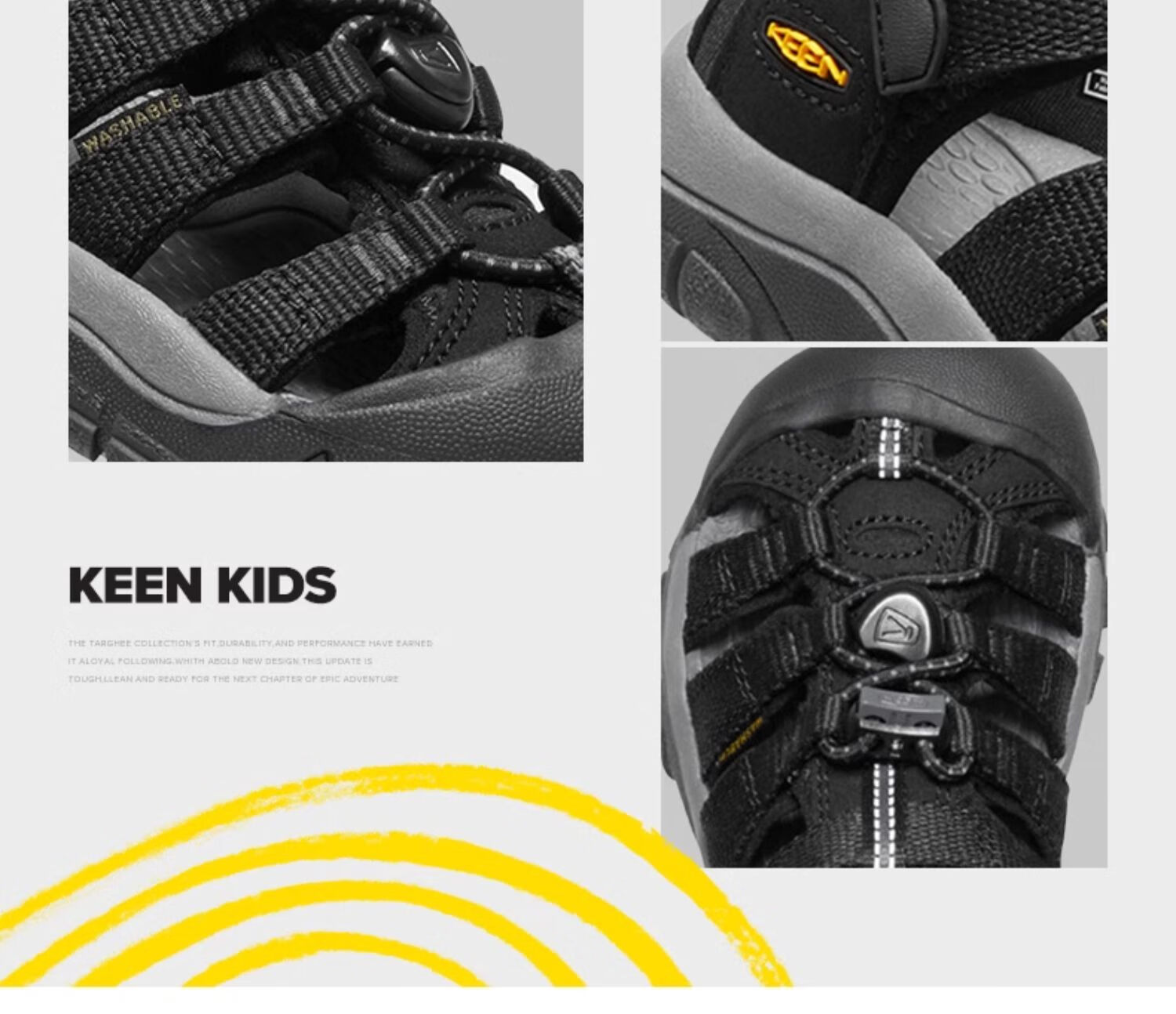 KEEN parent-child shoes NEWPORT H2 children's outdoor wading anti-collision sandals and river shoes black/KEEN yellow label-1022824-kid 31