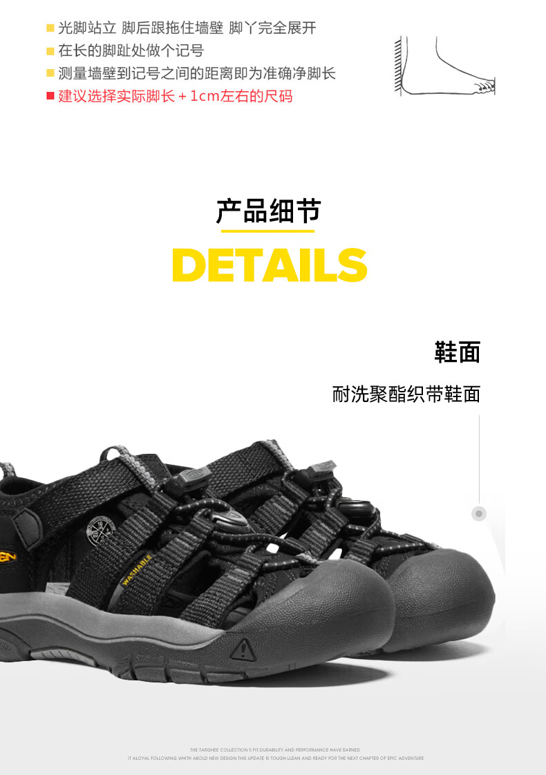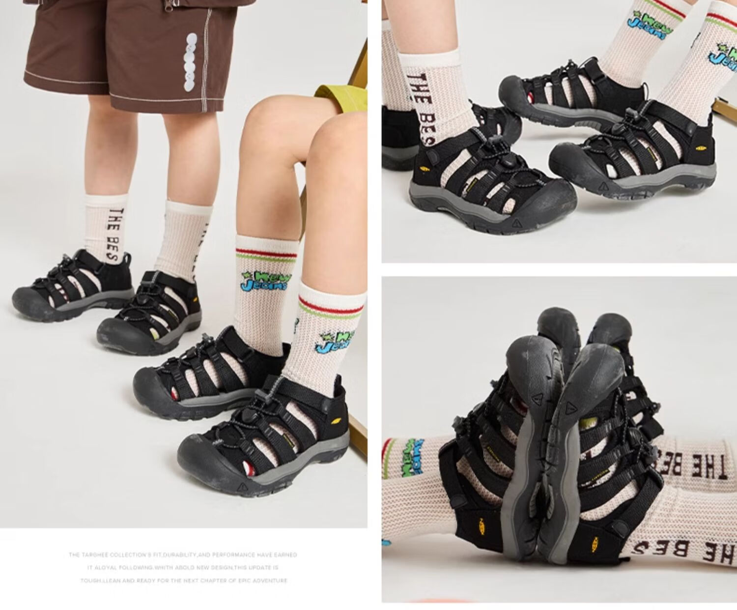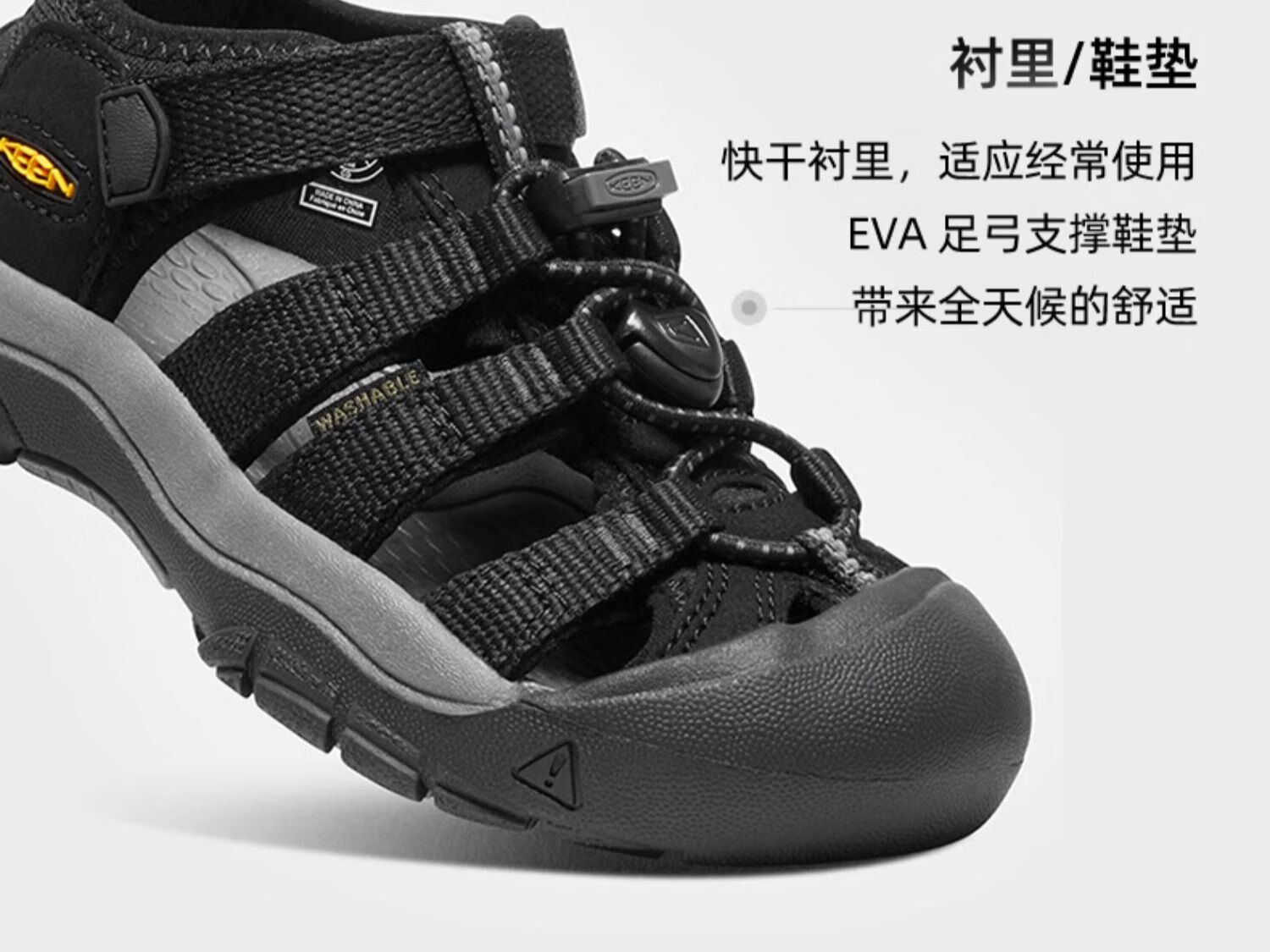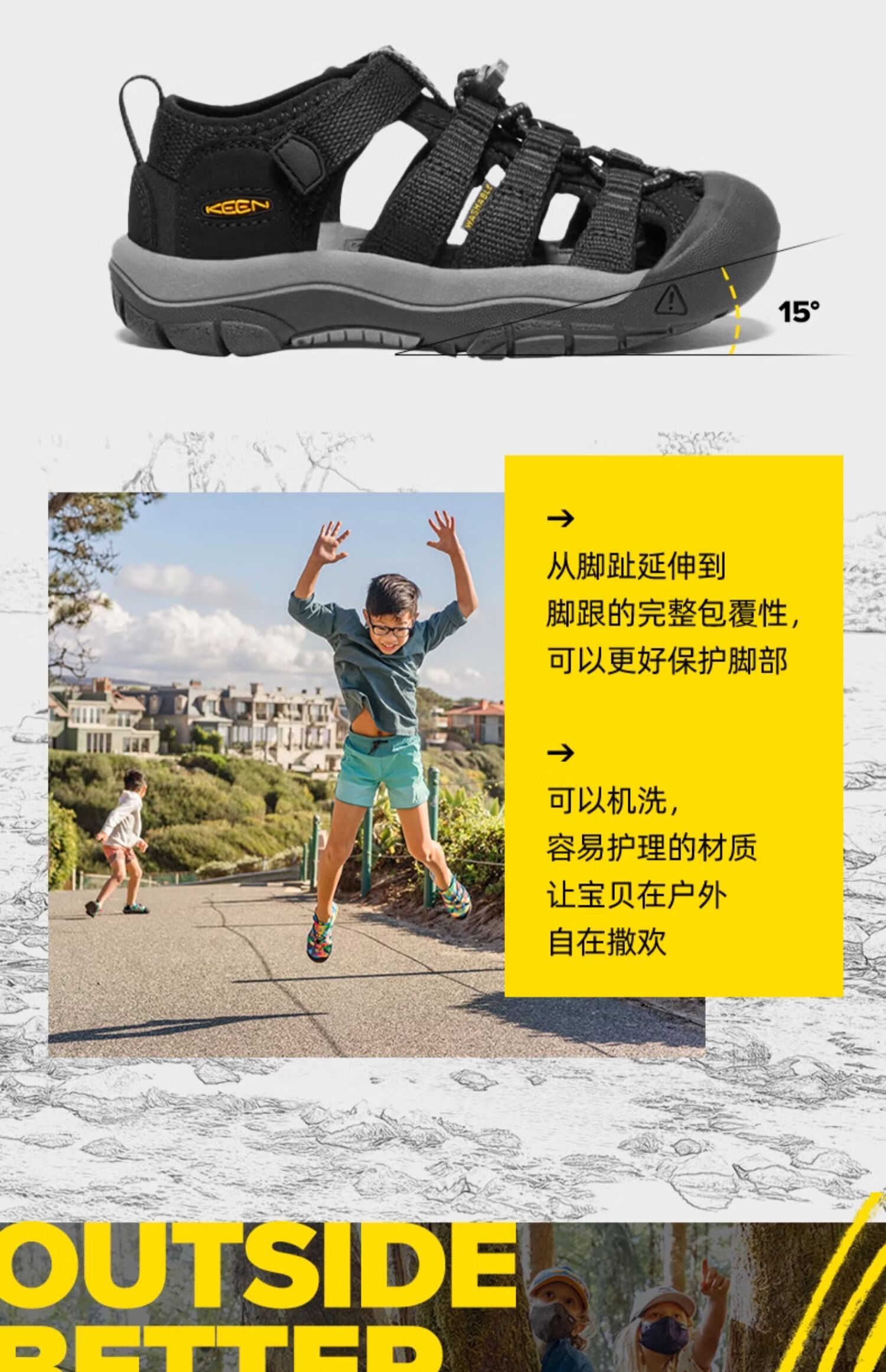 KEEN parent-child shoes NEWPORT H2 children's outdoor wading anti-collision sandals and river shoes black/KEEN yellow label-1022824-kid 31