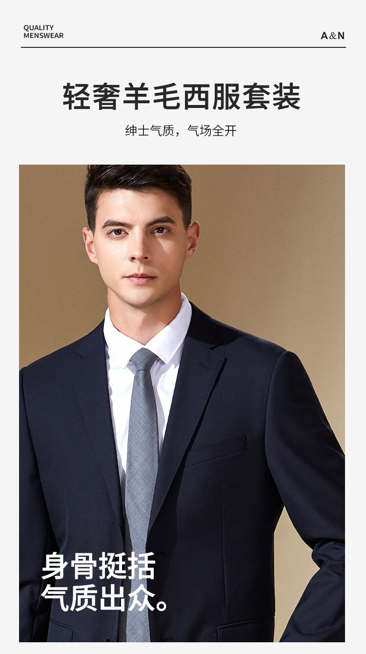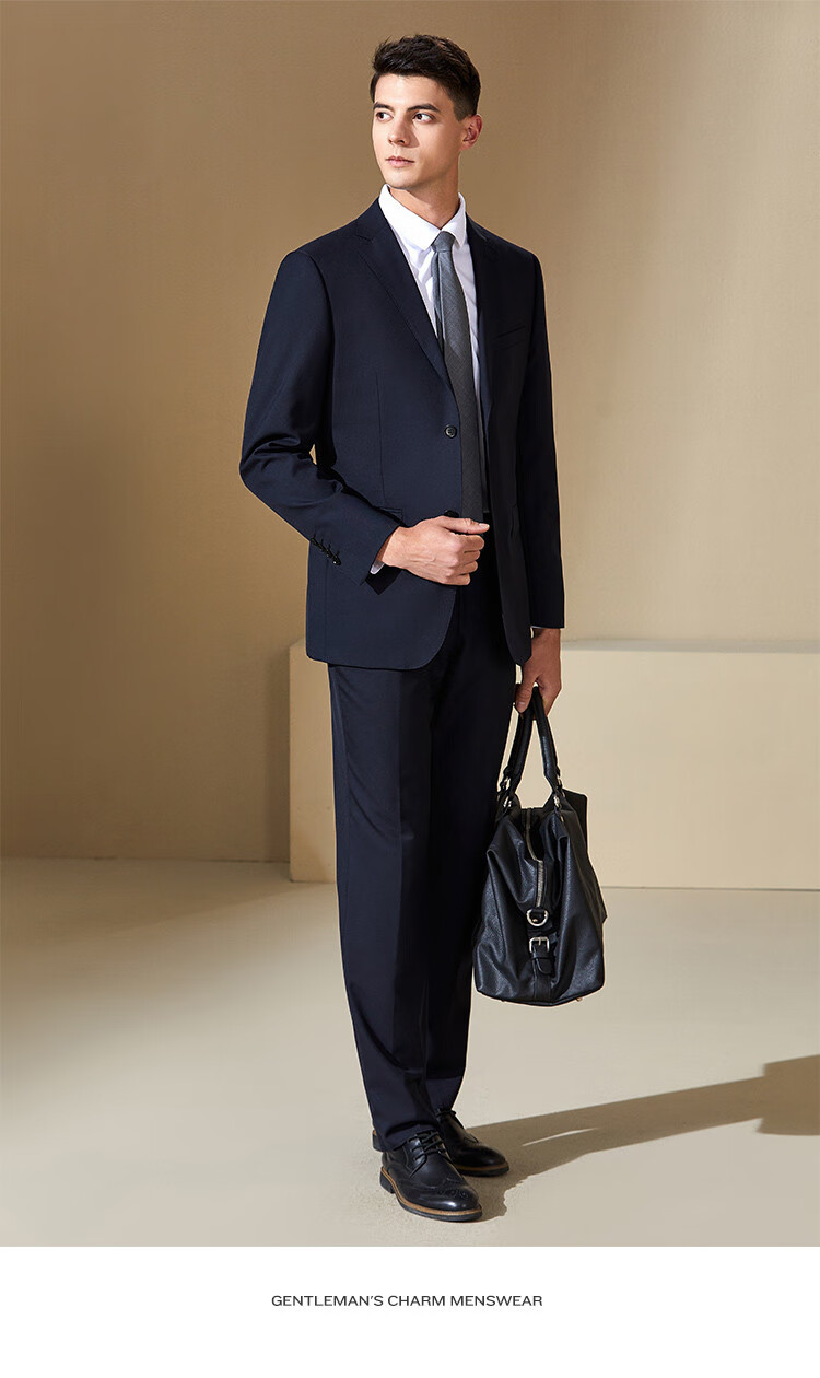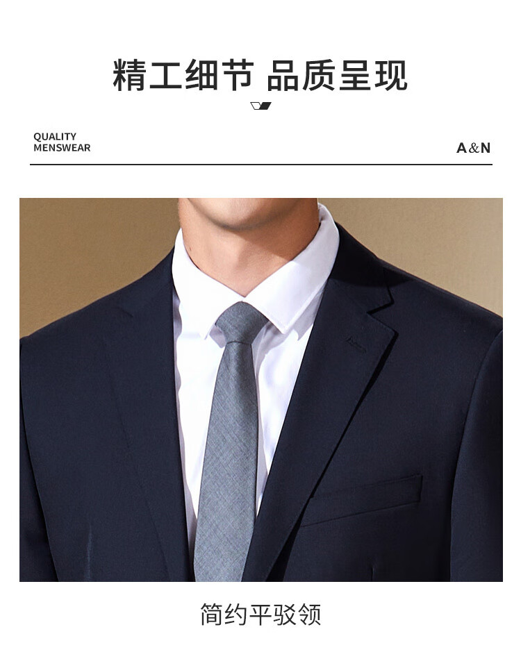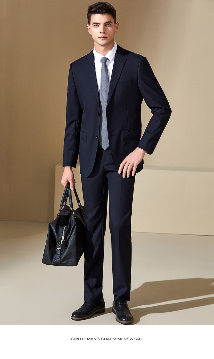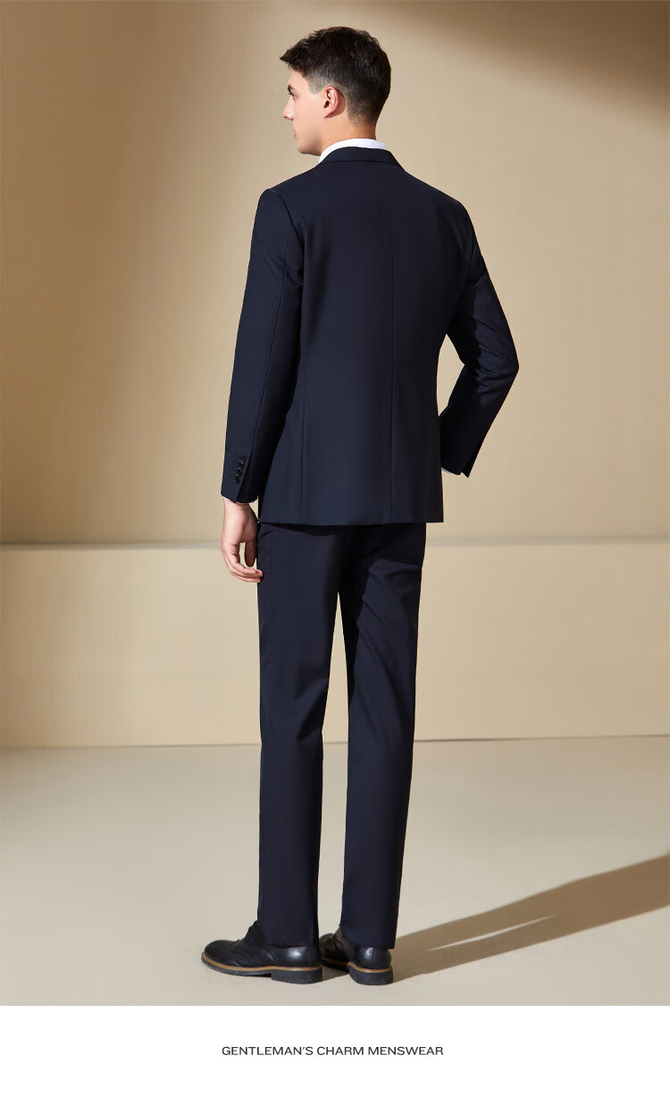 Antonio Wool Suit Men's Business Formal Suit Crisp Three-dimensional Wedding Groom's Suit Banquet Dress Two-piece Set Dark Blue 44 B (165/88B)