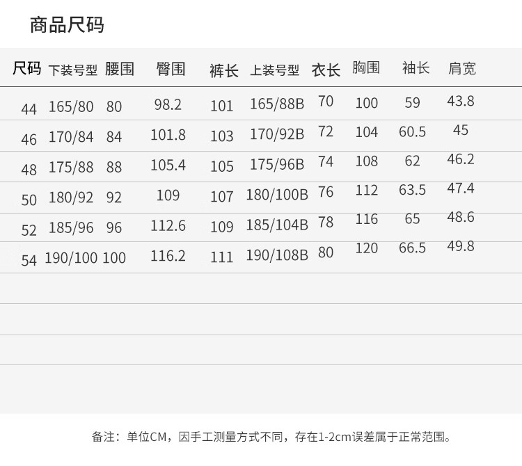 China (cm) 160-165/84-86 165-170 / 88-90 167-172 / 92-96 168-173 / 98-102 170-176 / 106-110