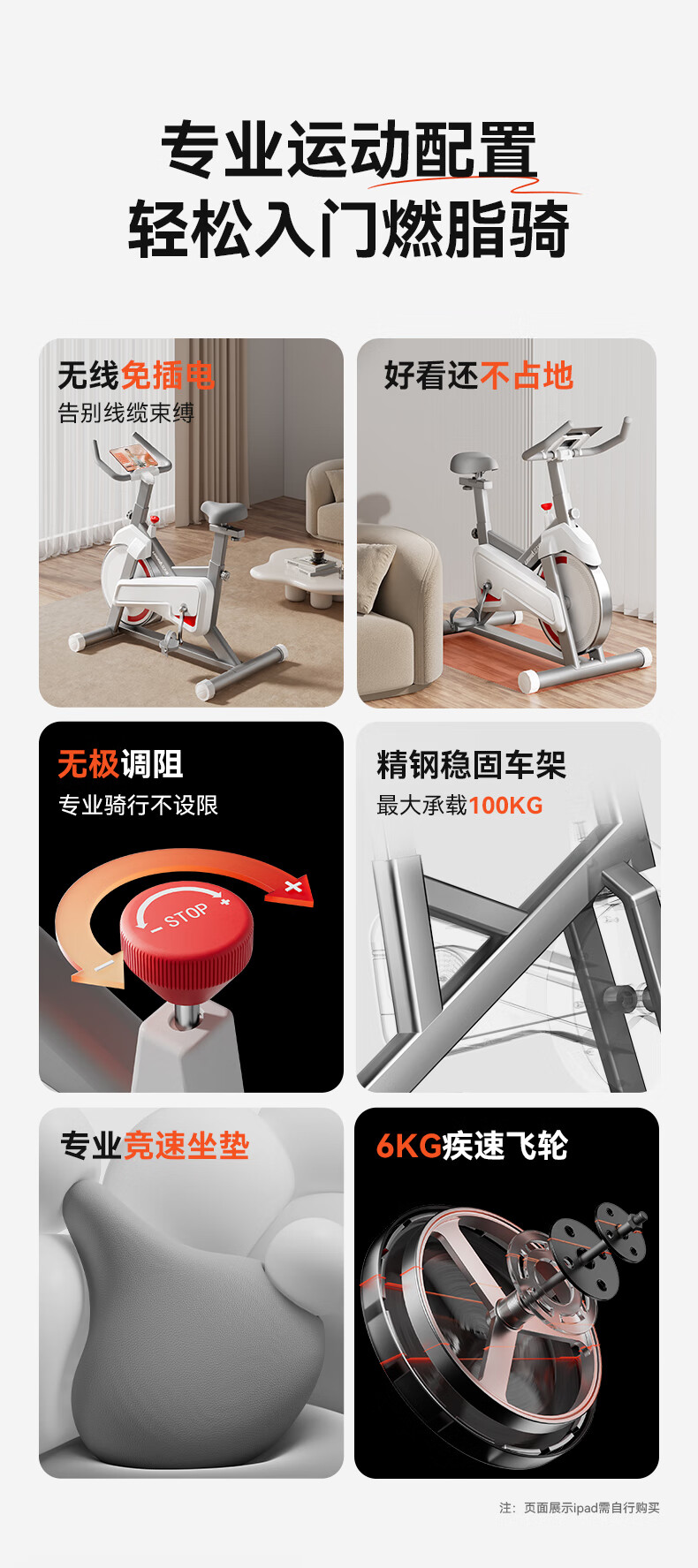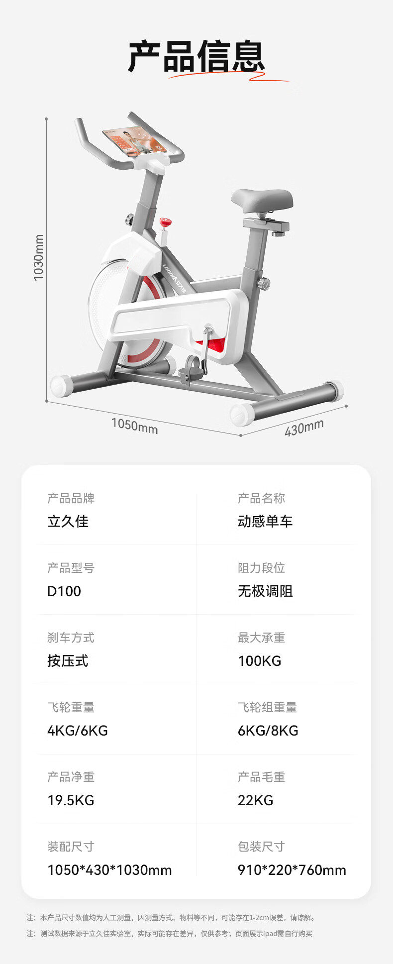Lijiujia spinning bicycle home smart sports fitness equipment indoor silent bicycle small D100 12Jin Jin equals 0.5kg flywheel set/free plug-in/200Jin Jin equals 0.5kg load bearing