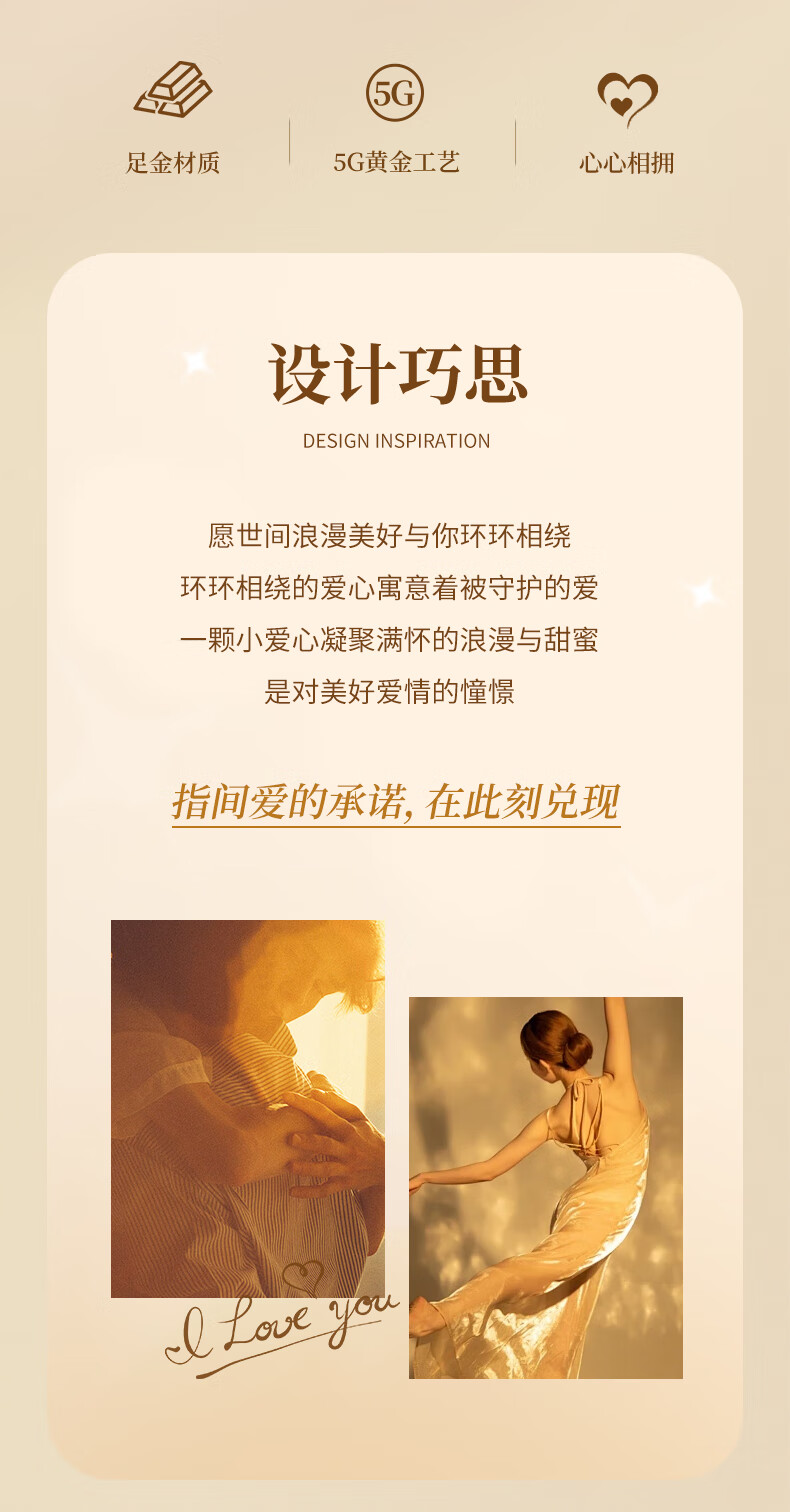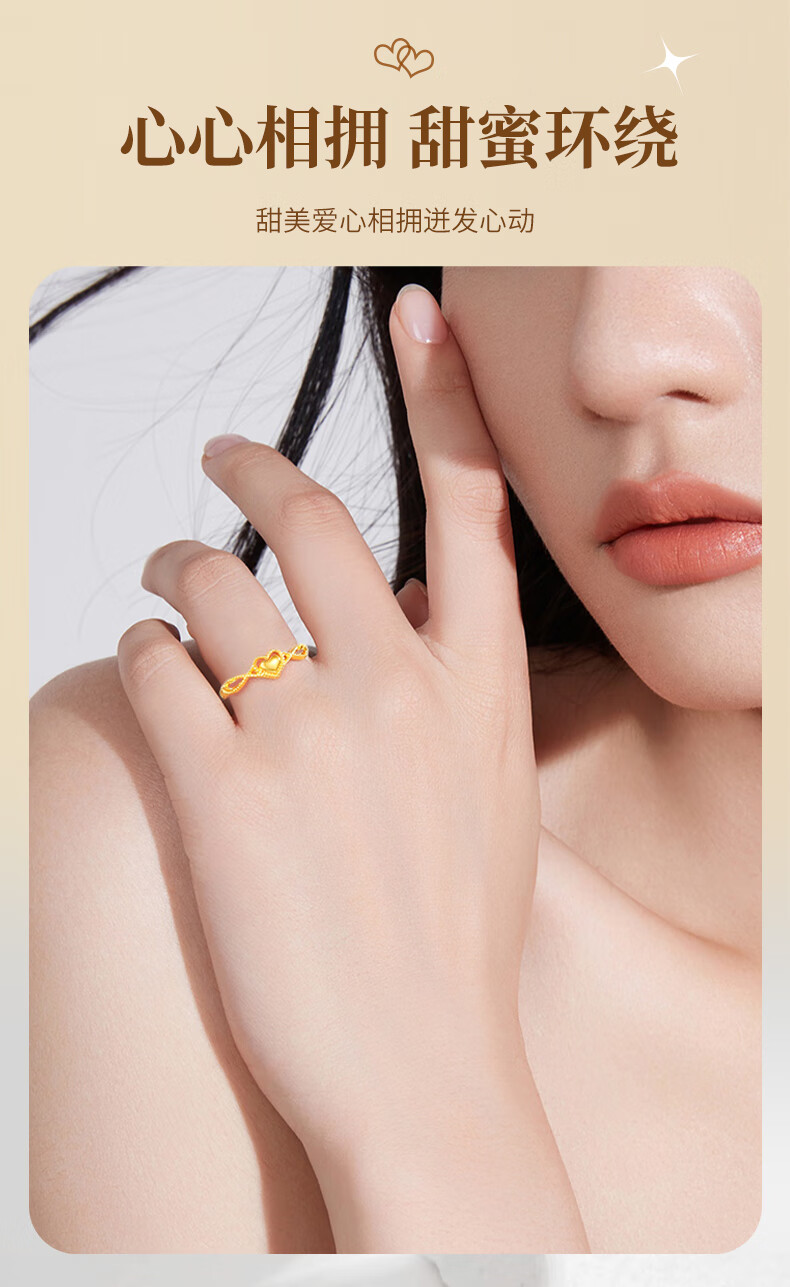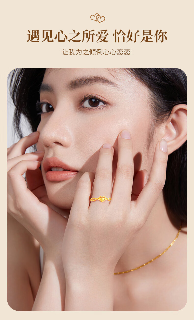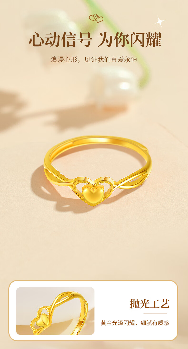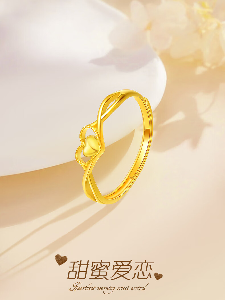 Chinese gold love gold ring pure gold 99 proposal ring female birthday gift for girlfriend and wife wedding anniversary Jingqida pure gold lingering love ring