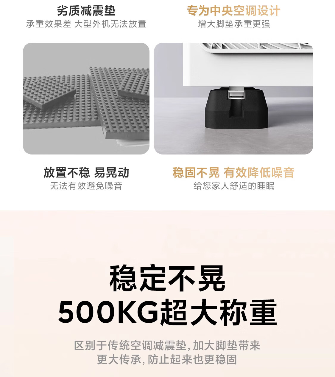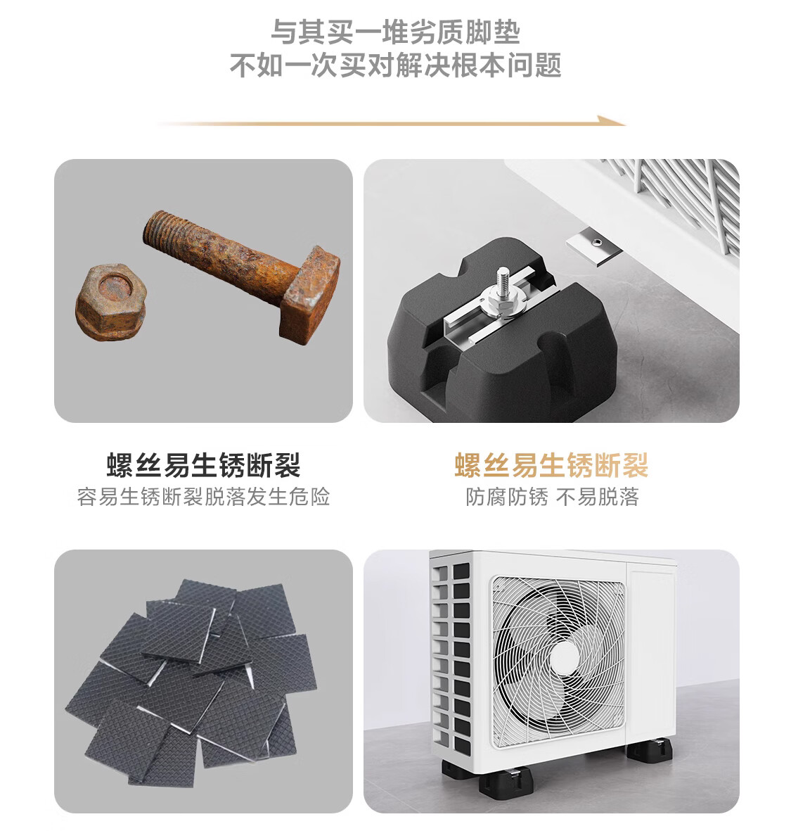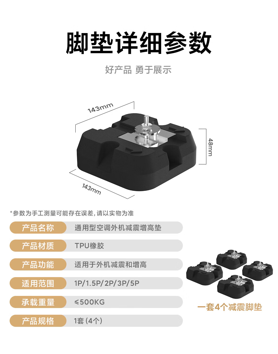 Beishi air conditioner outdoor unit shock-absorbing pad noise reduction sound insulation bracket thickened rubber base silent anti-muffler pad central air conditioner outdoor unit bracket set of 4 1-5P outdoor unit universal/143*143*48