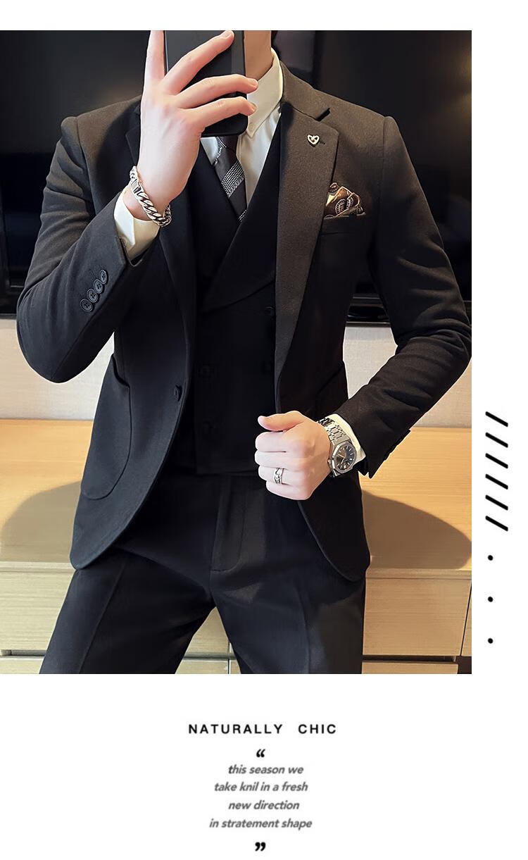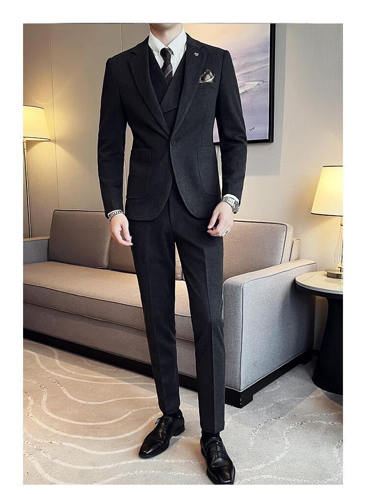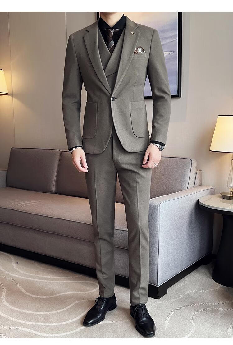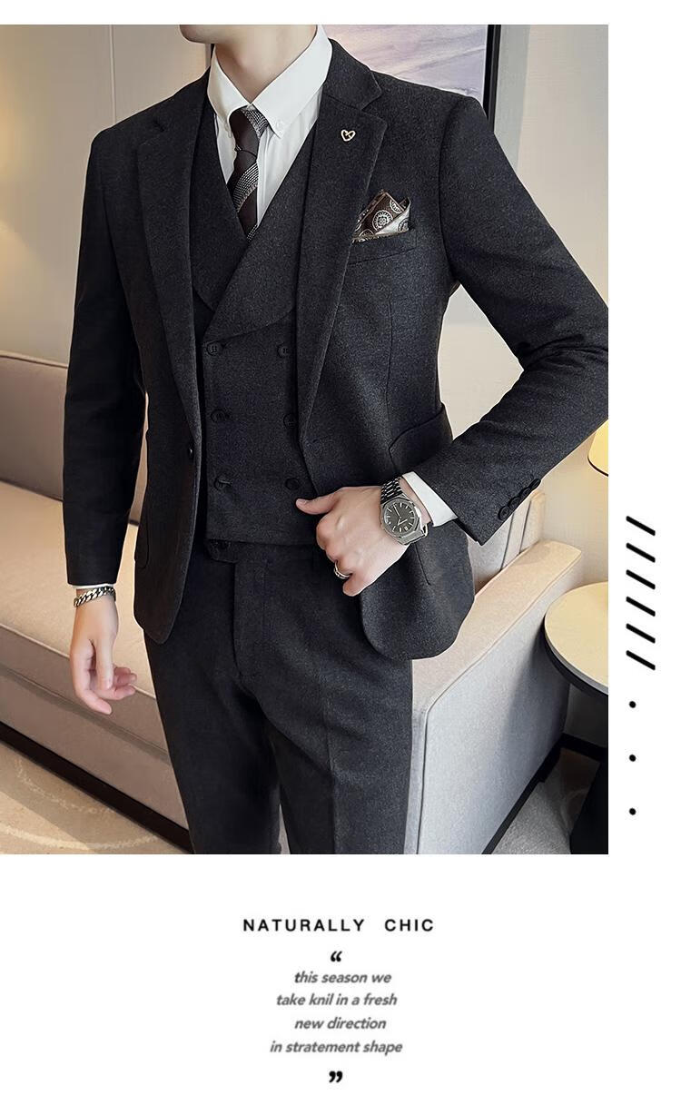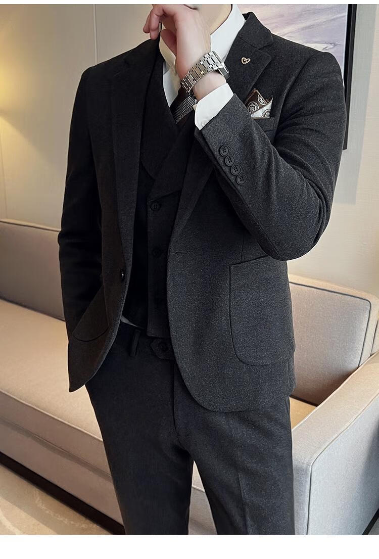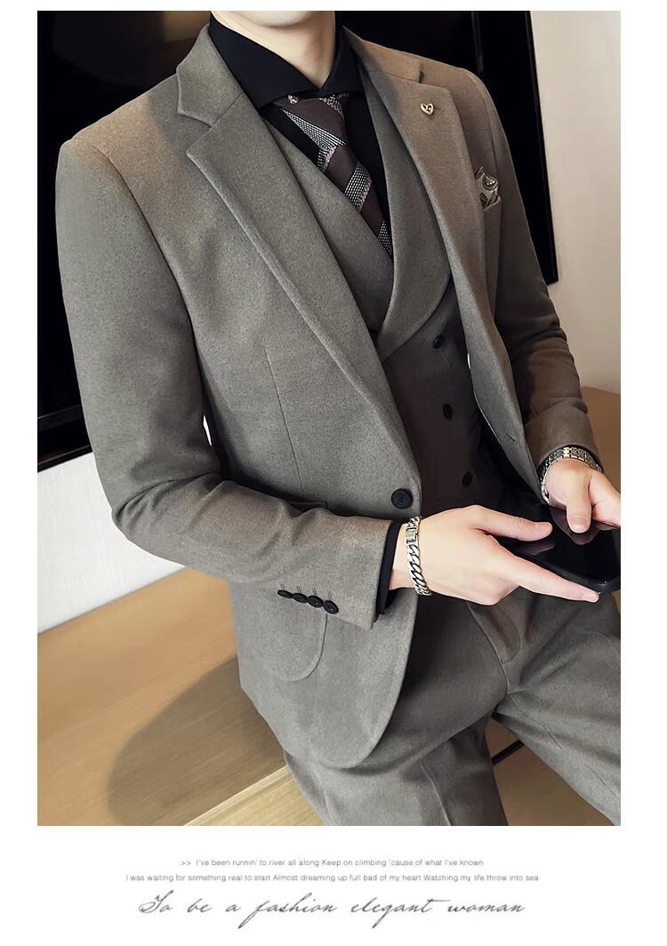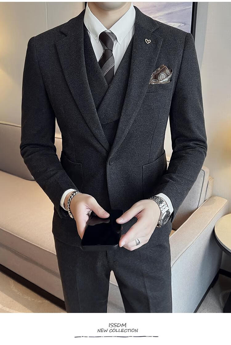 Jeep (JEEP) Autumn and Winter British Business Slim Suit Suit Men's High-end Casual Commuting One-button Wool Suit Three-piece Set Gray Single Suit M