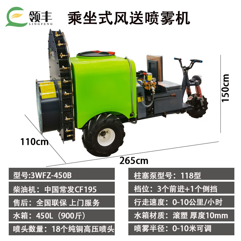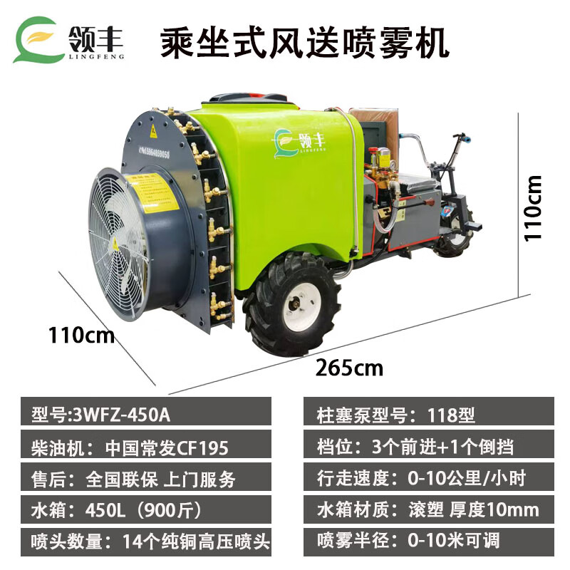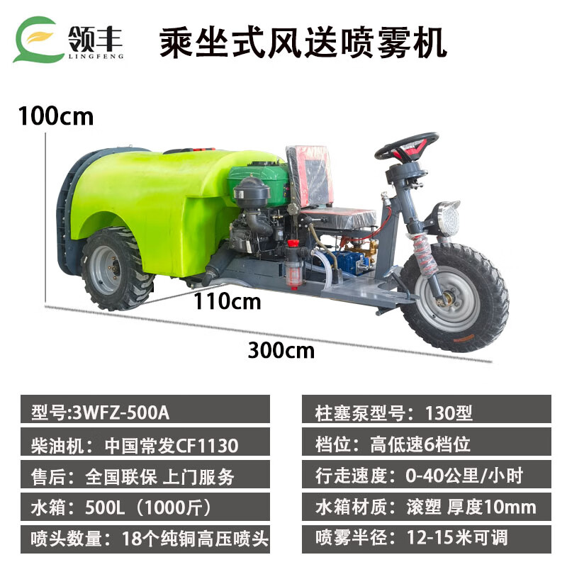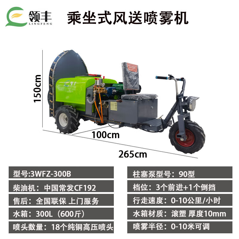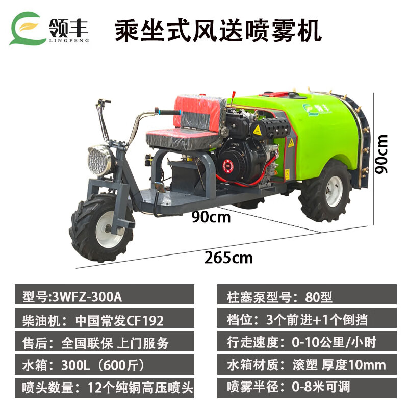 Lingfeng ride-on air sprayer self-propelled three-wheel air sprayer 2024 new high-pressure orchard peach tree sprayer 3WFZ-300C