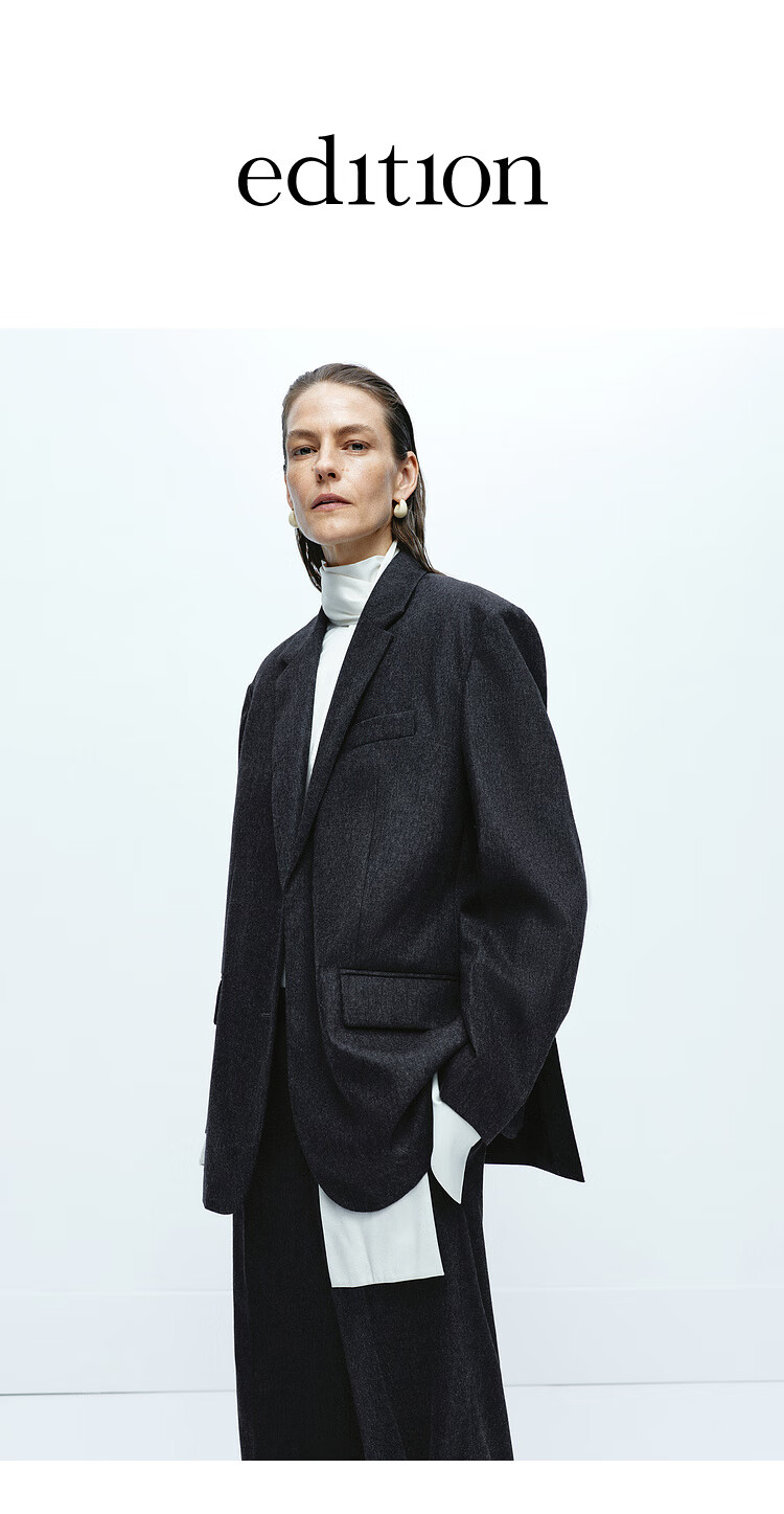Edition blazer women's high-end gray suit woolen coat women's gentleman's suit dark floral gray S