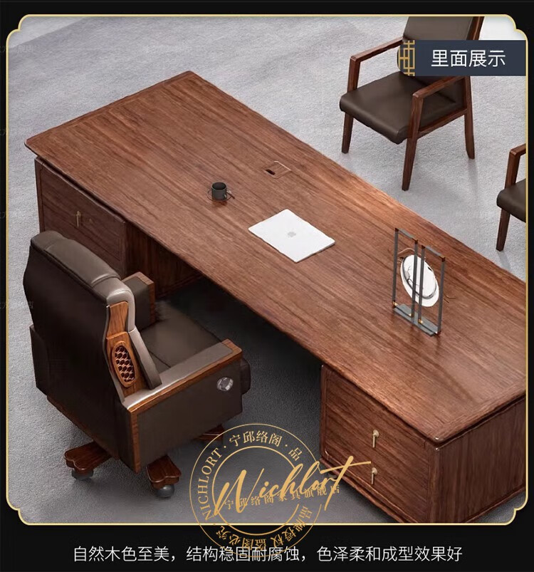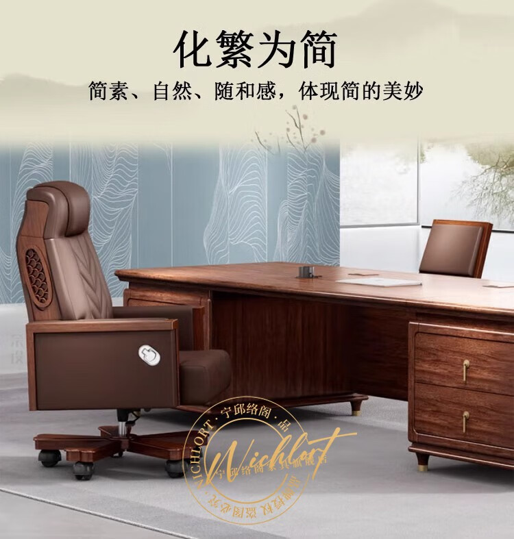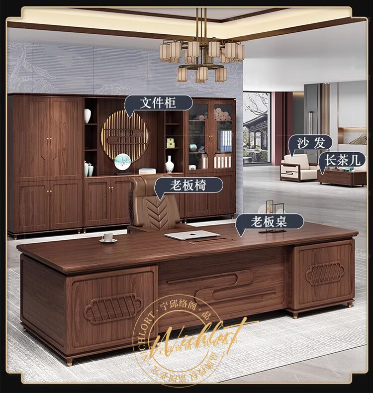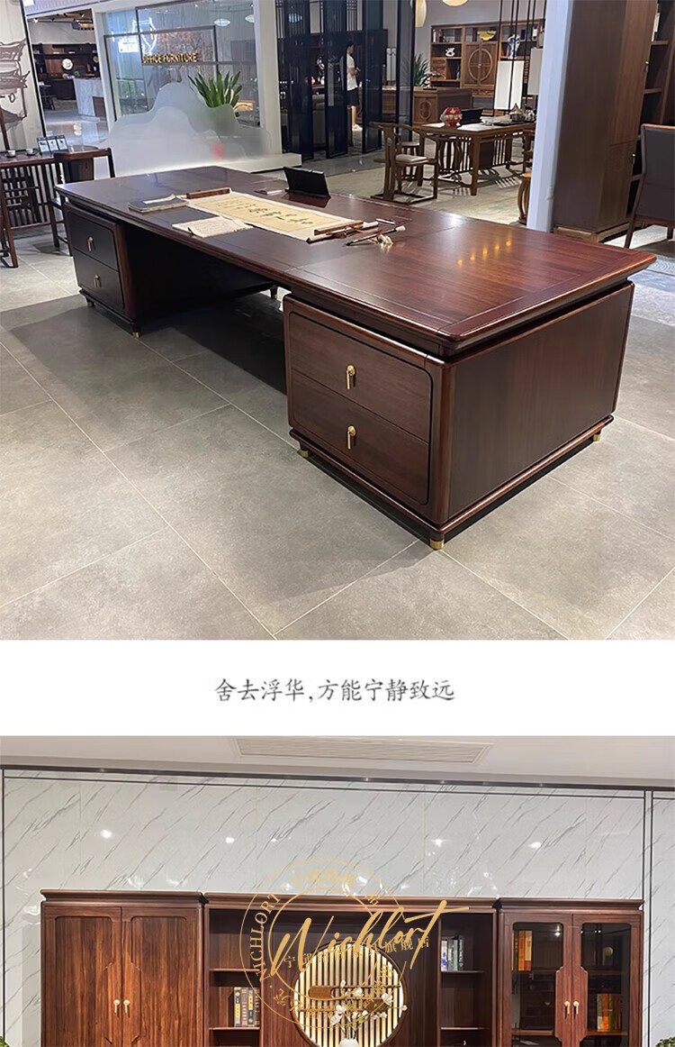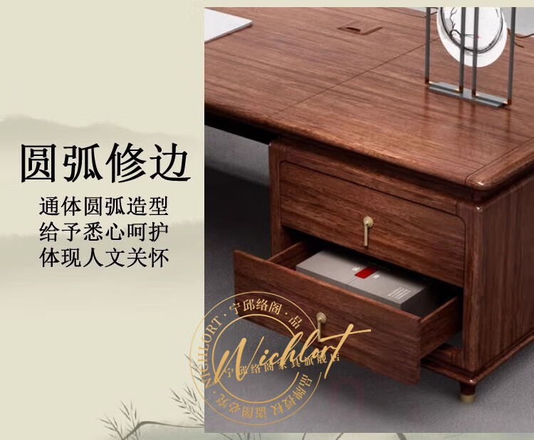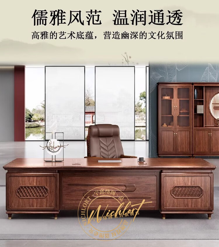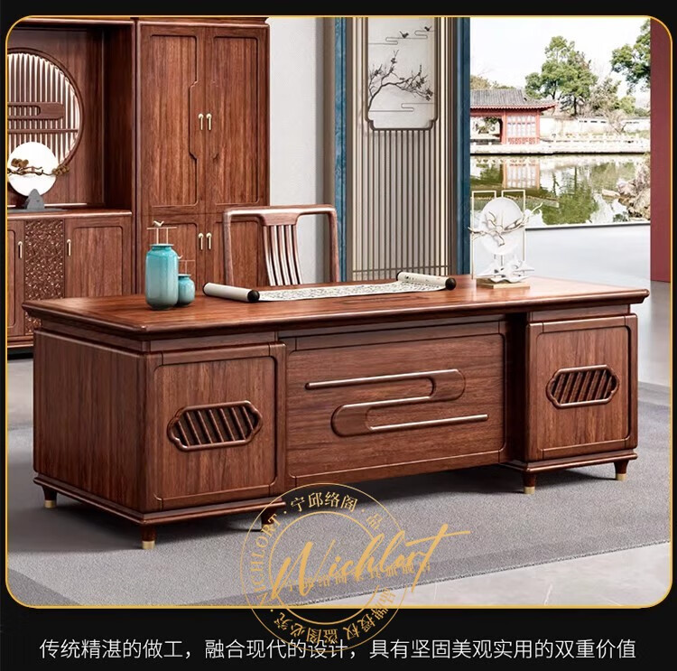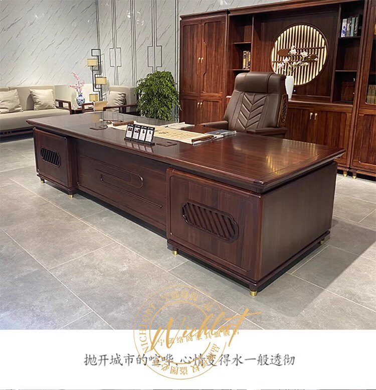 Ningqiu Luoge (NICHLORT) new Chinese-style solid wood boss table, rack, desk, executive desk, computer table, sofa, tea table, filing cabinet, 2.8-meter boss table, ebony wood