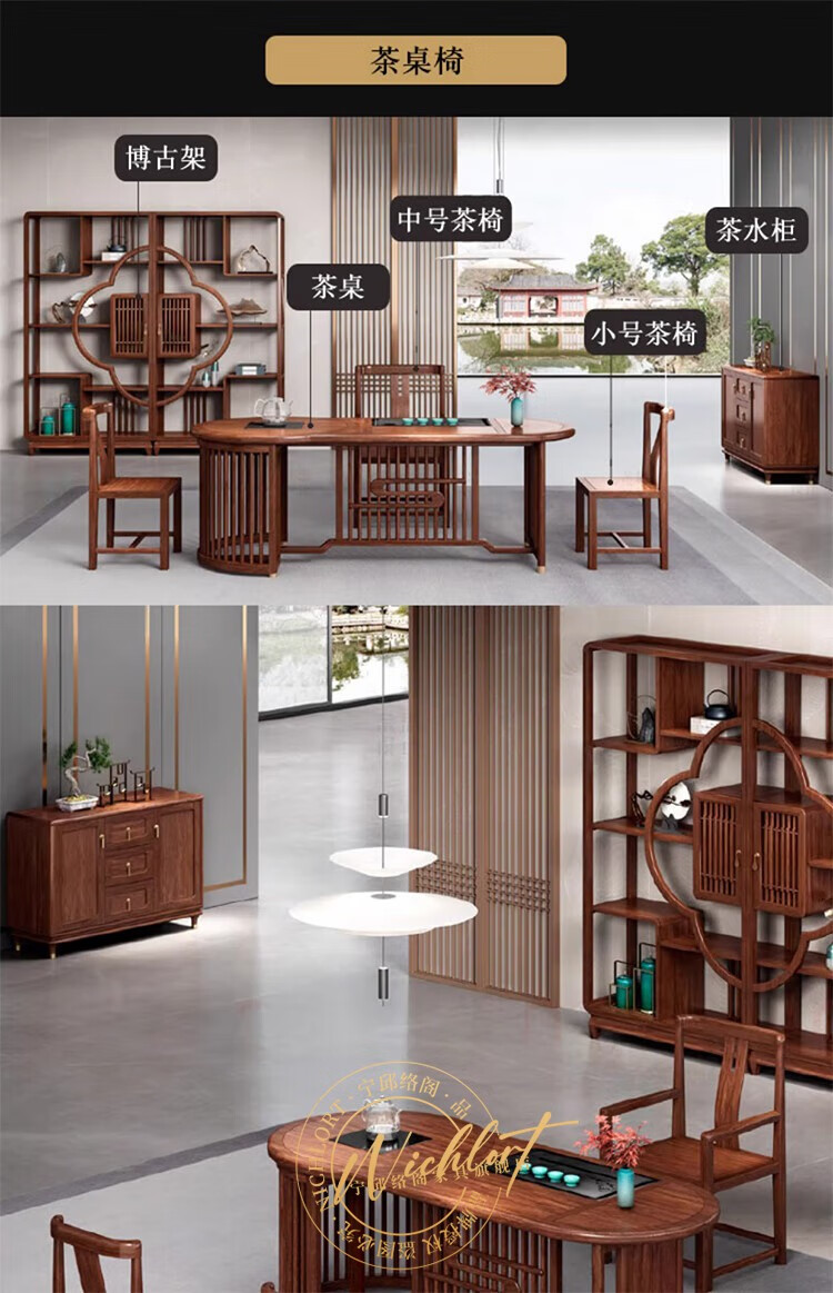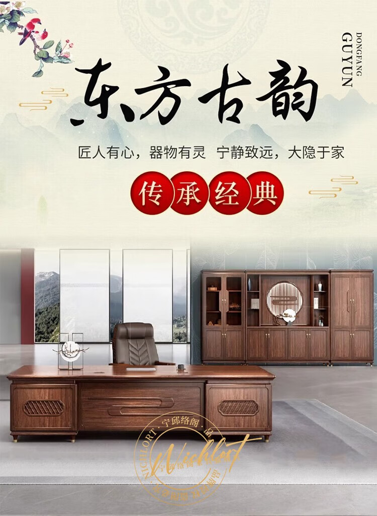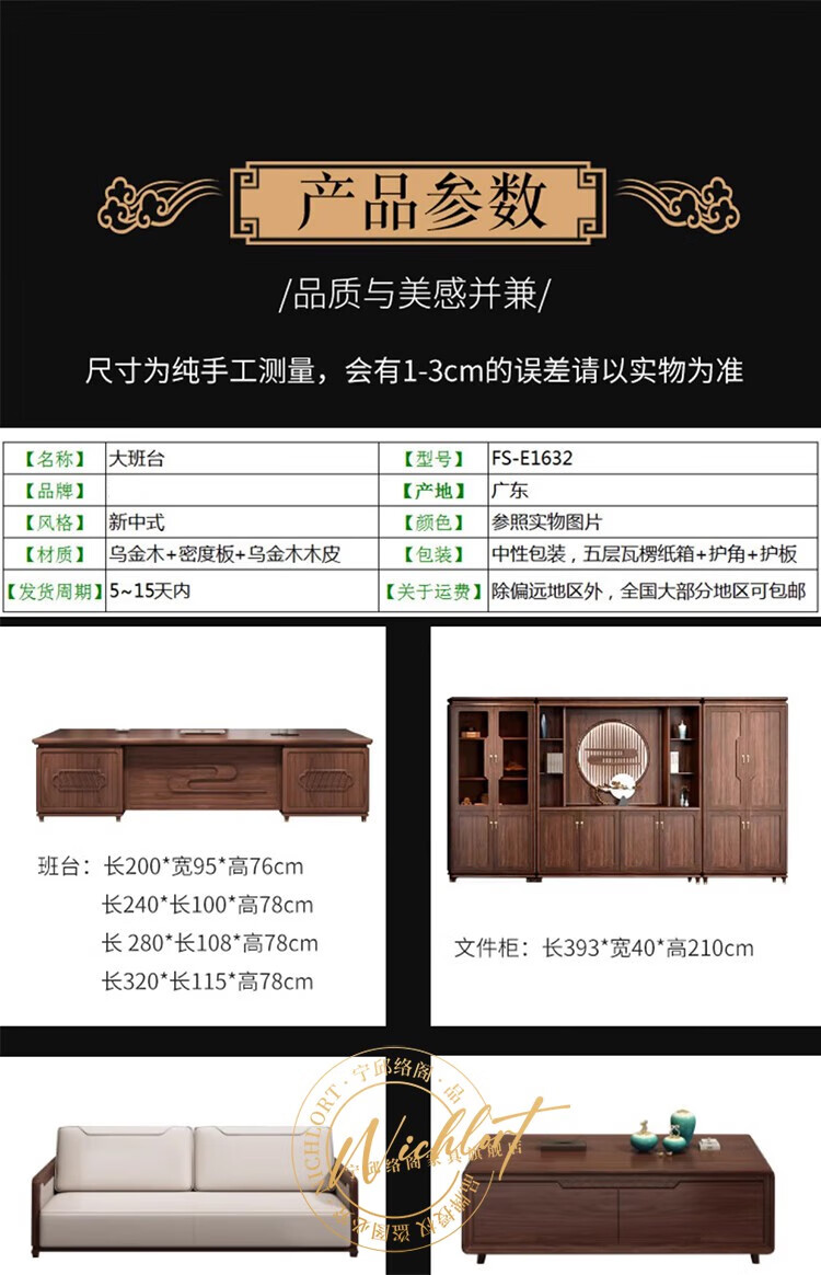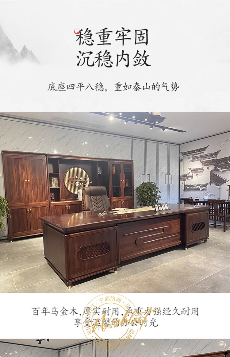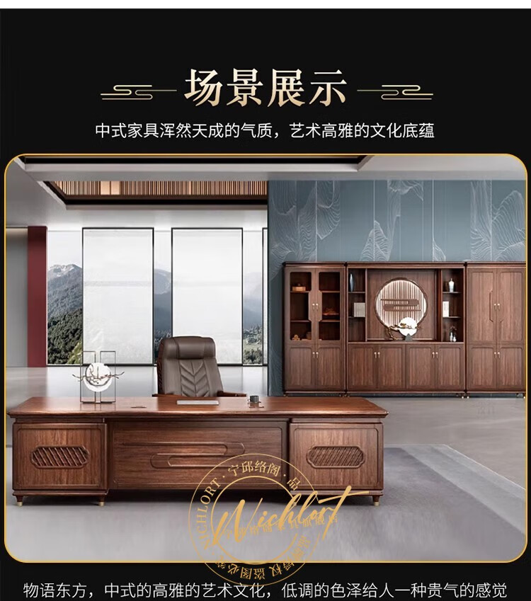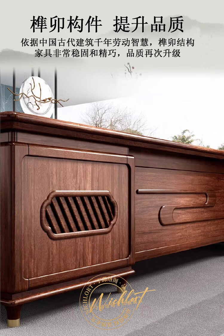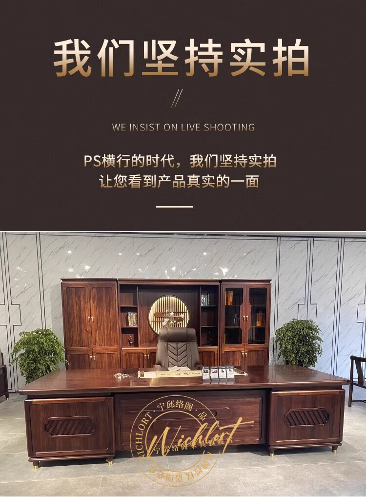 Ningqiu Luoge (NICHLORT) new Chinese-style solid wood boss table, rack, desk, executive desk, computer table, sofa, tea table, filing cabinet, 2.8-meter boss table, ebony wood