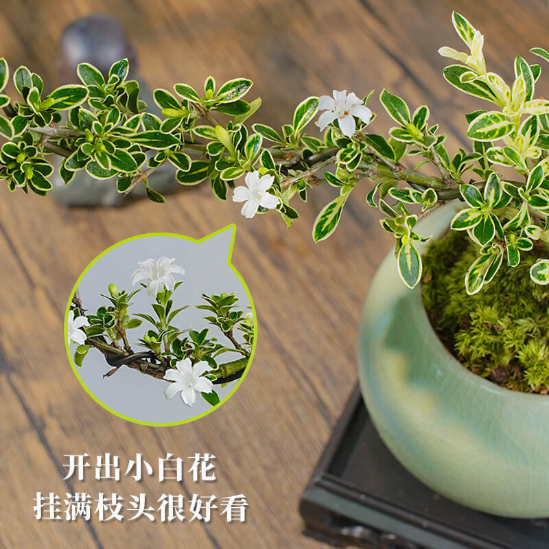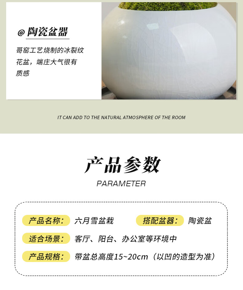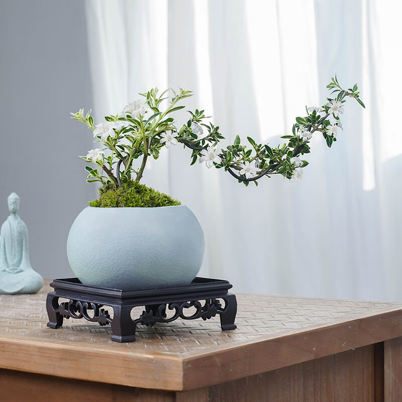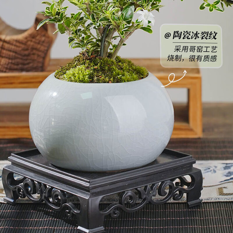 Estilo zen Nieve de junio en el acantilado con macetas de cerámica Pequeñas plantas de bonsái en la oficina Plantas verdes Bonsái en macetas Acantilado Nieve de junio + maceta de hielo + base cuadrada + musgo