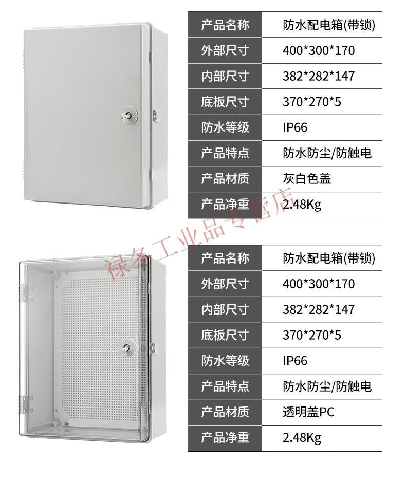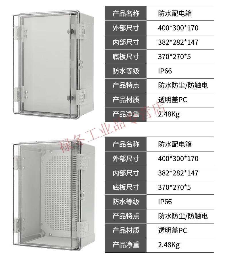 Outdoor buckle waterproof electrical box plastic PVC transparent box outdoor distribution box control junction box surface mounted 30x20x17 transparent buckle door