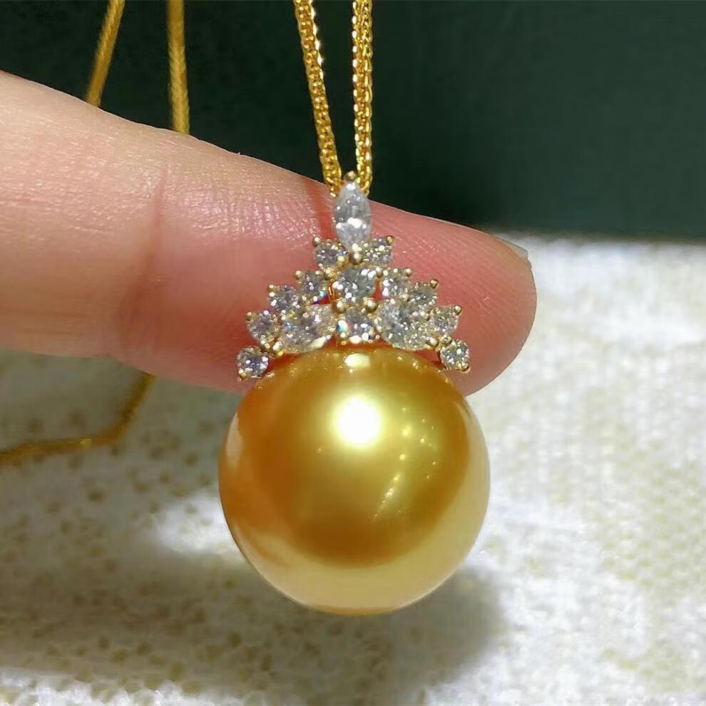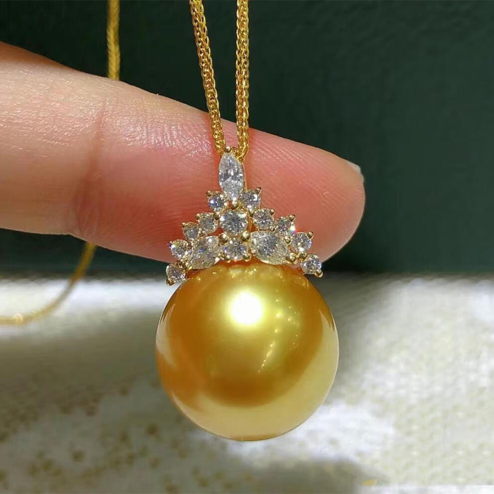 Xingtang Pearl South Sea Gold Pearl South Sea Gold Pearl Pendant Ice Queen Style Gold Perfect Round Flawless Rich Gold High Light Seawater Pearl 10-11mm
