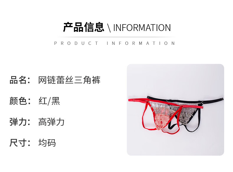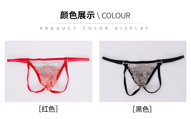 Adult products for men, men's sexy European and American chain lace see-through hollow men's thong sexy underwear adult sex products red one size fits all