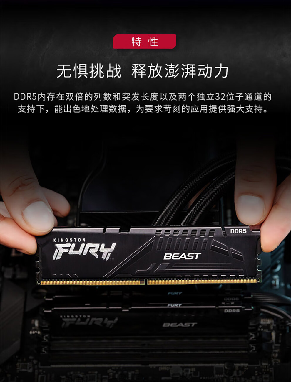 Kingston FURY 5th Generation 16GB DDR5 5200/5600 Desktop Memory Beast Beast Series Hacker God Bar Suitable for Black Myth Wukong Running Memory FRUY DDR5 5600MHZ Desktop Memory (Black) 32GB 2 (2*16G) 2 16G