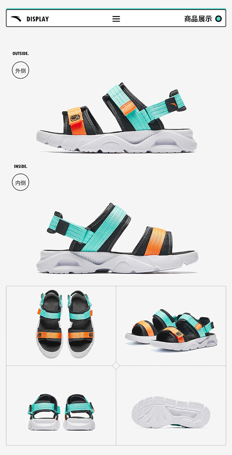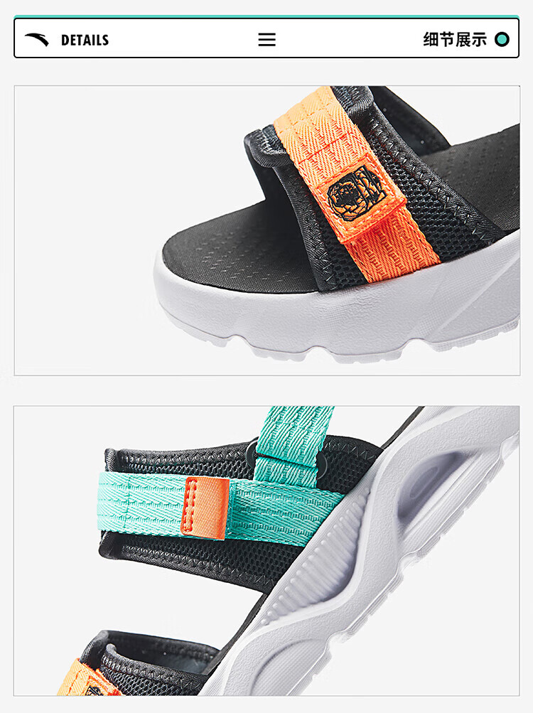 ANTA Children's Sandals Men's Beach Shoes 2024 Summer New Open-Toe Arch Student Outdoor Sandals Koala Gray/Fluorescent Aqua/Bright Orange-1 35