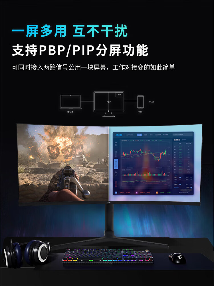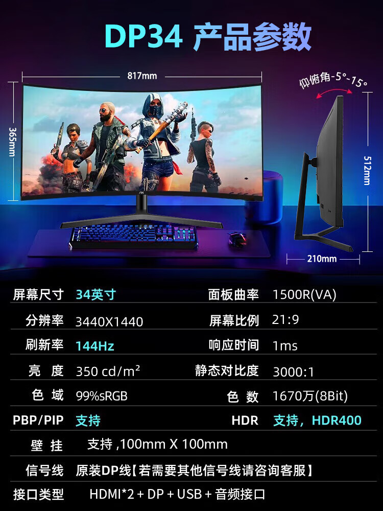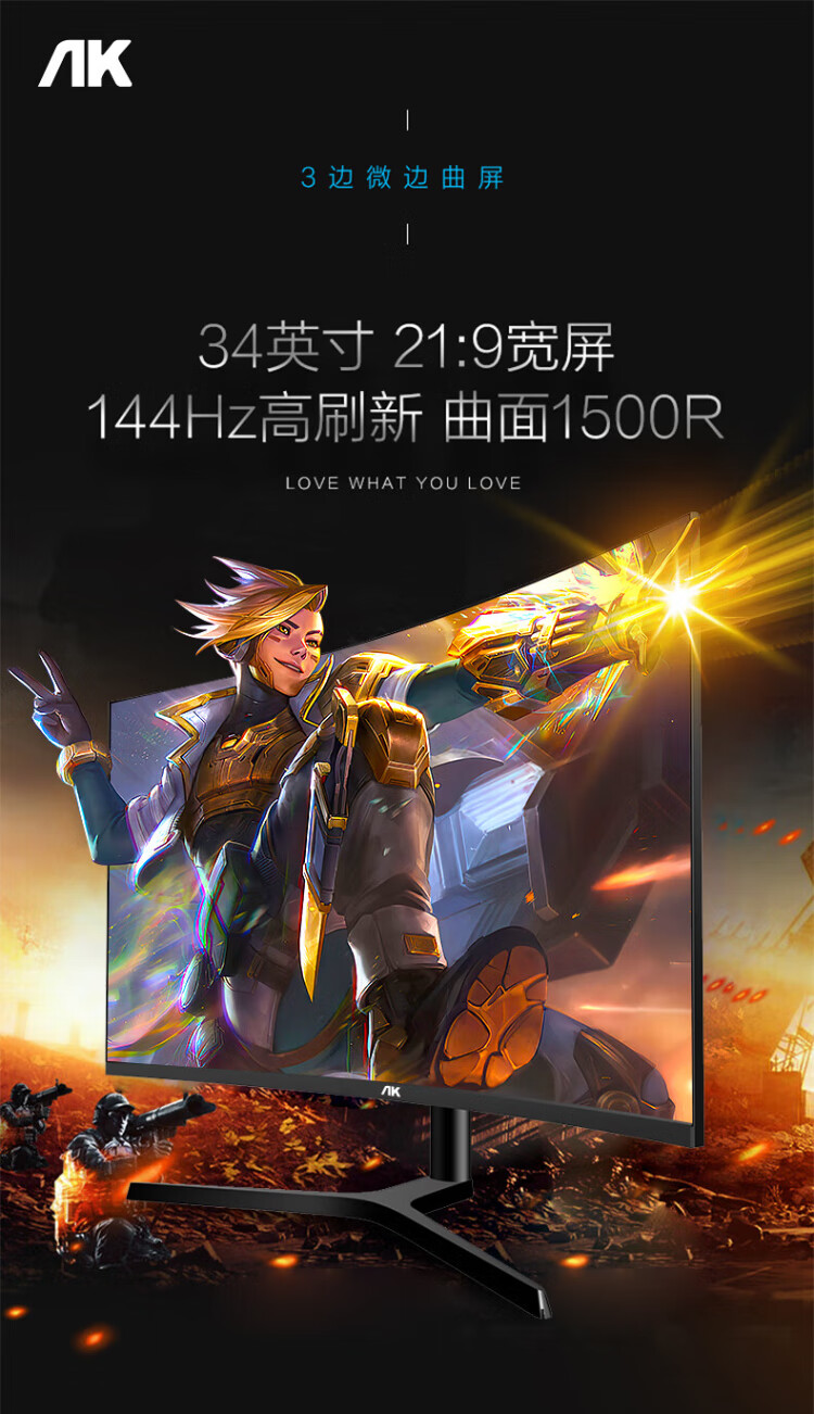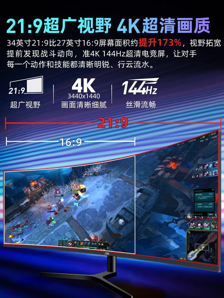 AK monitor 34-inch quasi-4K ultra-clear 180Hz hairtail screen e-sports gaming monitor High color gamut 2K split screen professional design 1500R large curvature computer display 34-inch quasi-4K 180Hz ultra-clear curved hairtail screen - white