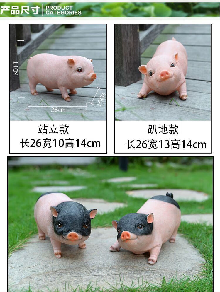 Han Chang Garden Decoration Garden Ornaments Creative Gifts Piggy Model Resin Crafts Animal Simulation Pig Ornaments Station Black Pig Pair