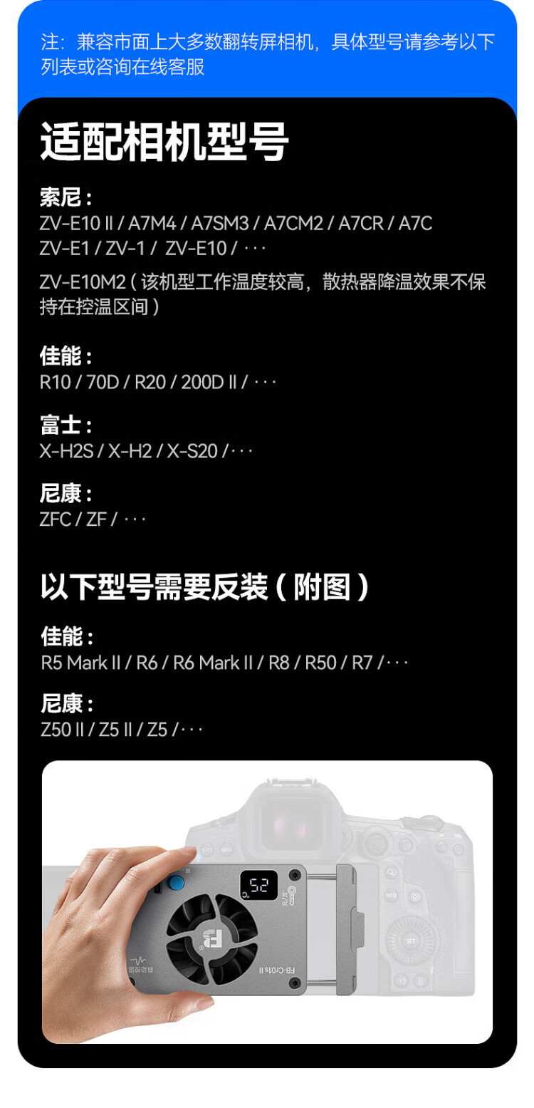 Fengbiao (FB) camera radiator Sony A7M4/A7C2/A7S3/ZV-E10 Canon R8/R6/R50 Fuji