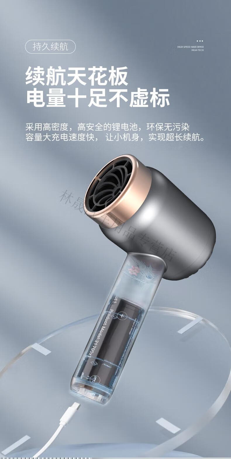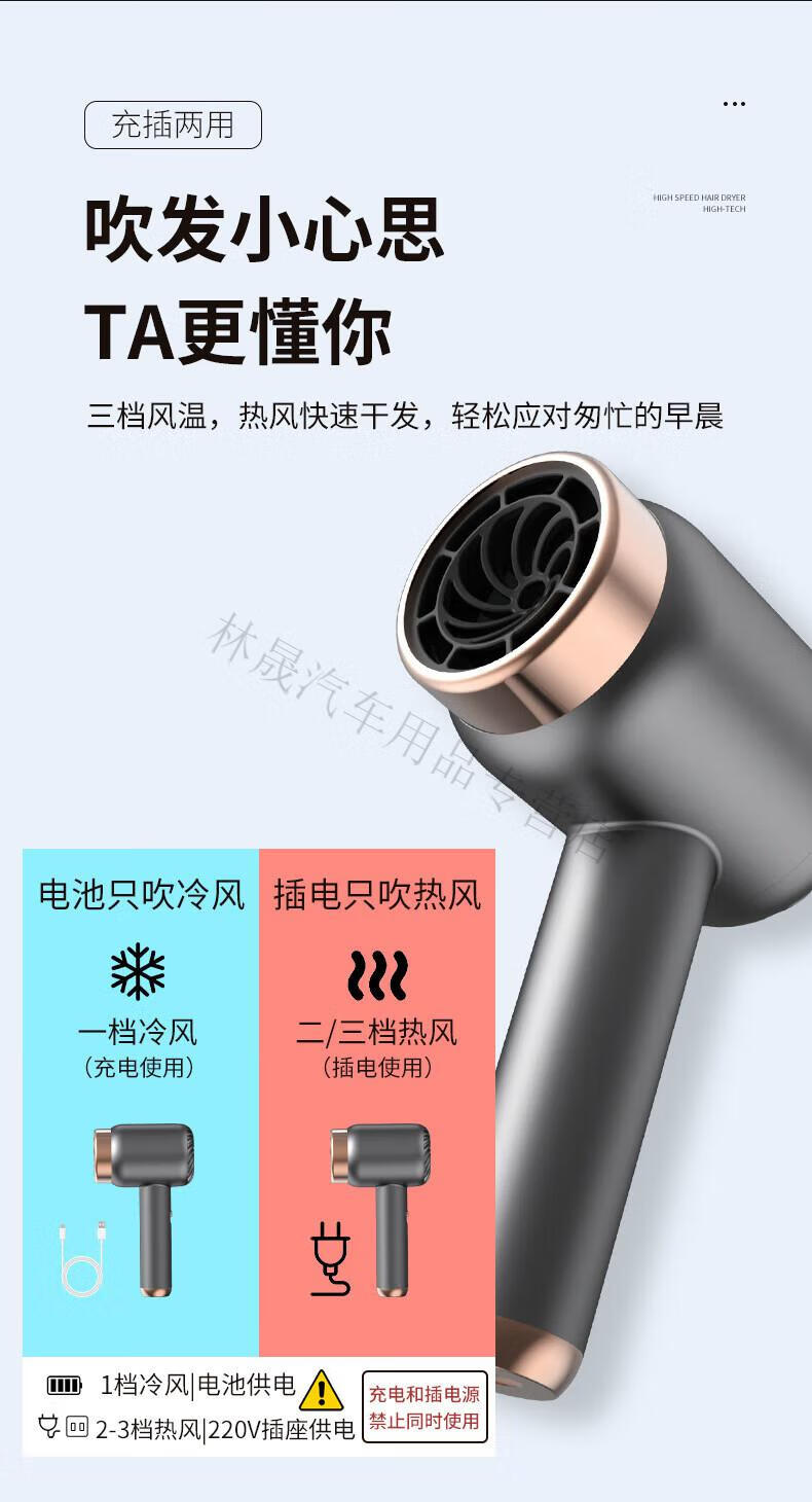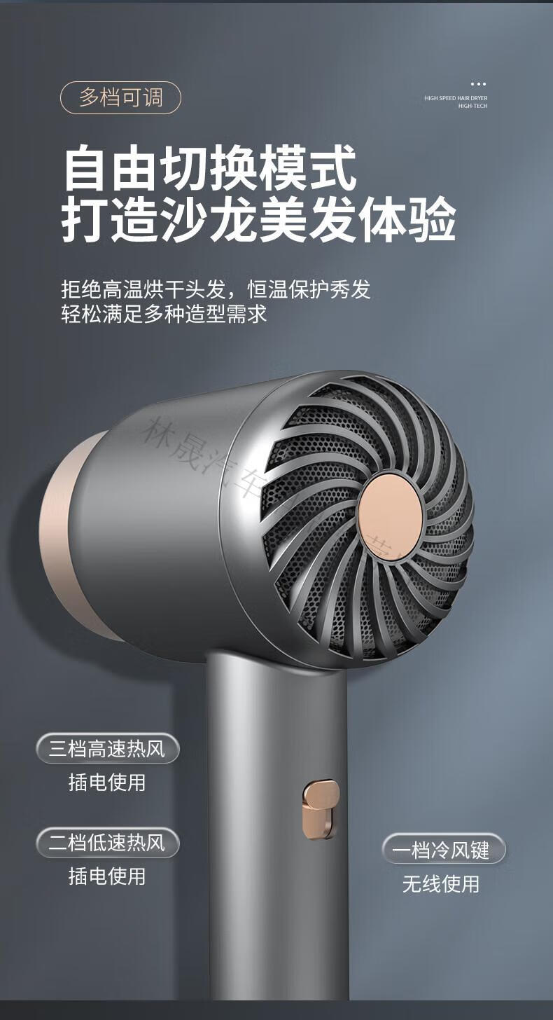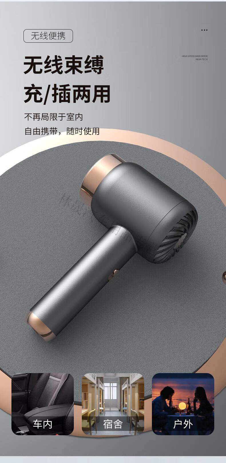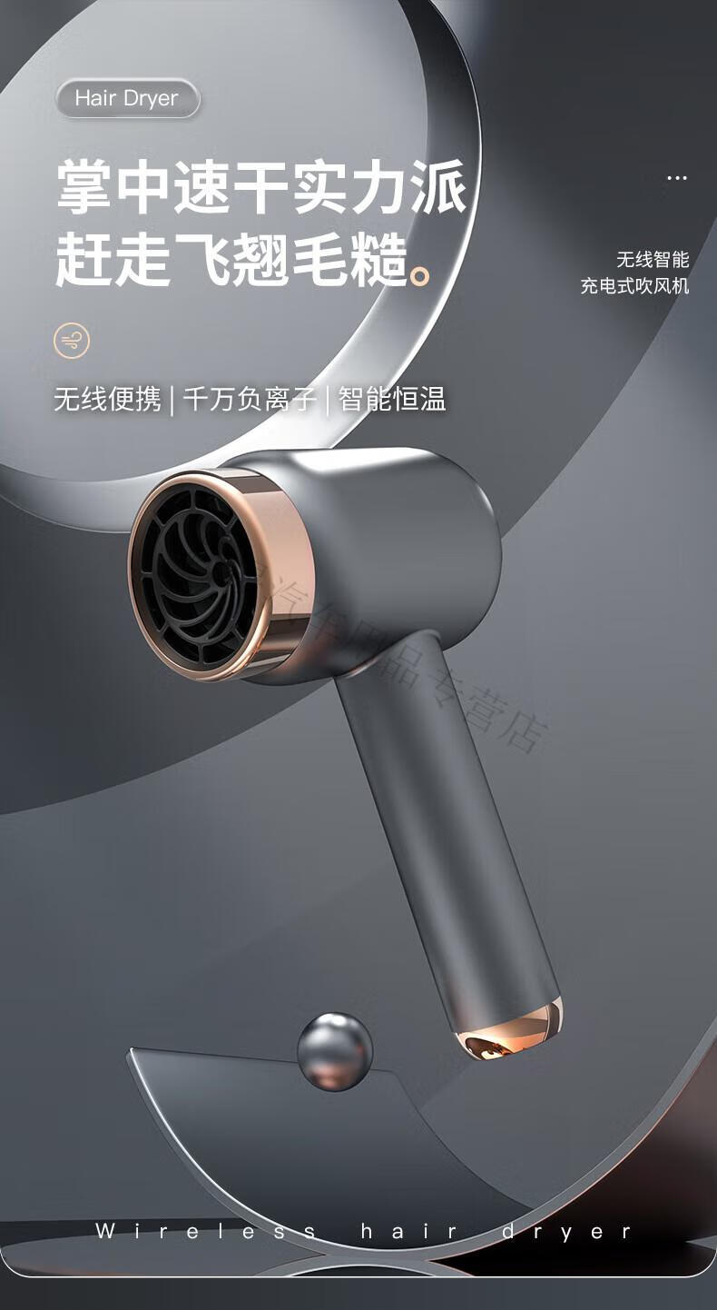 German quality original wireless hair dryer low power rechargeable hair dryer for home use portable unplugged dormitory negative ion hot and cold hair dryer for quick delivery to your girlfriend flagship version temperament purple wireless cold air-plugged hot air-USB charging Chinese