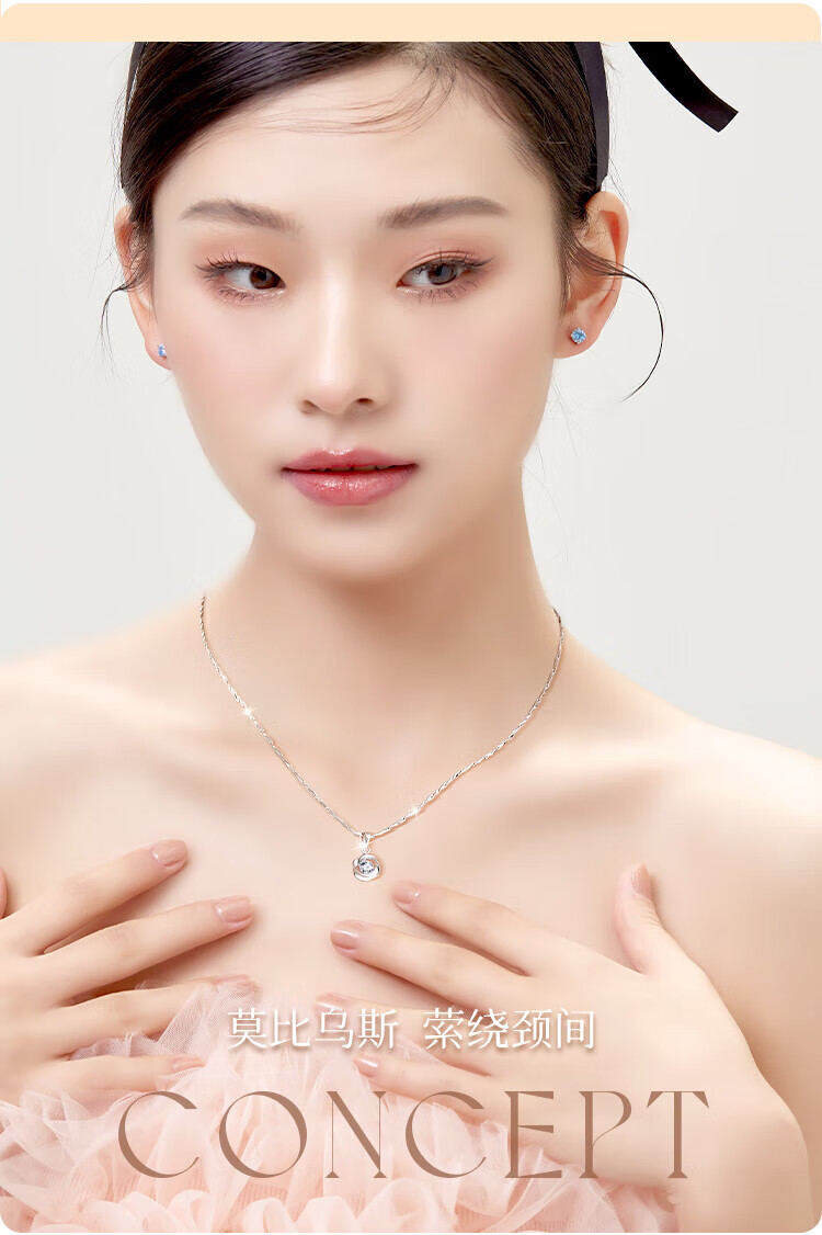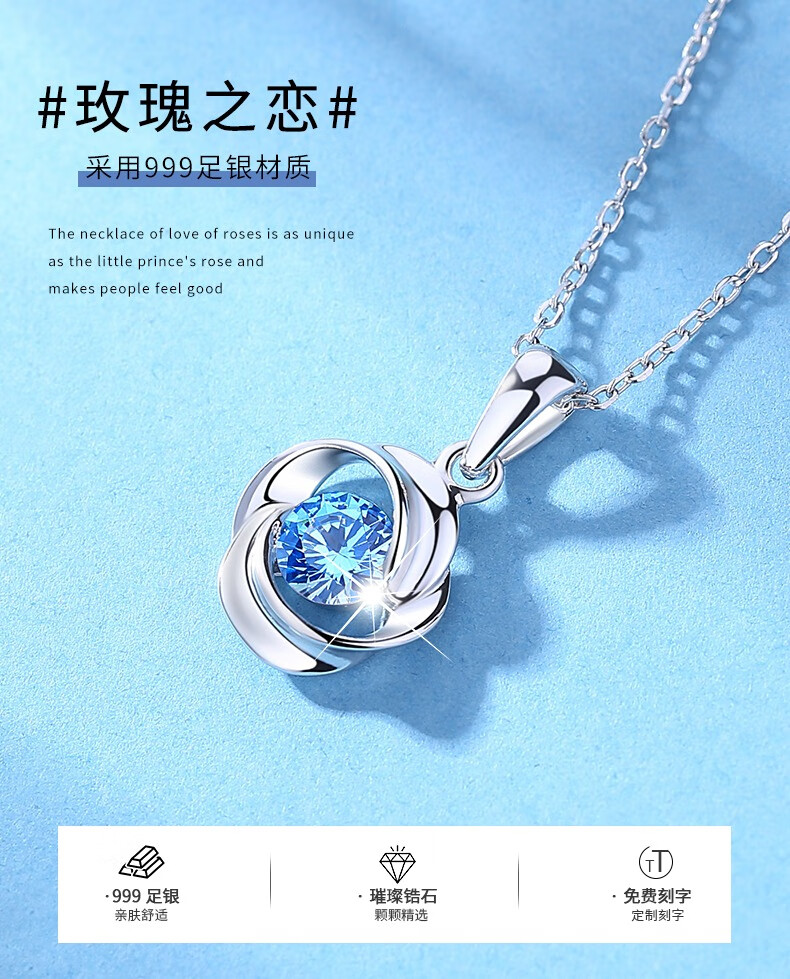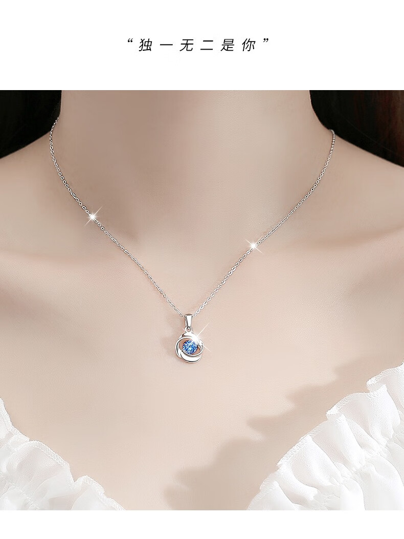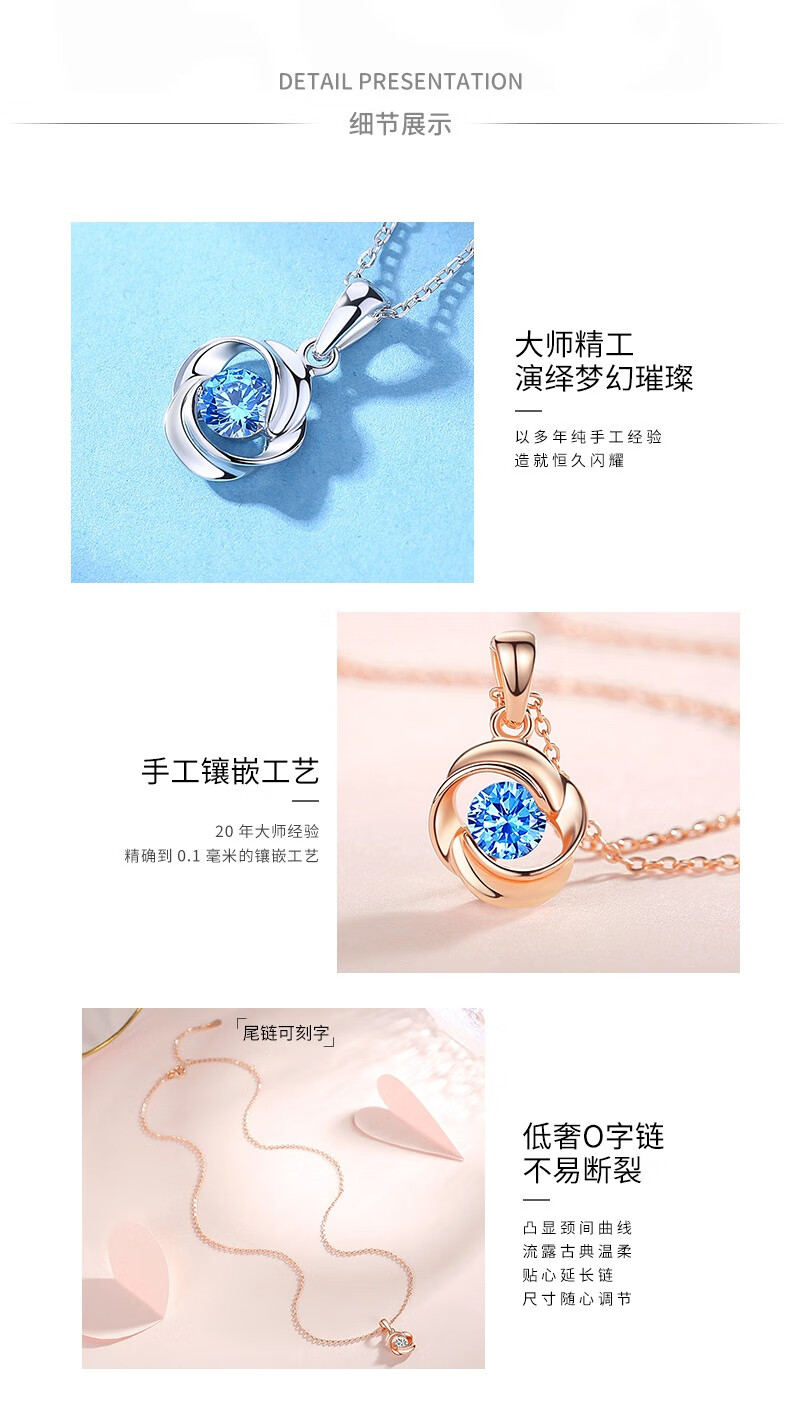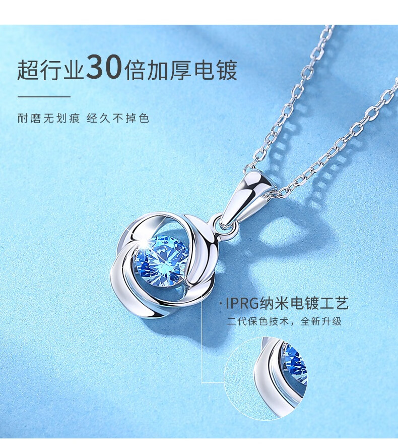 Ji Sifan Light Luxury Mobius Necklace Women's Pendant Heart of the Ocean Confession Birthday Gift Anniversary for Girlfriend and Wife White Gold Topaz Sapphire SF Air Express Exquisite Gift Box