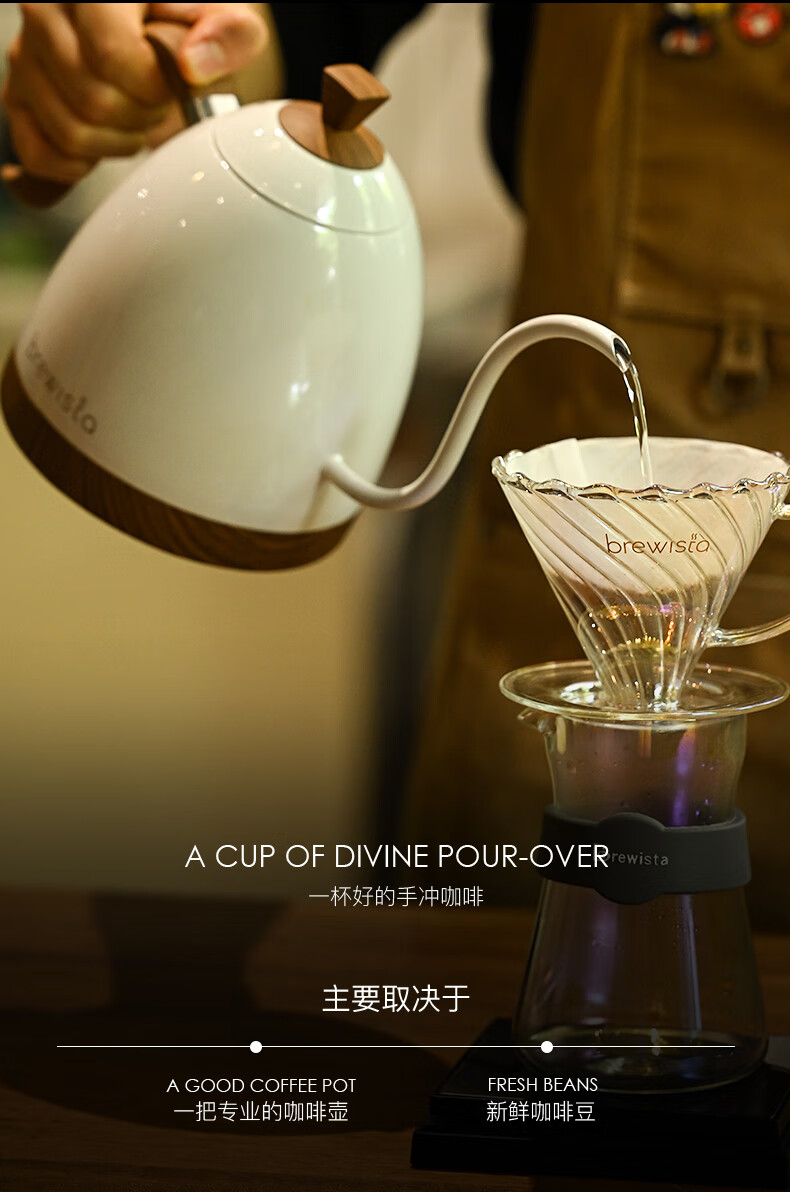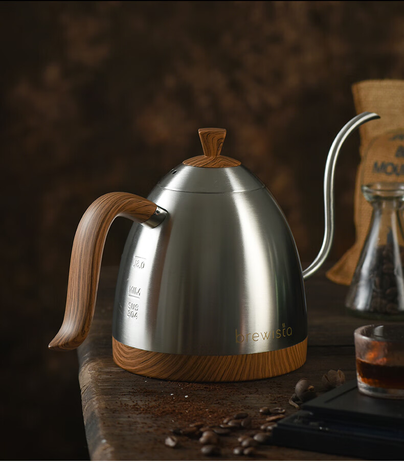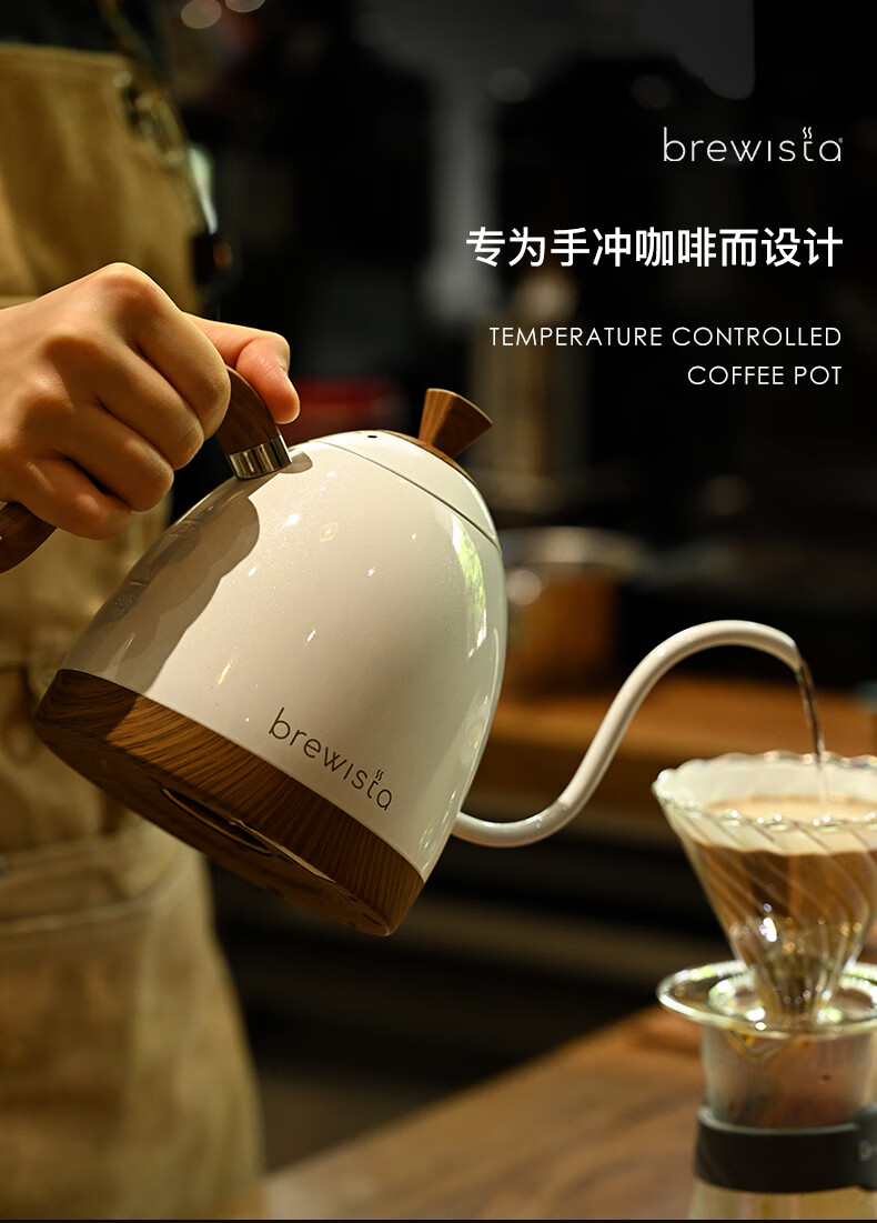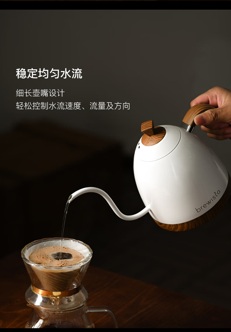 BREWISTA Intelligent Temperature Control Hand Brewing Coffee Pot Stainless Steel Temperature Controlling Hand Brewing Household Slender Mouth Hot Hand Brewing Pot Silver PRO- 0.6L