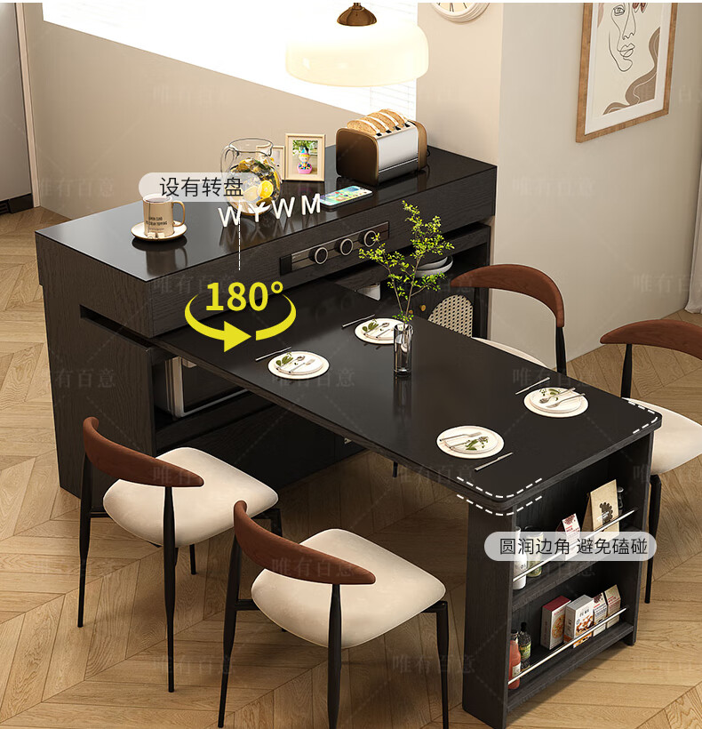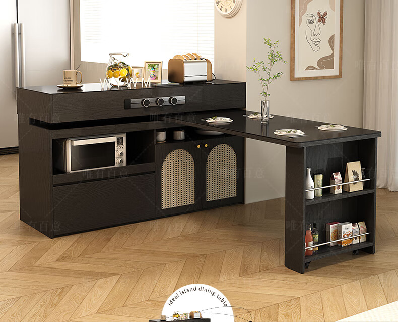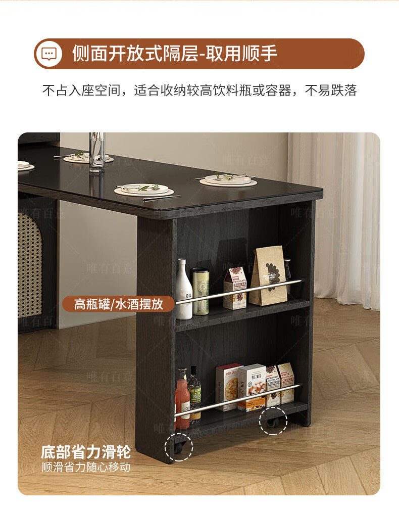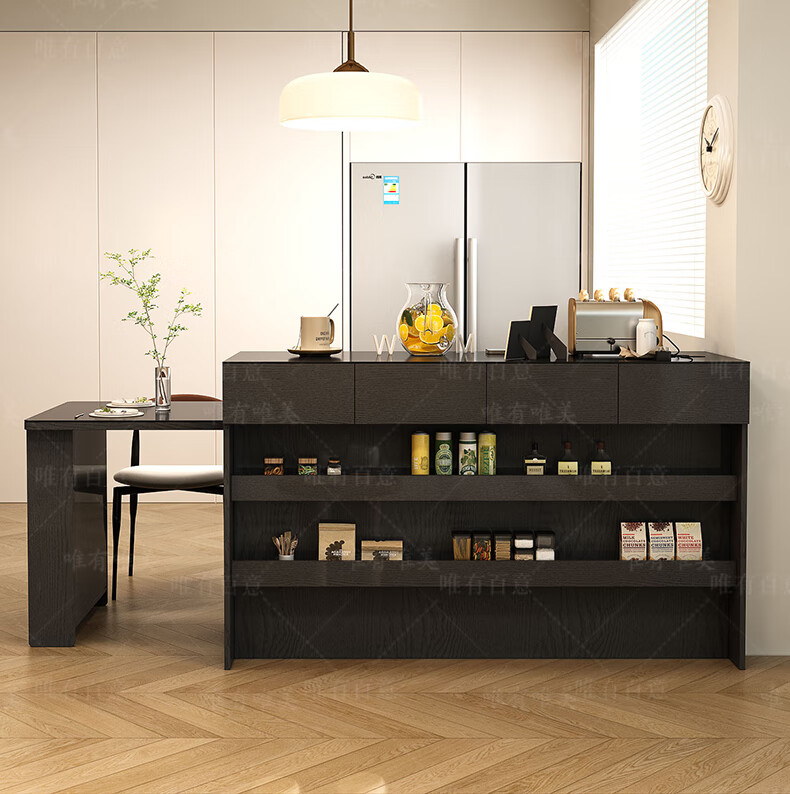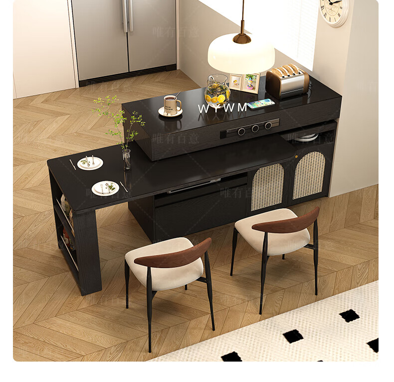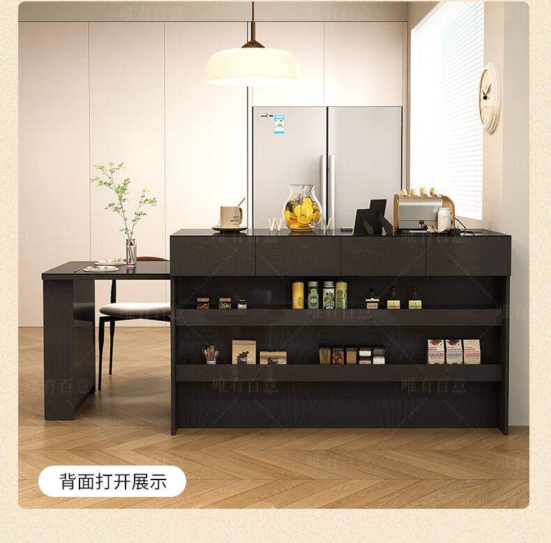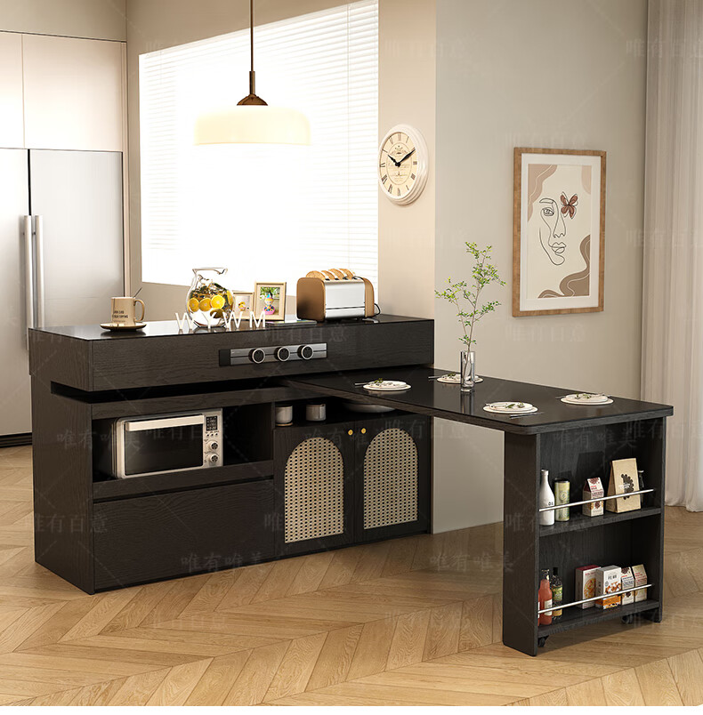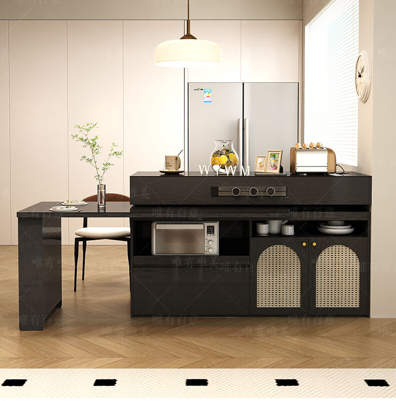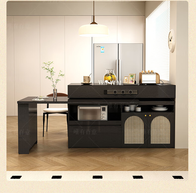 Only Baiyi living room home island dining table integrated retractable and rotating antique-style rattan open kitchen guide table sideboard 1 meter island + 1 meter dining table (0.5 meter wide)