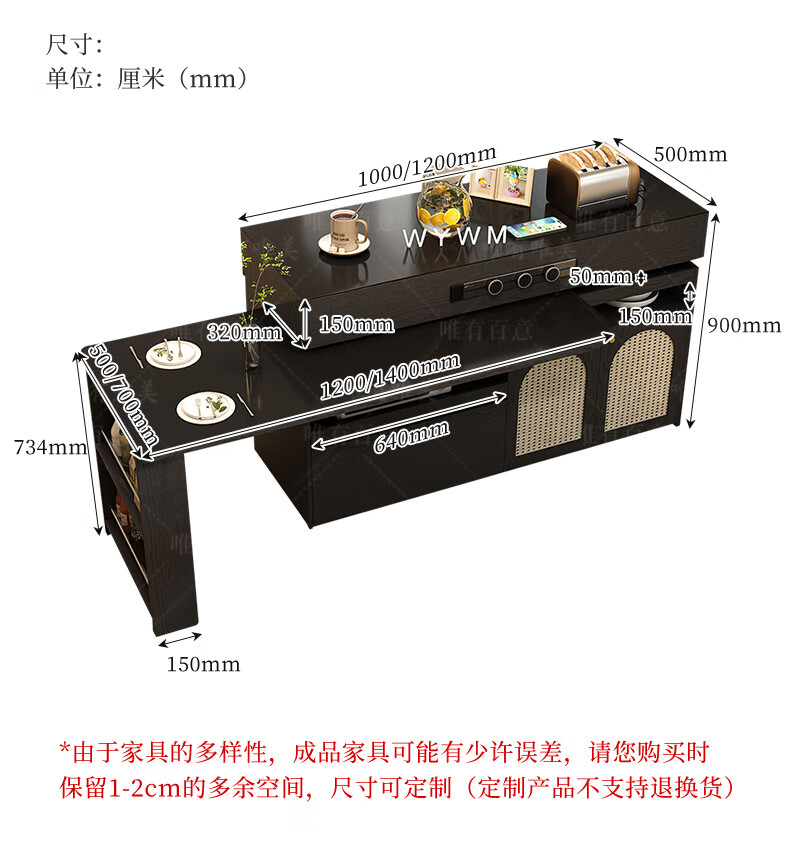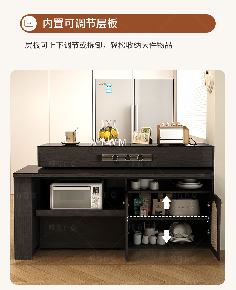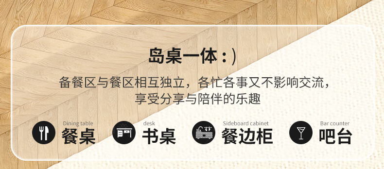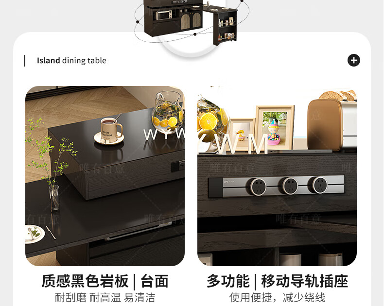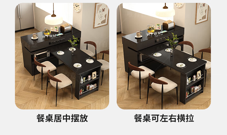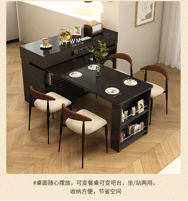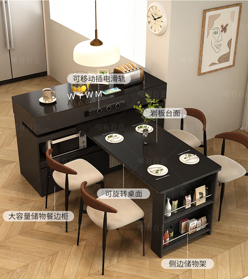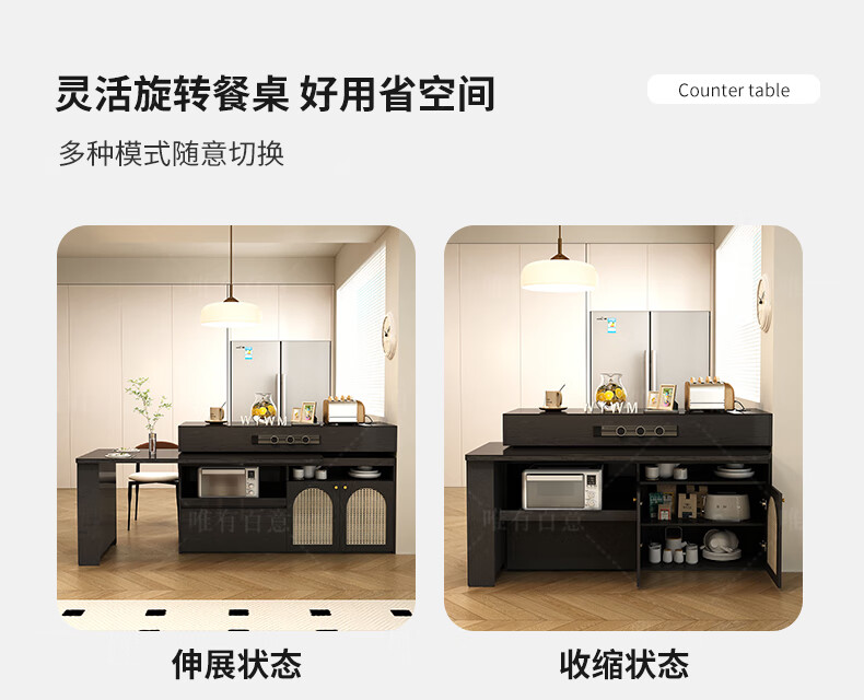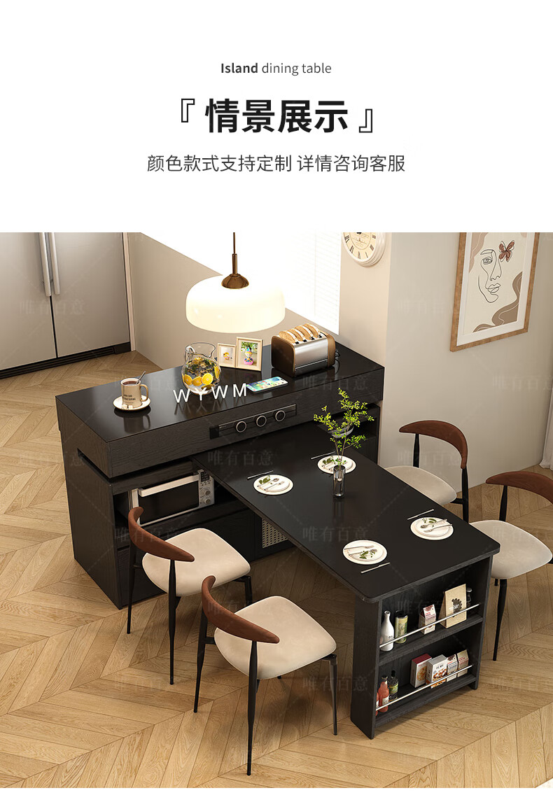 Only Baiyi living room home island dining table integrated retractable and rotating antique-style rattan open kitchen guide table sideboard 1 meter island + 1 meter dining table (0.5 meter wide)