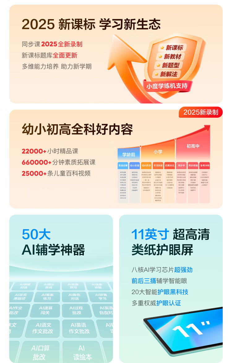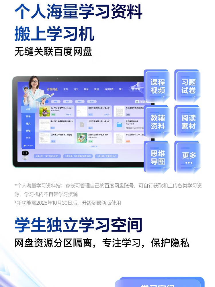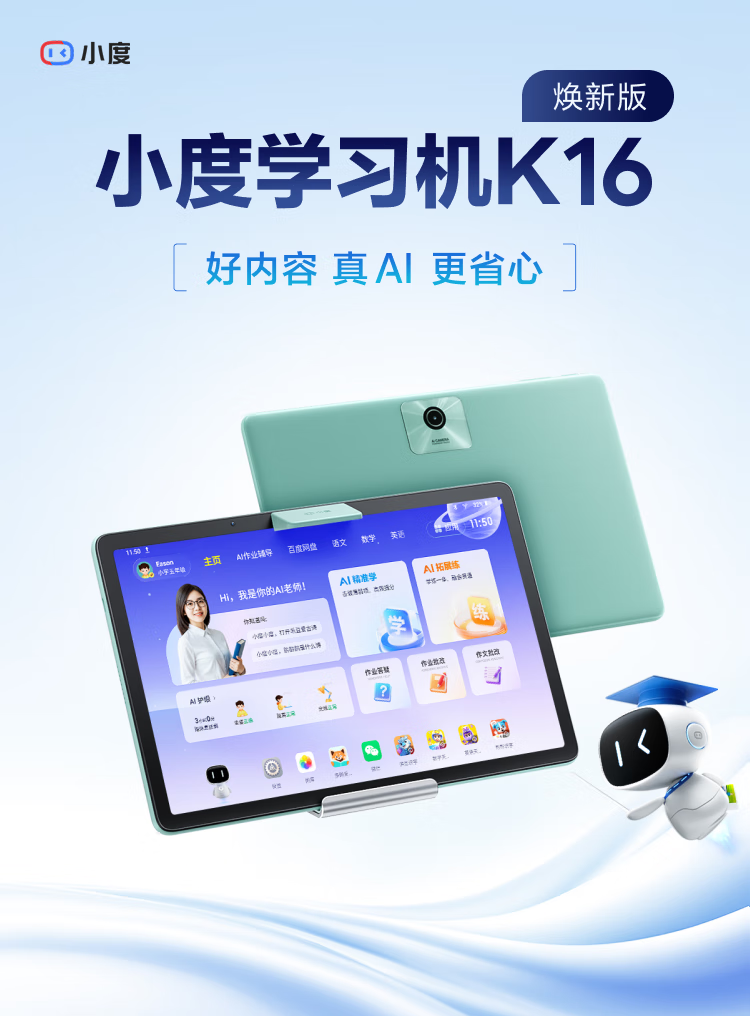 Xiaodu Learning Machine K16 Renewed Edition (6+256GB) 11-inch paper-like screen Early childhood, junior high and high school synchronous learning courses AI precision tutoring machine Learning tablet Xiaodu Learning Machine K20 Renewed Edition Longman Family Membership Offline mode