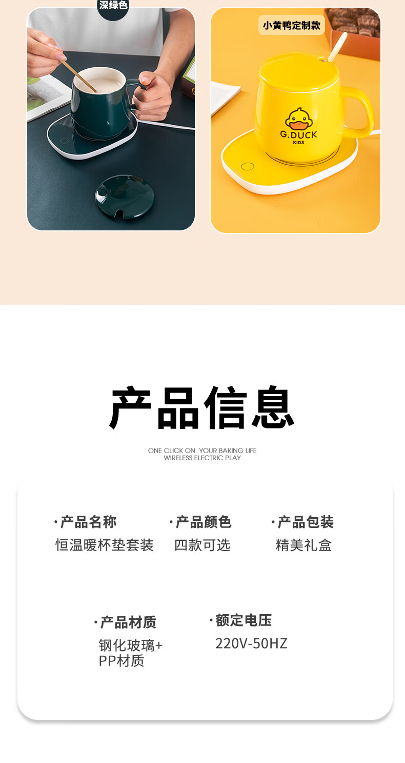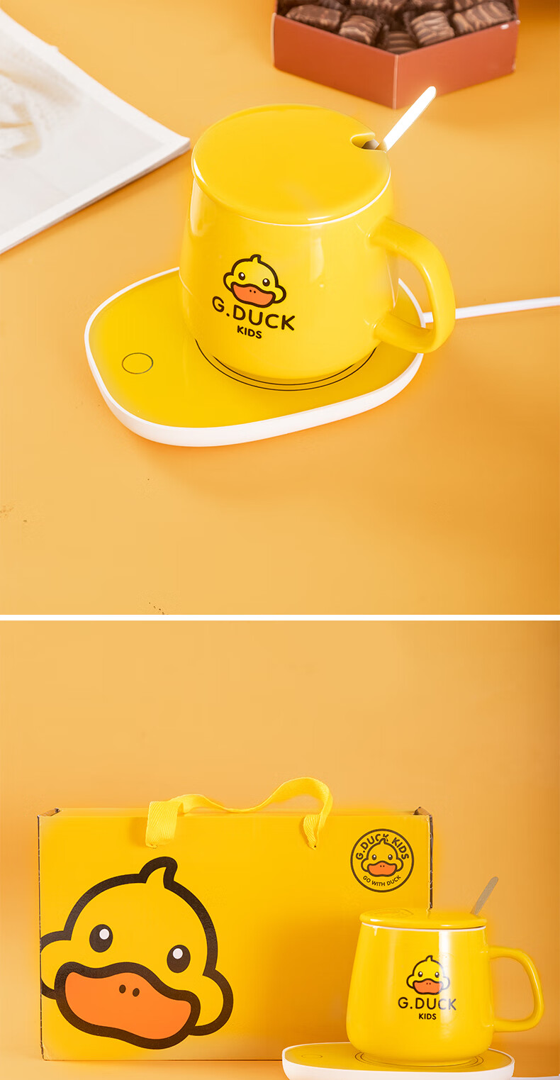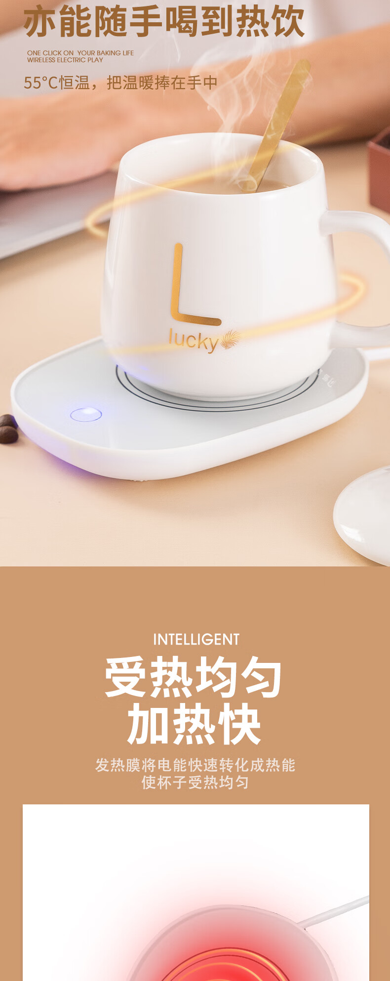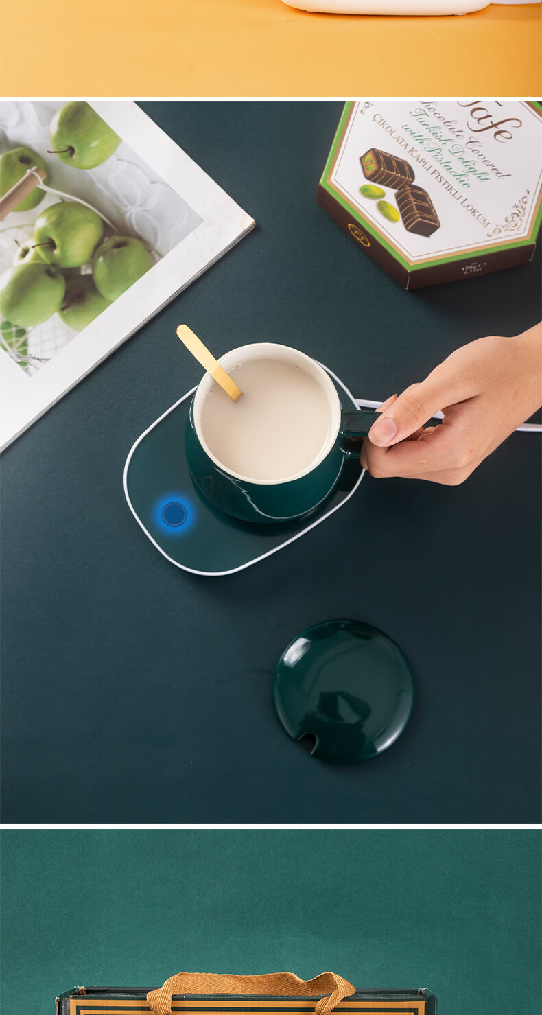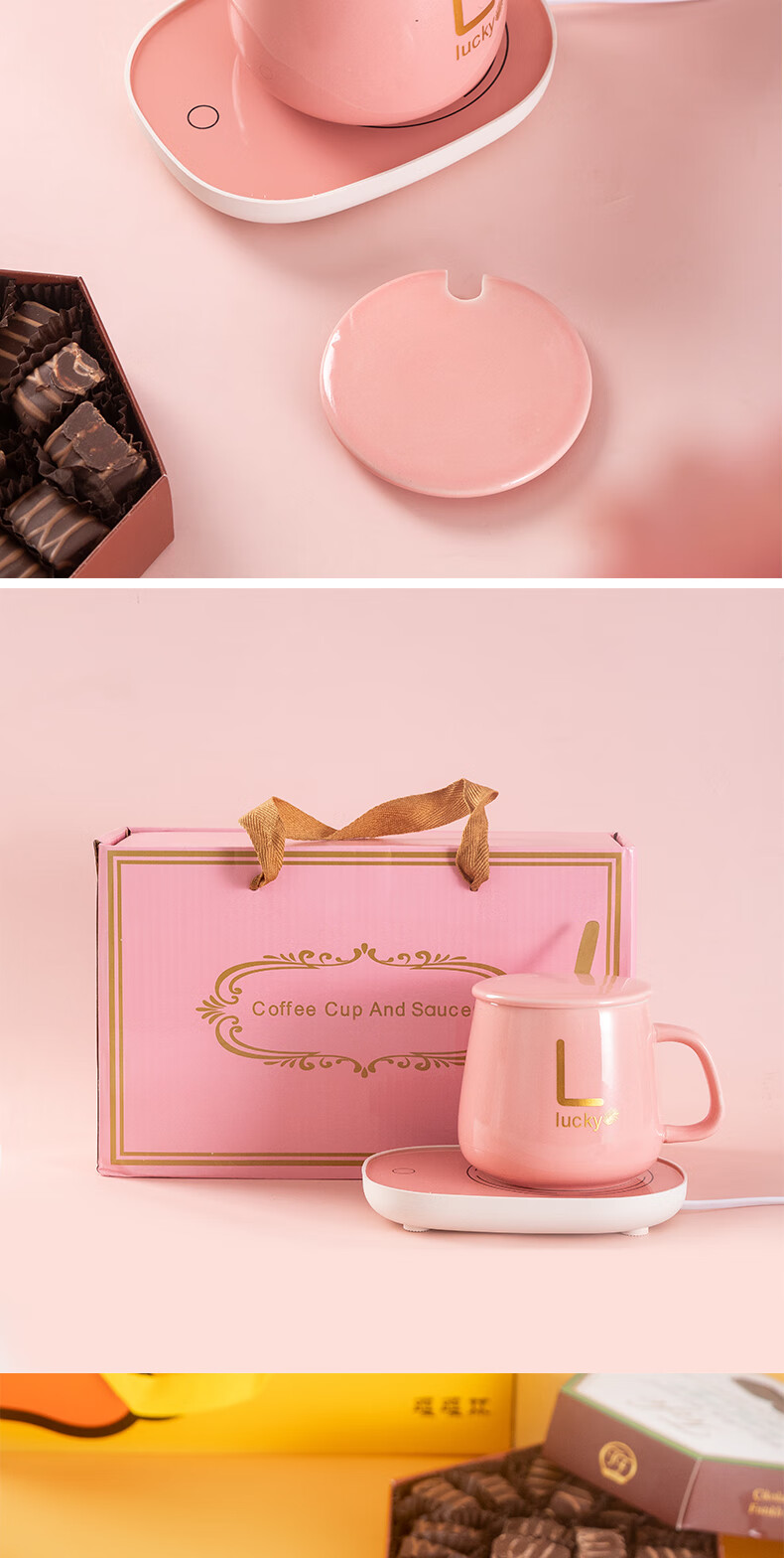 Ceramic Cup Thermos Coaster Electric Coaster Water Cup Constant Temperature Heater Thermostatic Cup Warmer Office Tea Seat Bottle Warmer Insulation Base Birthday Gift for Girls Girly Pink Gift Box Coaster + Belly Cup with Cover + Spoon Warming Cup Set