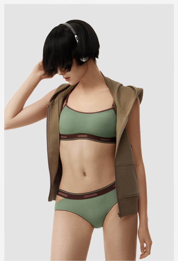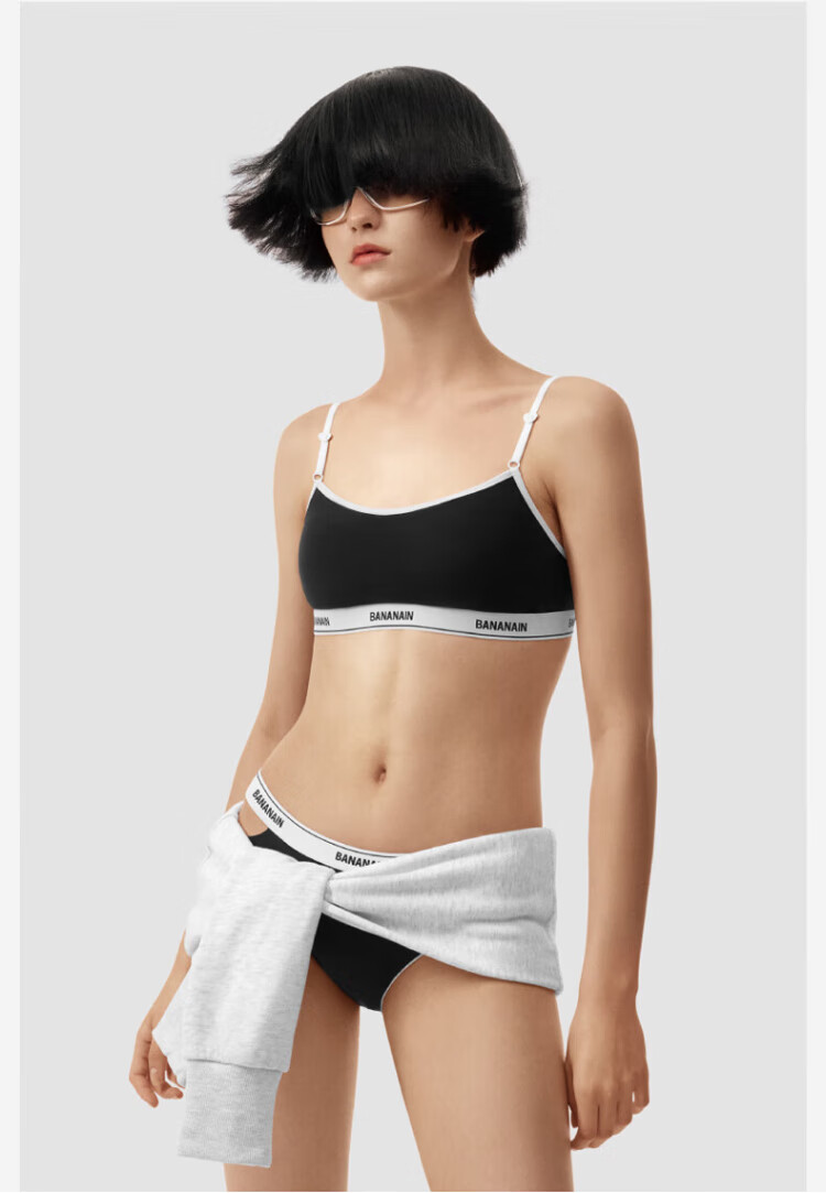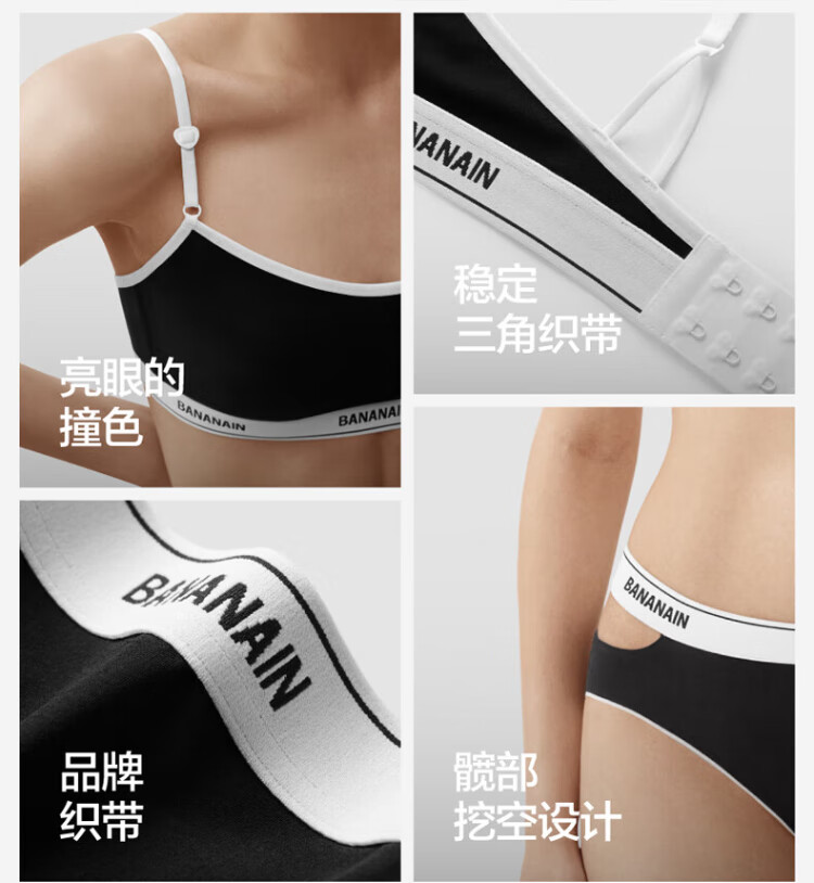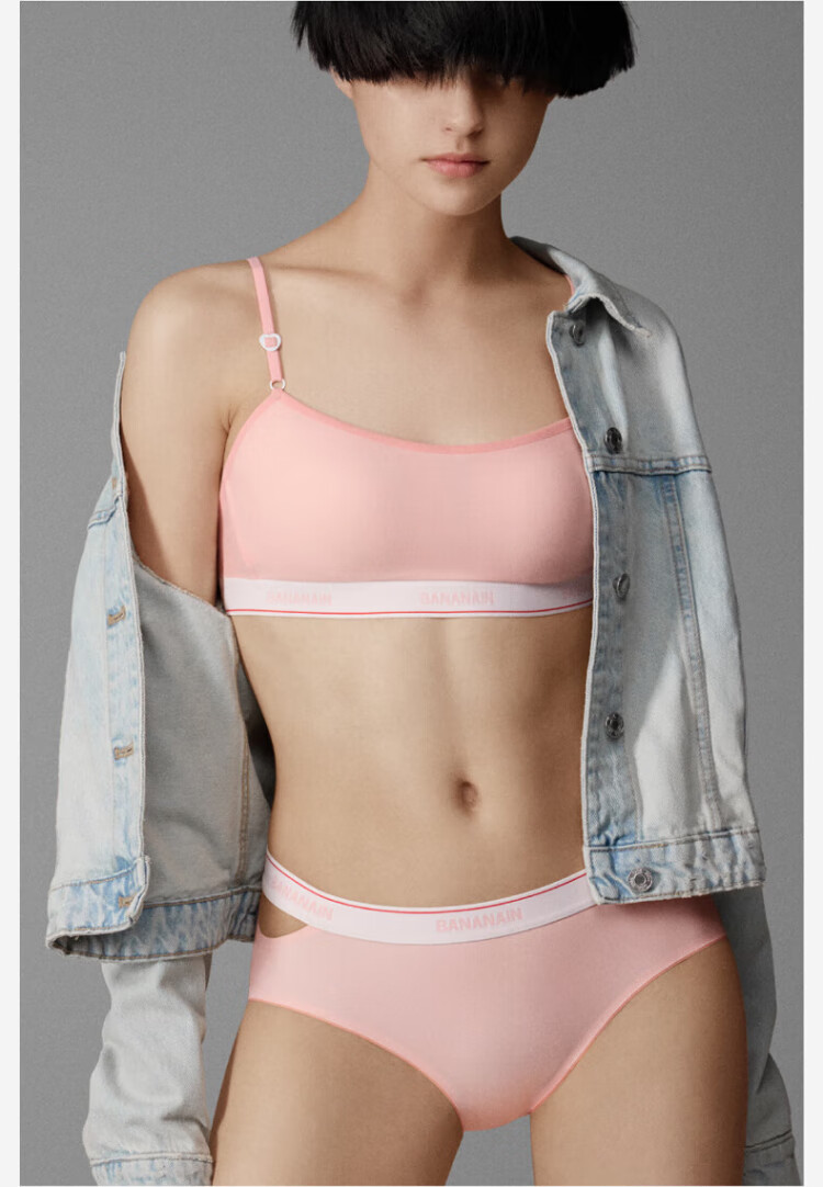 Bananain 502S women's underwear set, sweet and cool contrasting color sports push-up bra, holiday gift for girlfriend, gift box set, light apricot pink M (75A/B)
