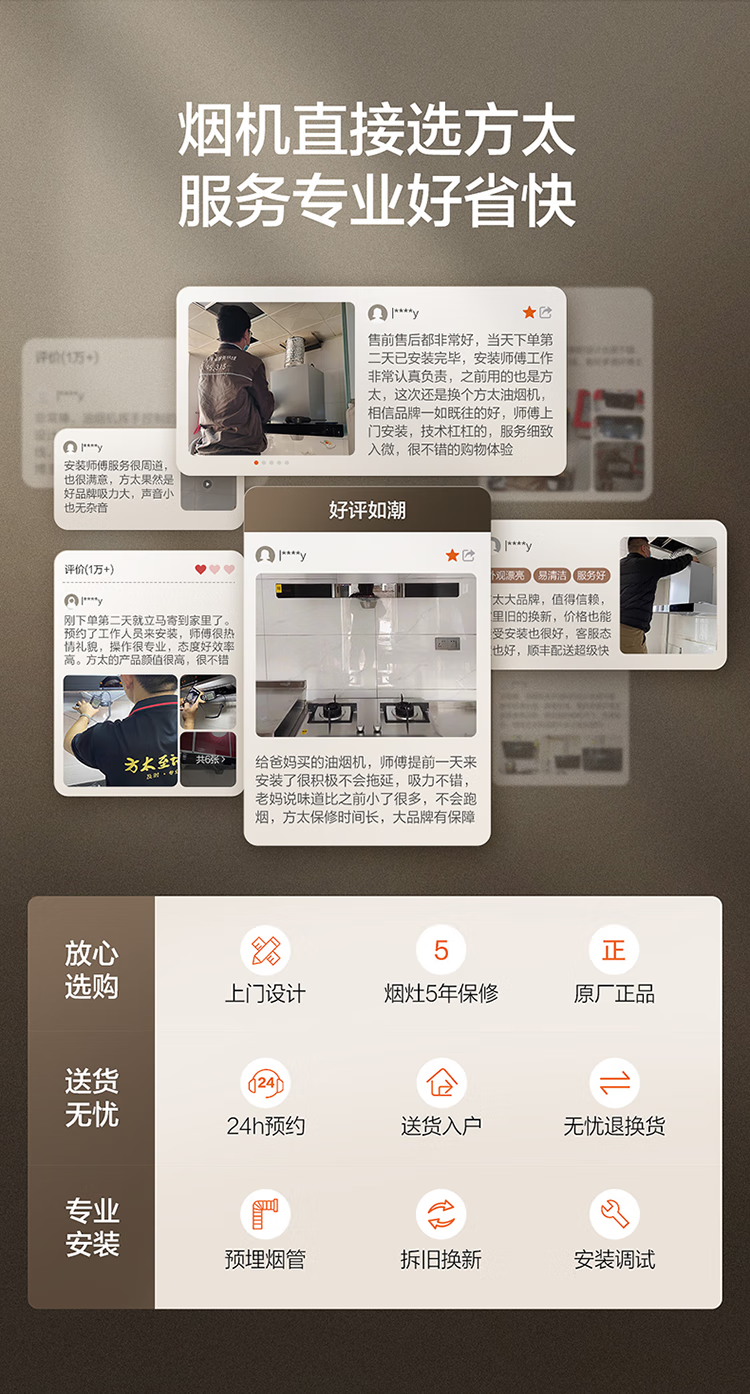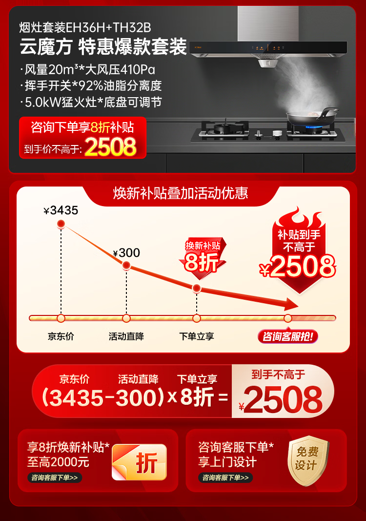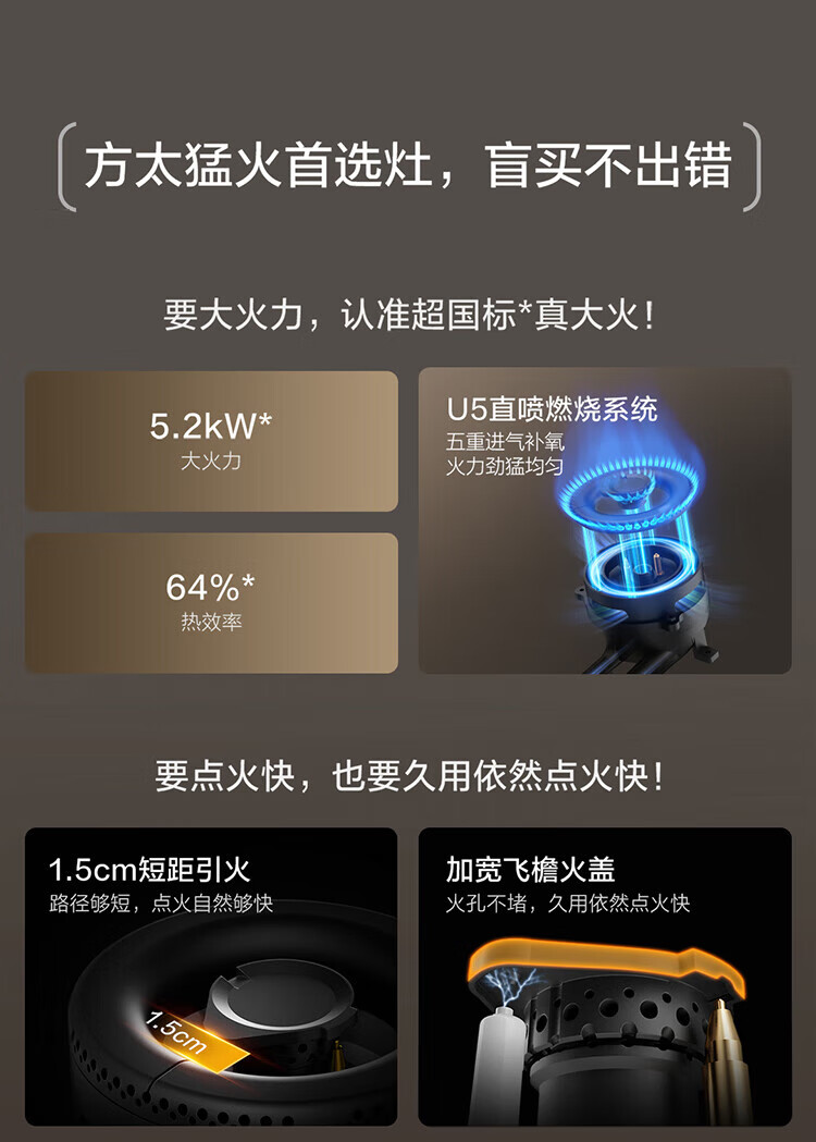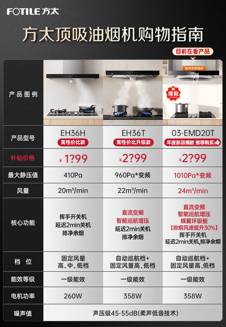FOTILE European-style range hood gas stove set wave switch top suction range hood household large air volume stove set EH36H two-piece set hood + 5.2KW natural gas stove 02-TH36B