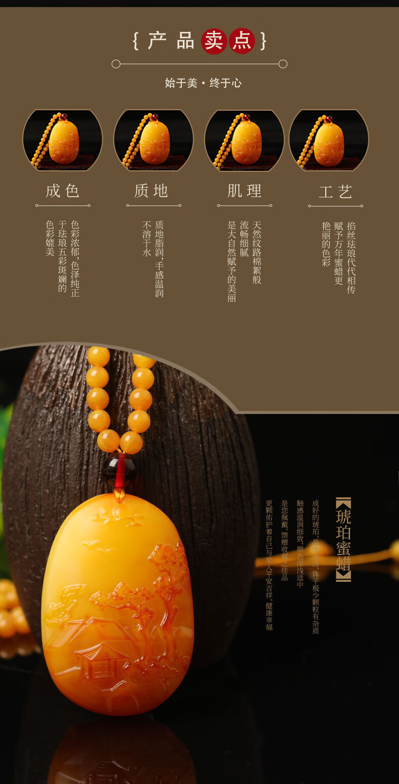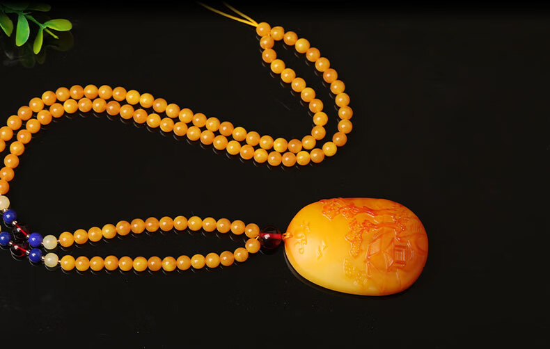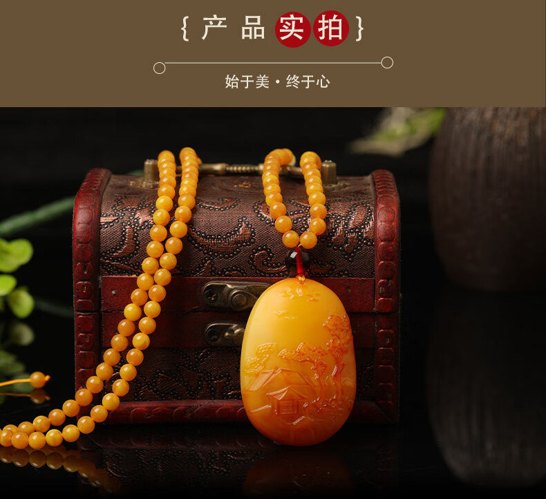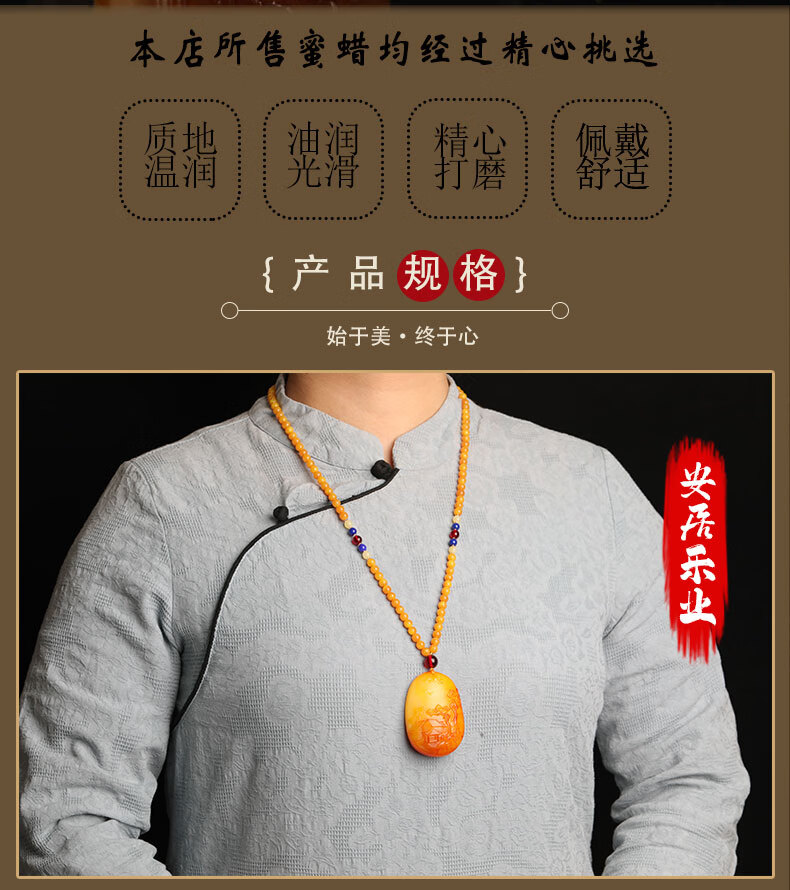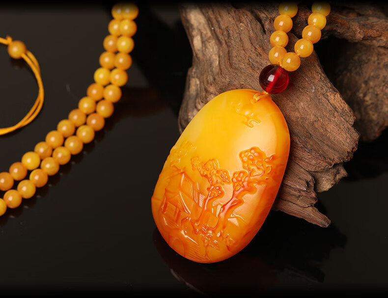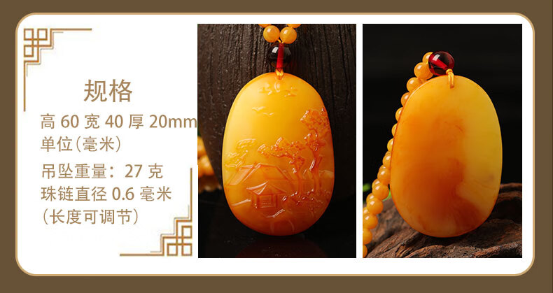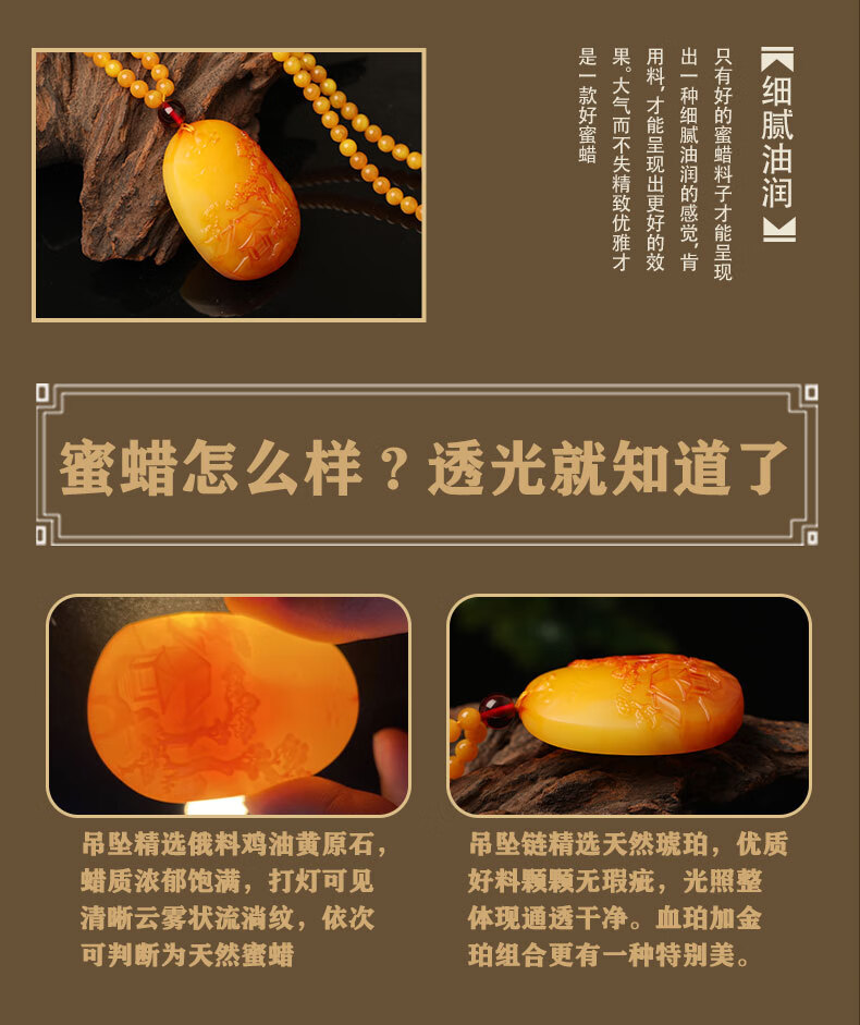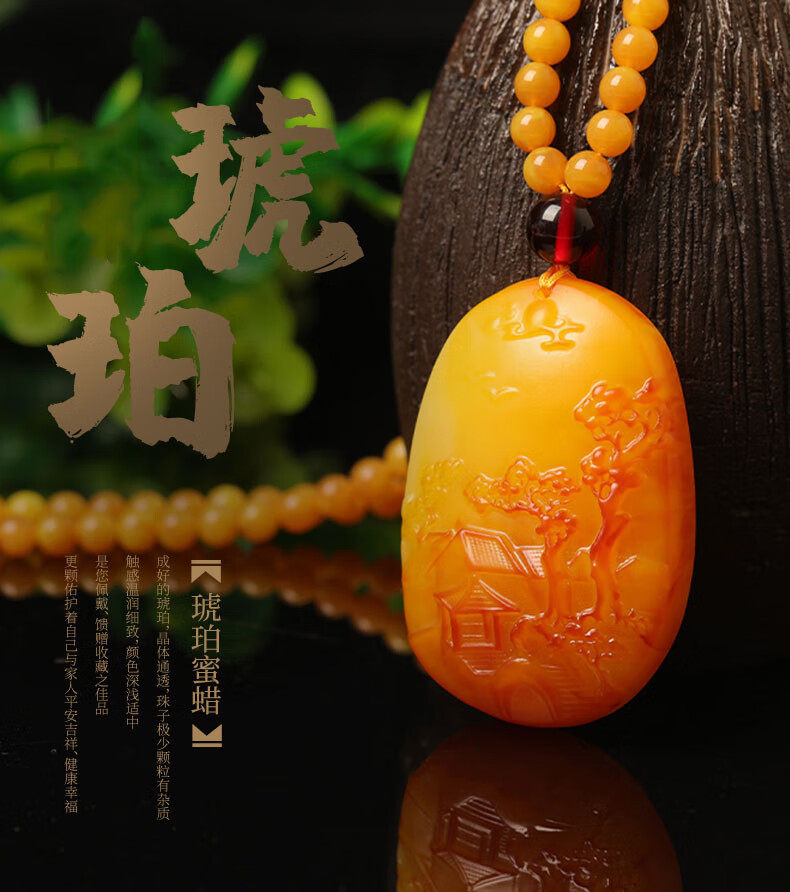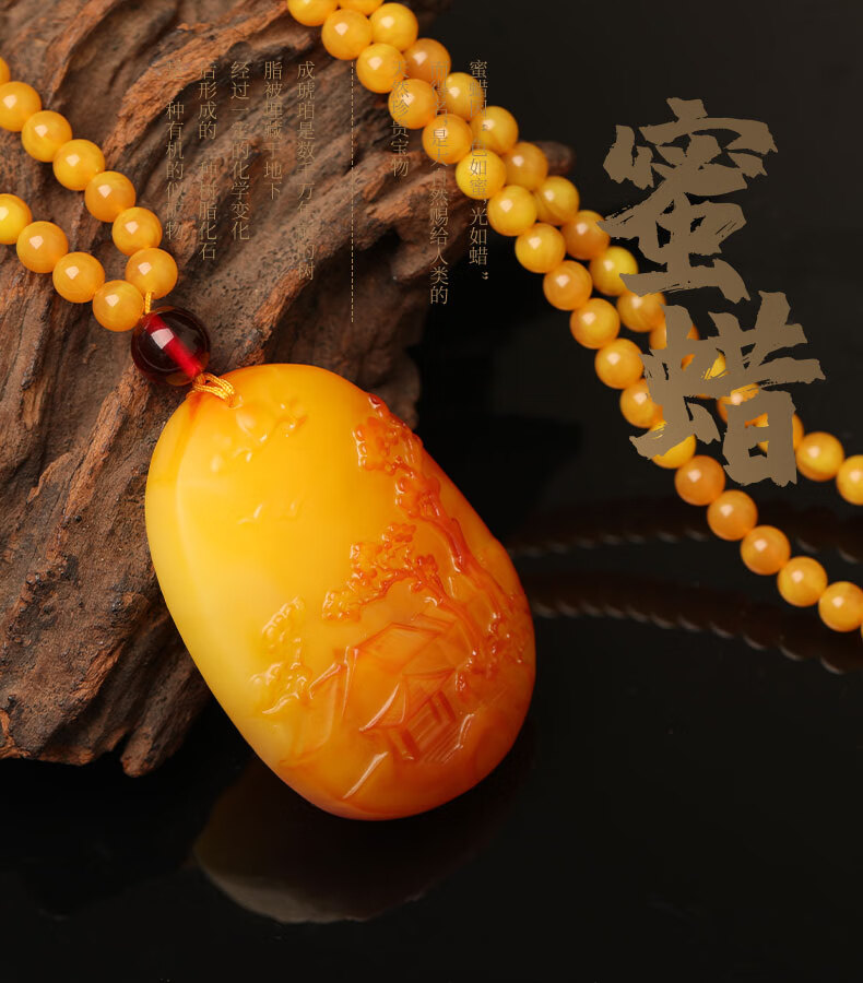 Layun Feiyin beeswax pendant, finely carved for men and women, chicken oil yellow old wax optimized amber necklace for gift, 60*40*20mm (with certificate)