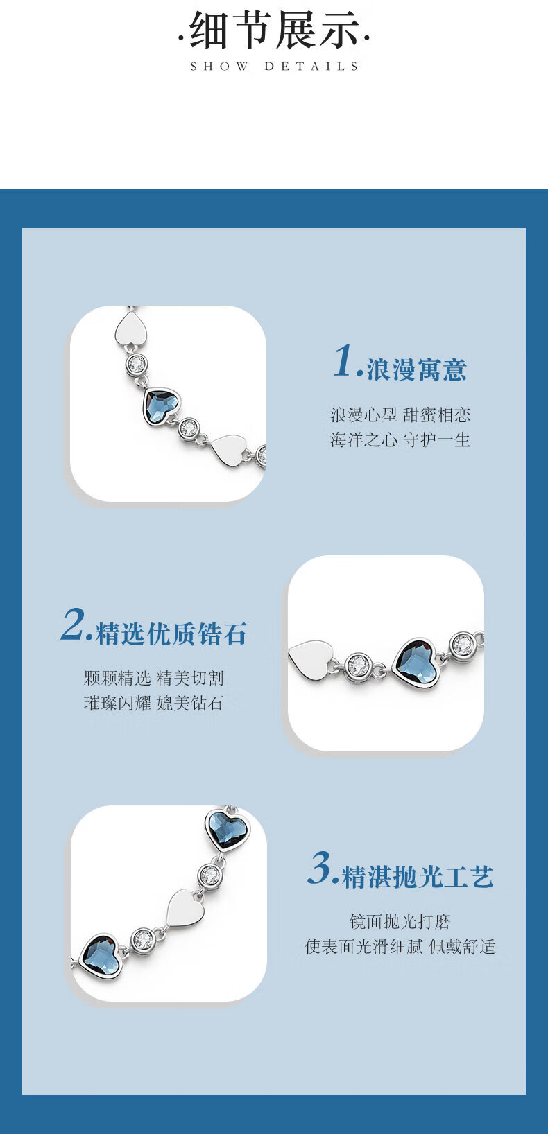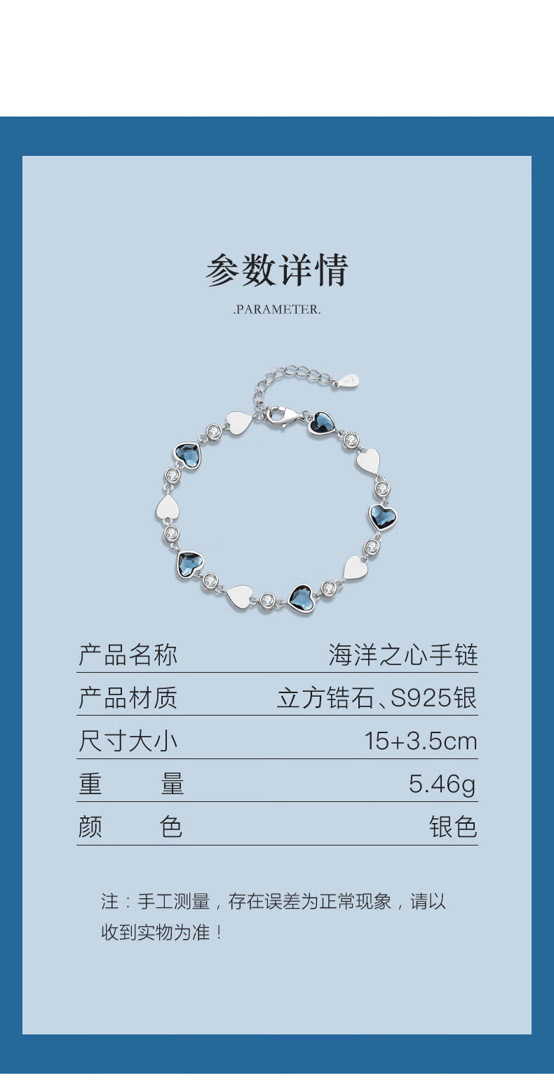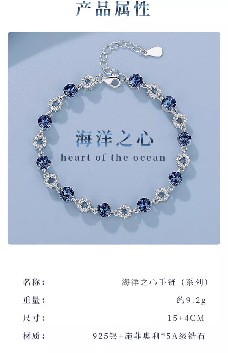 Givenchy Light Luxury Heart of the Ocean Bracelet Women's Necklace Practical Heart-shaped Jewelry Birthday Gift for Girlfriend and Wife Heart of the Ocean Bracelet