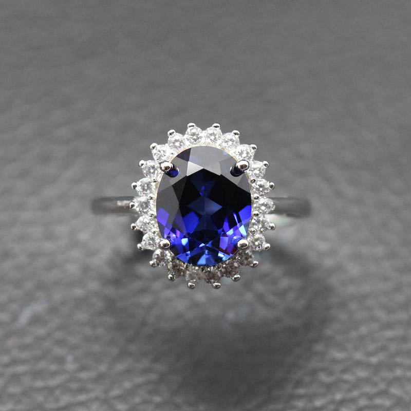 Princess Xuan Yong's synthetic blue gemstone ring, real silver live mouth, classic dark blue color gemstone jewelry, tanzanite, live mouth, adjustable