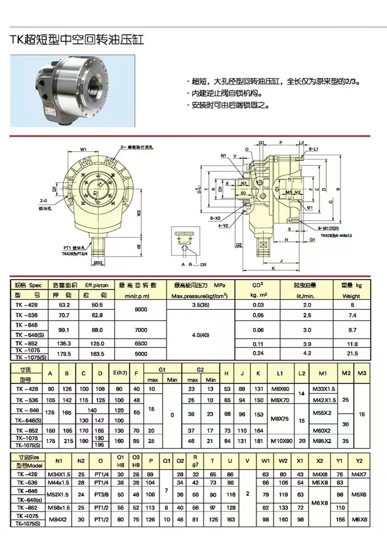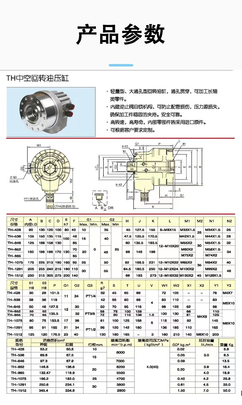 Hollow cylinder Hydraulic cylinder Hydraulic chuck Three-claw cylinder High-speed hydraulic rotary cylinder Hollow rotary cylinder 6810 inches TK-1248 Rear lock thread M48*1.5