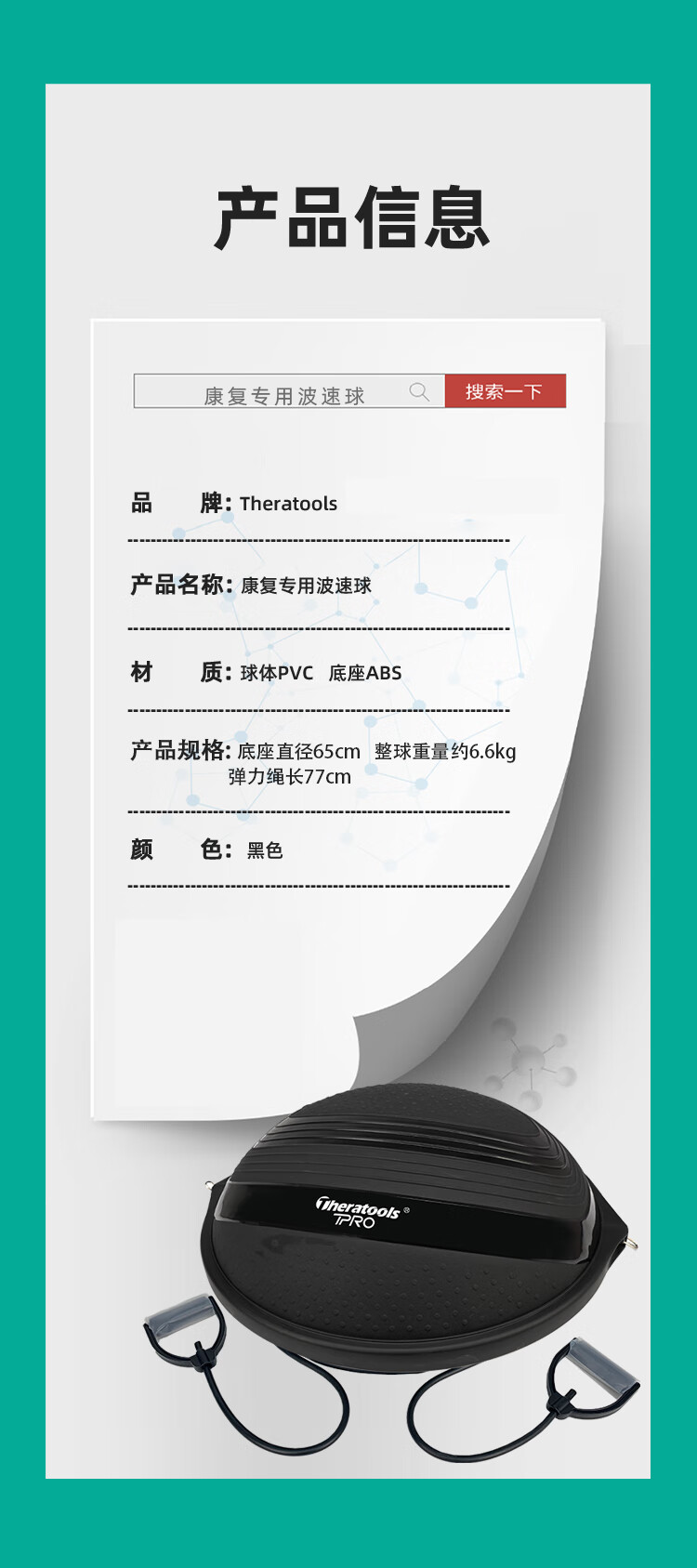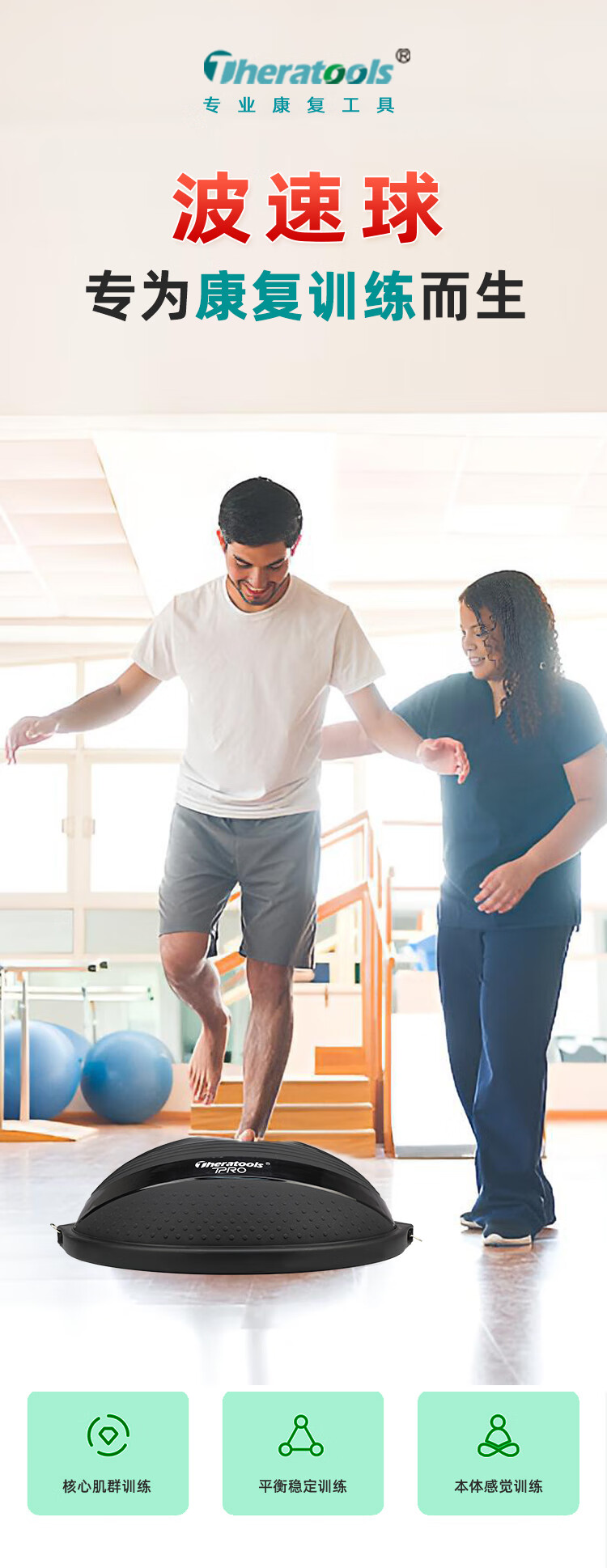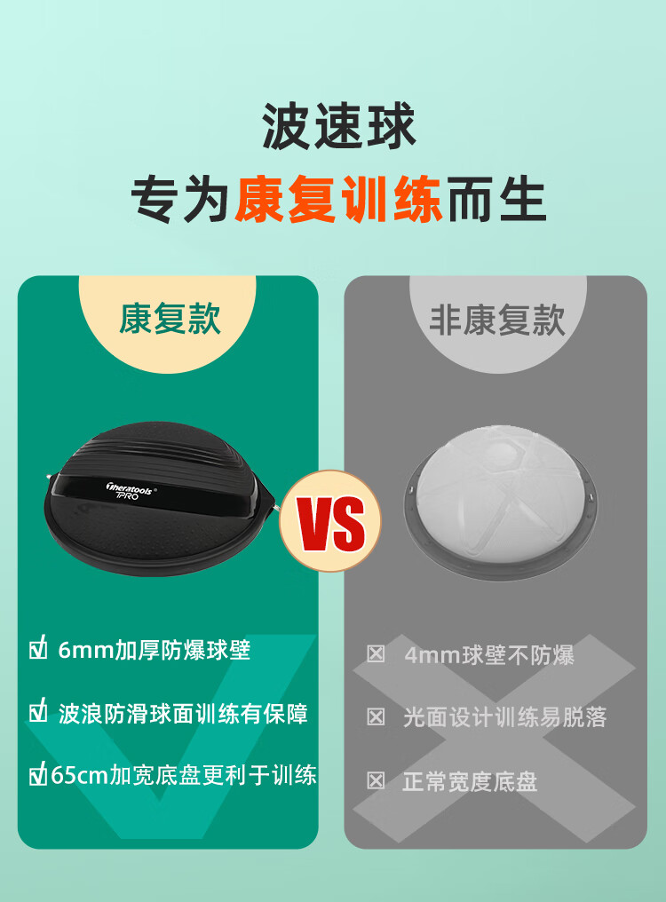 Theratools rehabilitation training wave speed ball semicircular balance ball professional bosu ball foot yoga hemisphere core strength trainer black 47cm small size