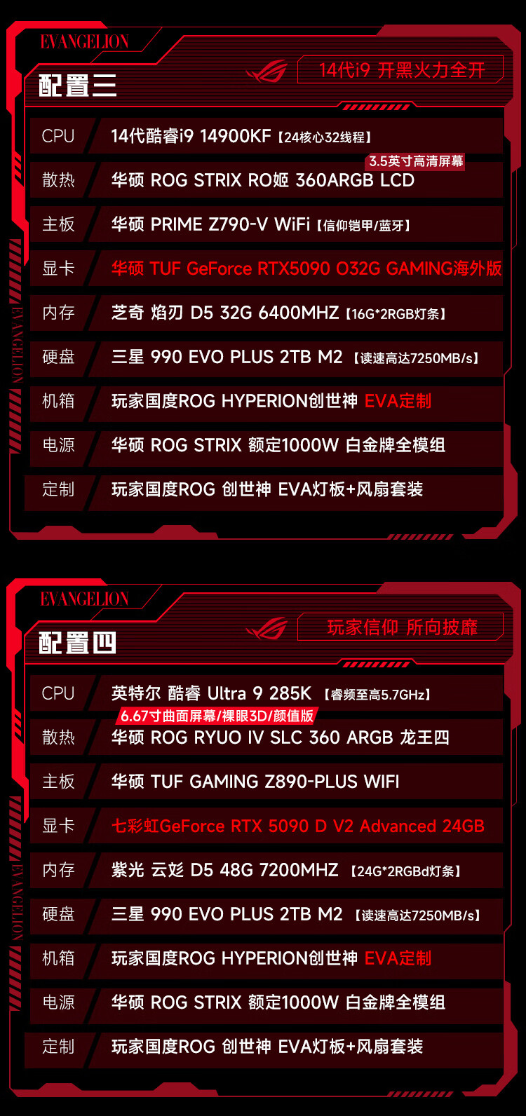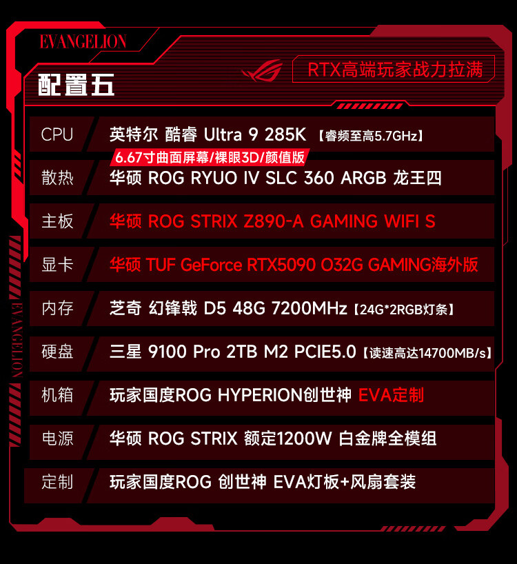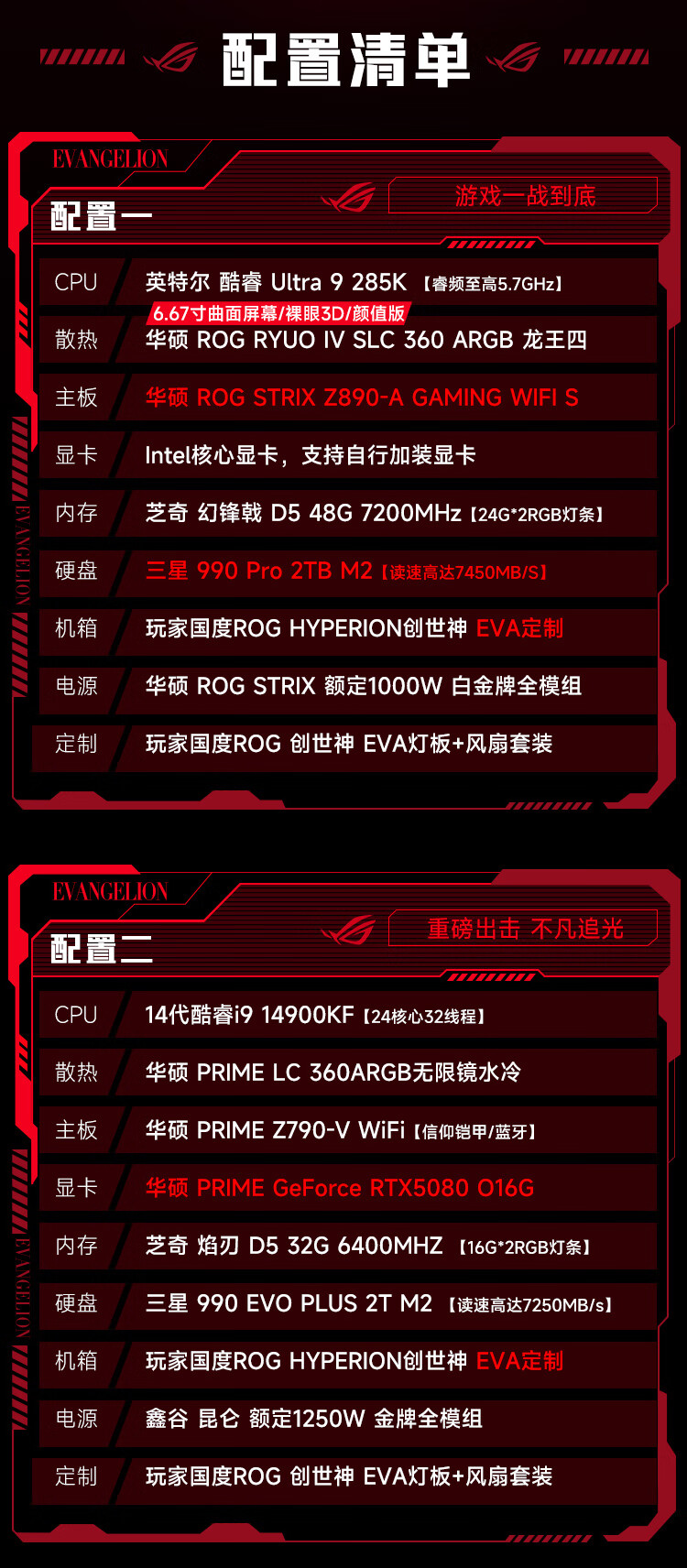 ASUS ROG Genesis EVA No. 2 machine co-branded Core i9 14900KF/RTX5080/5090D graphics card Yeshen computer e-sports game family bucket desktop host Ultra9 285K+48G+2TB丨Configuration one