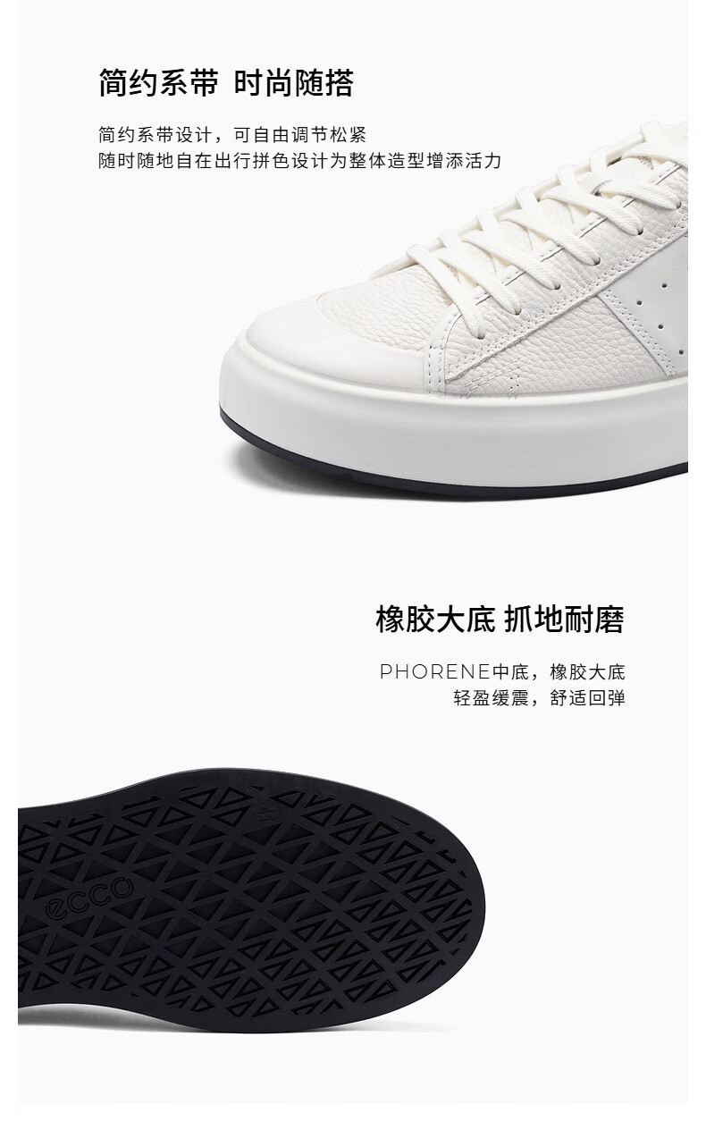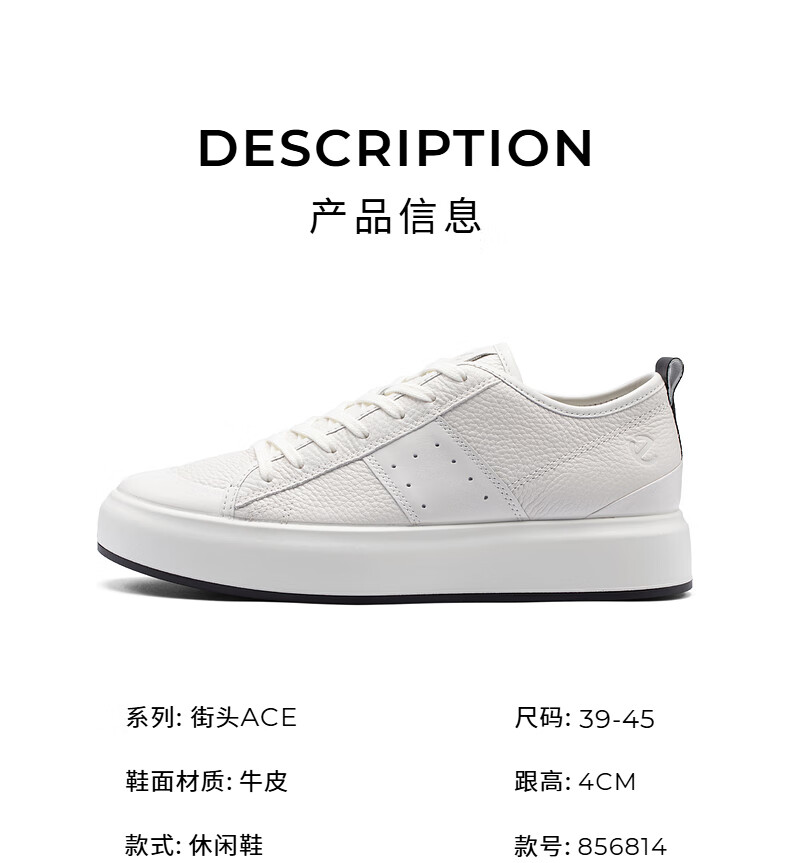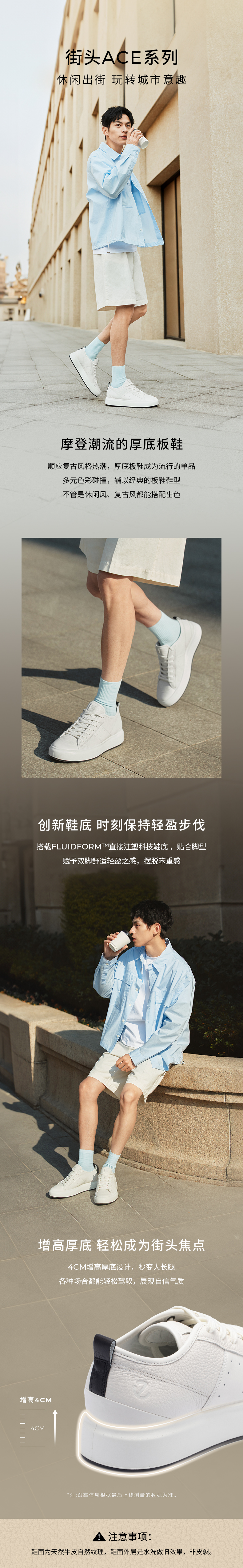 ECCO casual sneakers for men, trendy thick-soled retro height-increasing men's shoes, cowhide, street ACE856814 HL white 85681450874 42 It is recommended to buy one size up