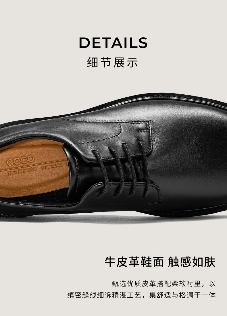 ECCO Leather Shoes for Men Smooth Wedding Men's Shoes Derby Shoes Men's Business Shoes Wedding Shoes City Oslo 550224 HL Black 55022401001 42
