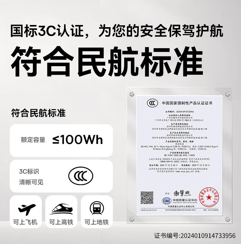 ZNNCO 3C certified, can be used on airplanes, 20,000 mAh power bank, compact and portable, comes with cable, mini fast charge, large capacity power bank, suitable for Apple and Xiaomi, fast charging version, five outputs, three inputs, four wires, can be used on airplanes, 20,000 mAh, black
