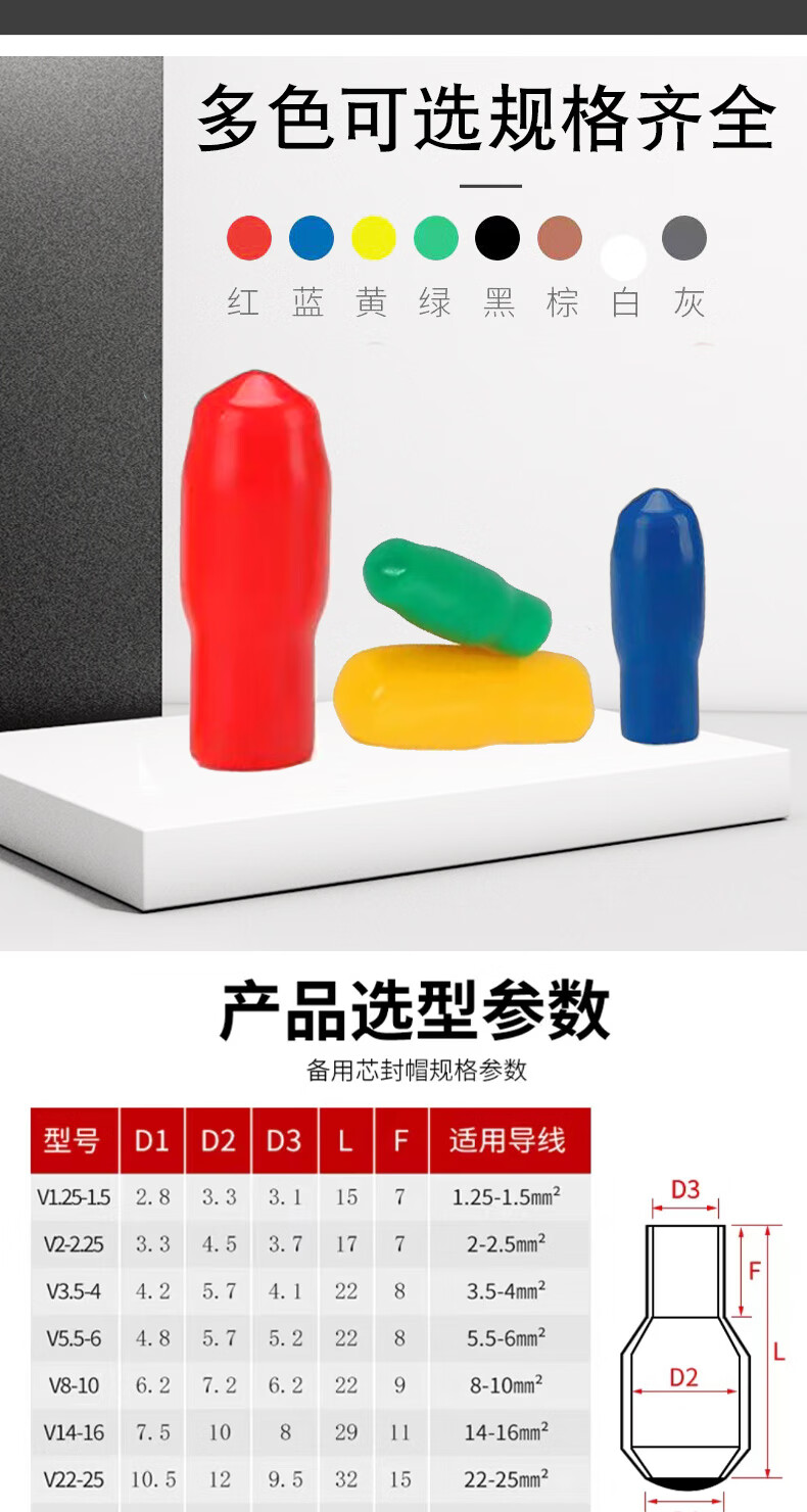 Wire spare core sealing cap insulating cap sheath cable head protective sleeve wire core protection dust cap thread protective sleeve sealing cap 2.5 square meters (200 pieces) red