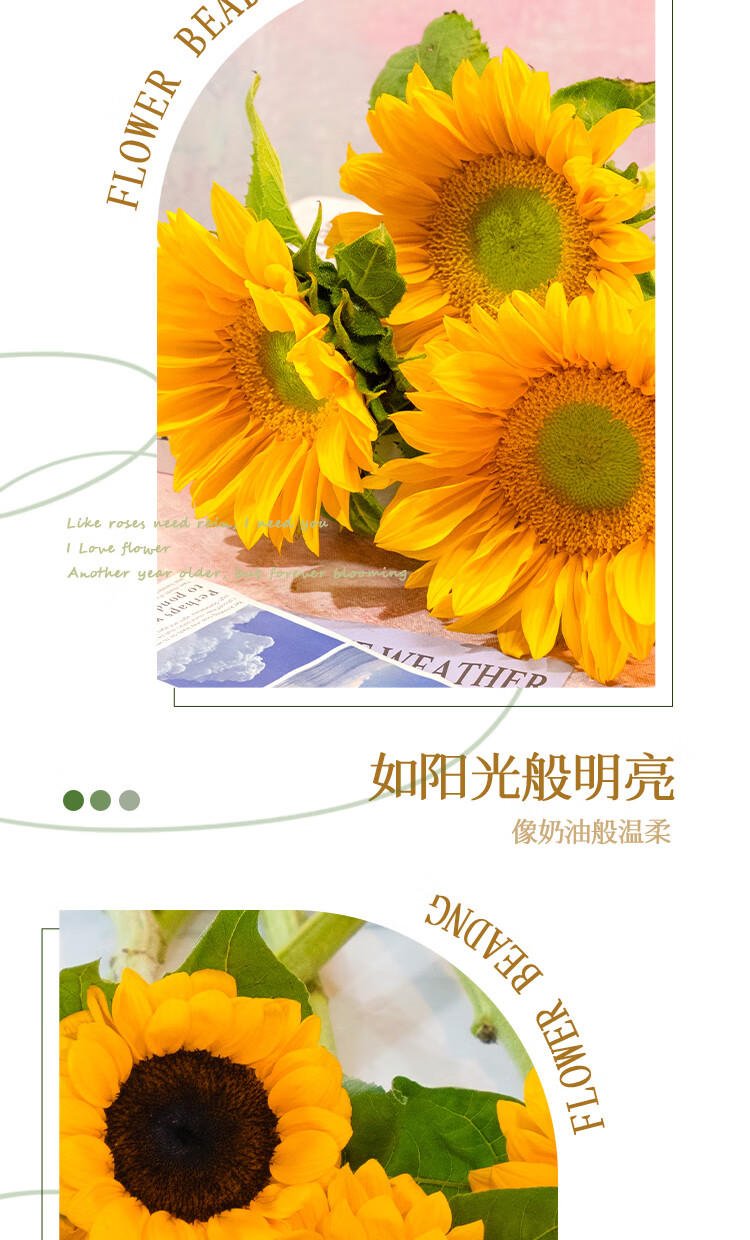 Sunflower Birthday Gift Fresh Cut Flowers Yunnan Base Direct Delivery Fresh Sunflower Flowers Graduation Bouquet 3 Sunflowers Medium Large Flower Medium Large Flower Sunflower