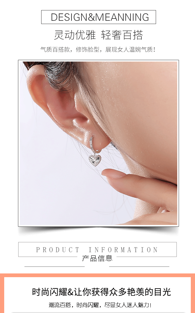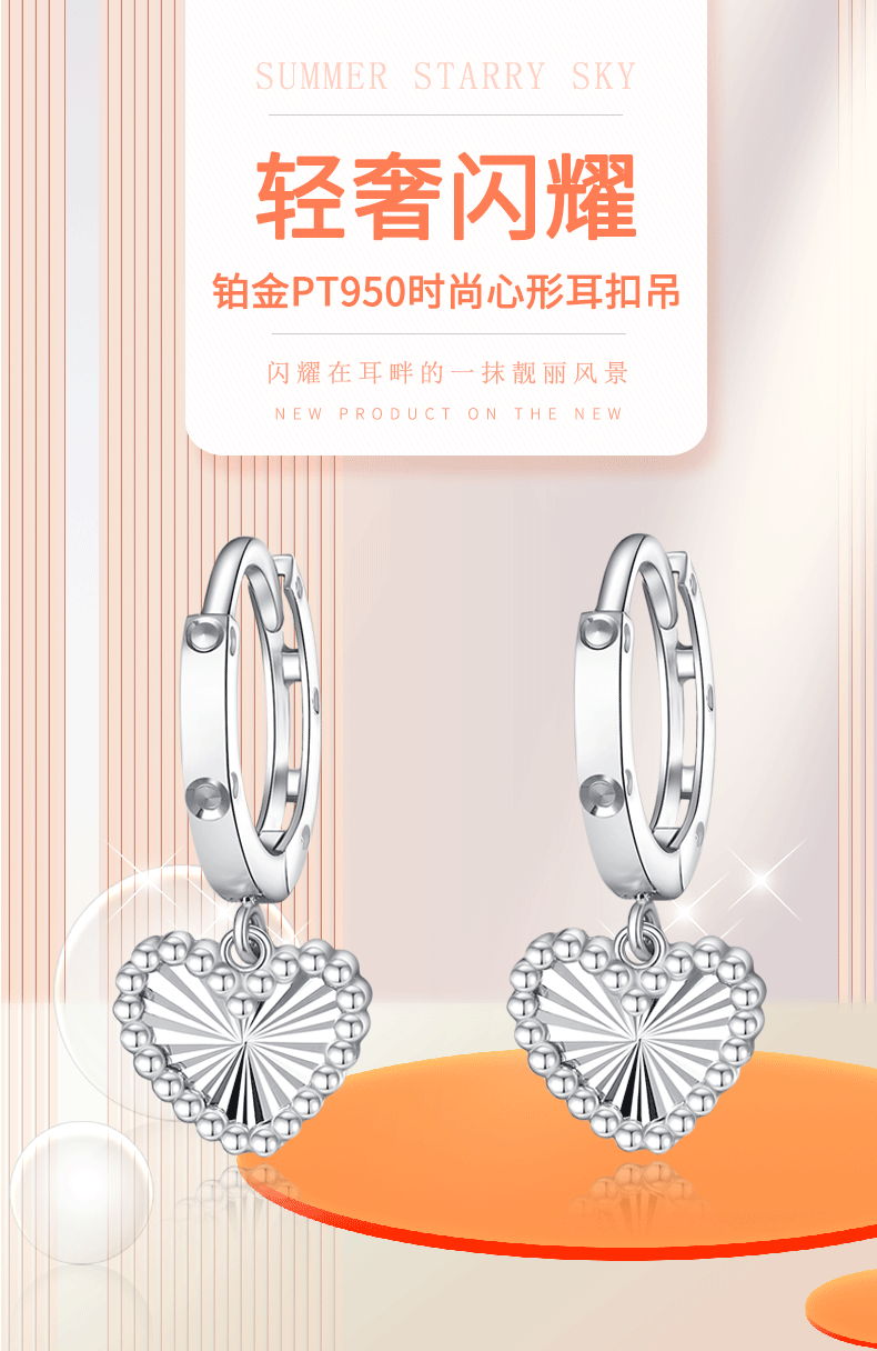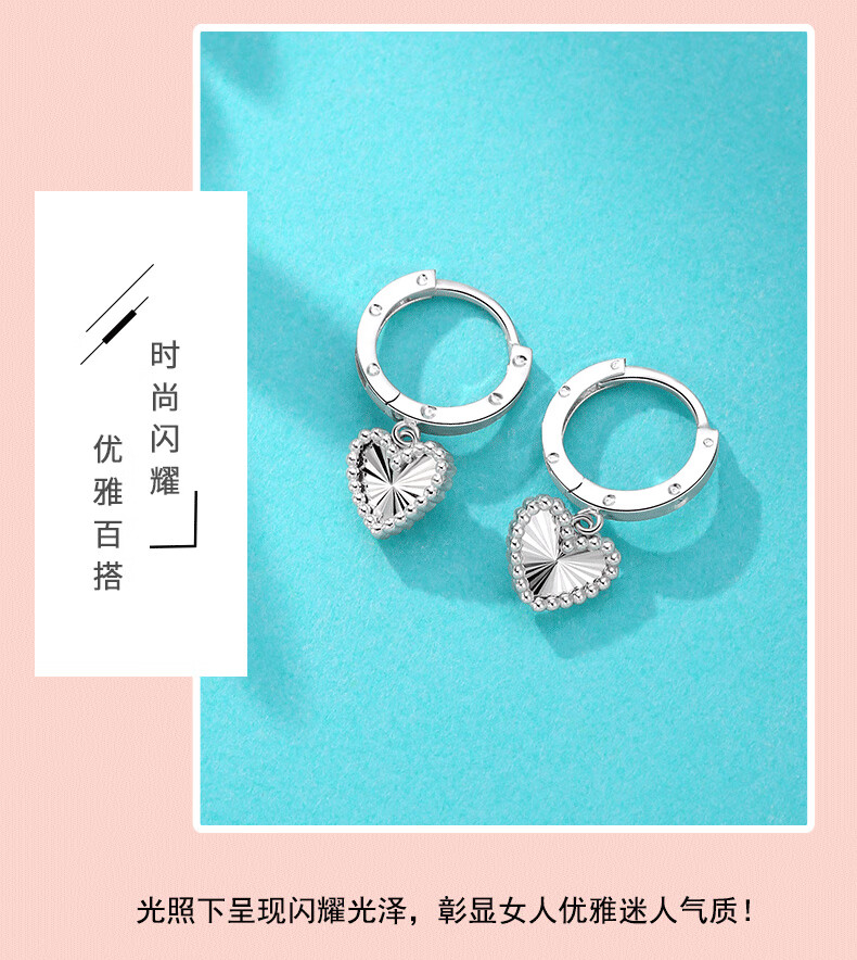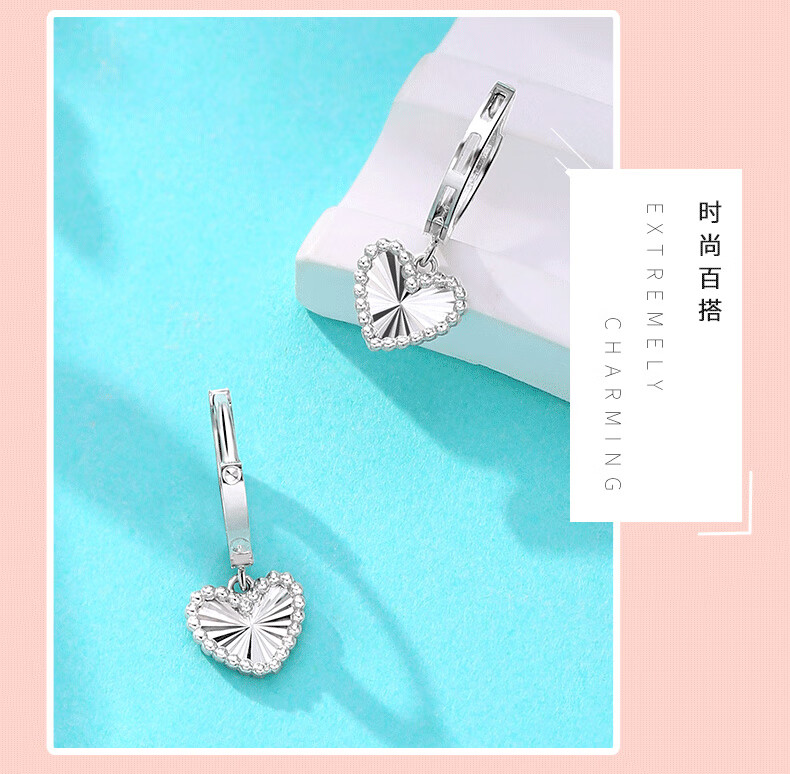 Yuan Shengfu's new boutique PT950 heart-shaped imitation diamond platinum earrings, simple and versatile platinum earrings, platinum heart-shaped earrings, 2.46g