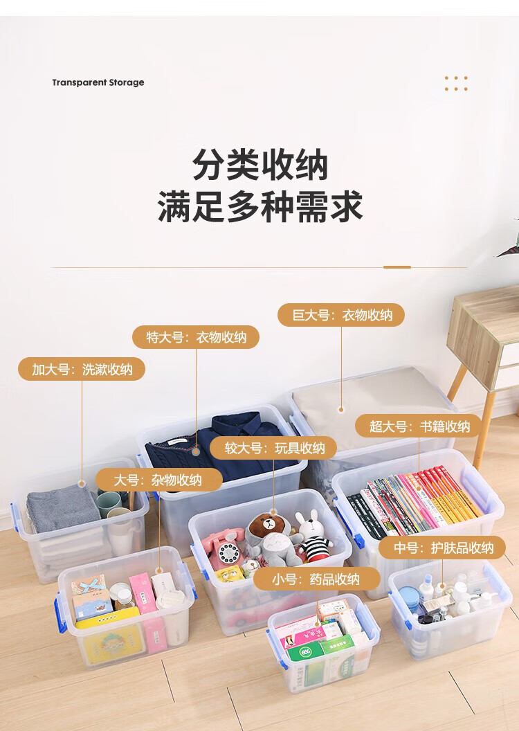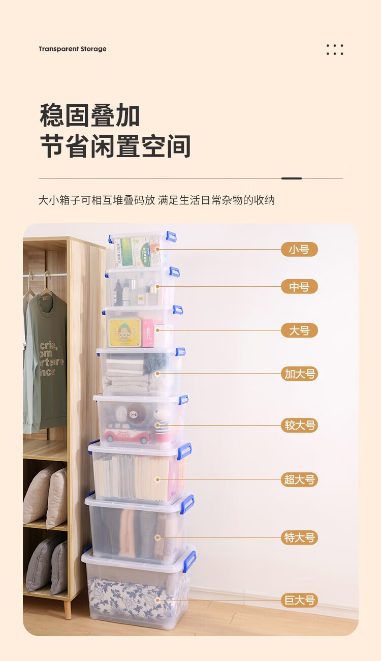 Sivir thickened transparent storage box plastic large and small car home storage box for clothes and toys multi-functional storage box transparent discount 2-piece set medium + medium