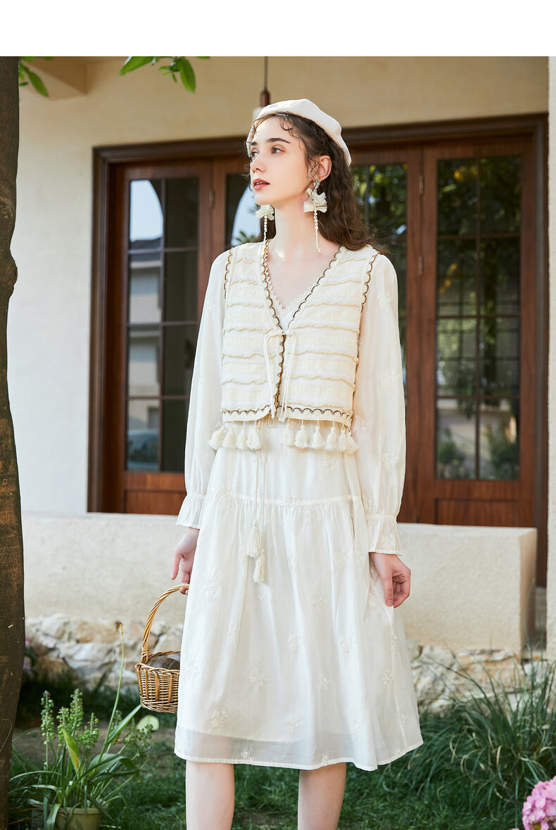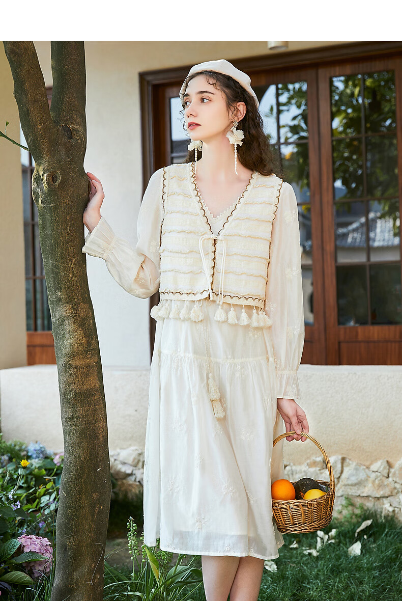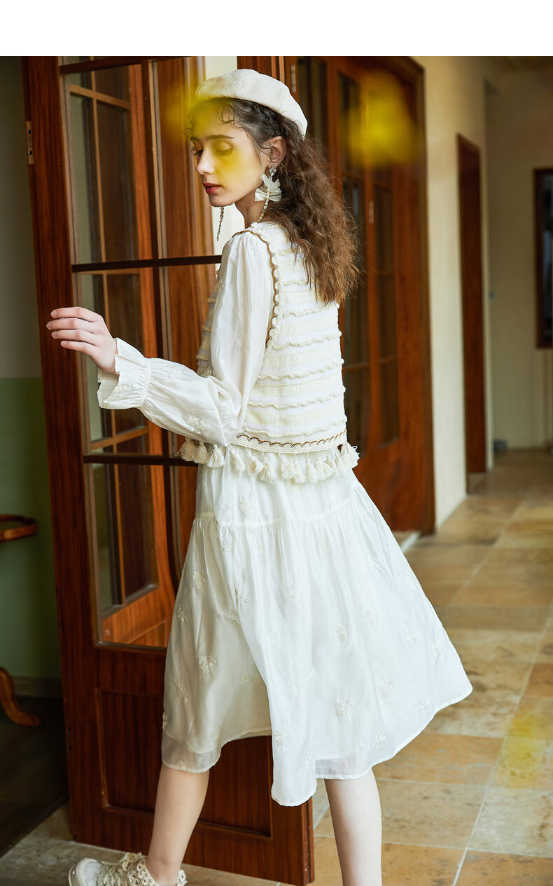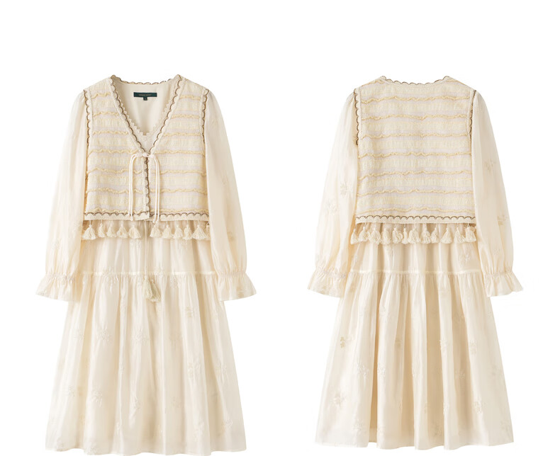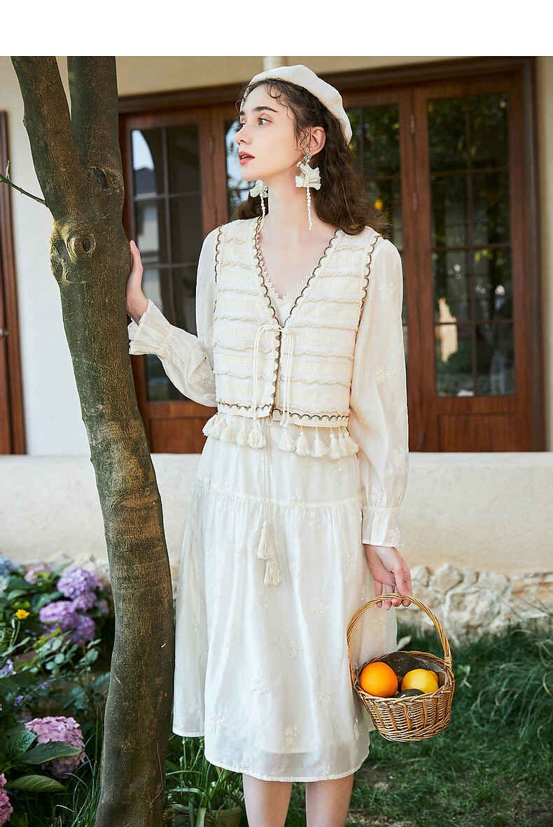 Wancaoyi complete set with two-piece suit skirt women's design spring autumn new long-sleeved dress off-white M