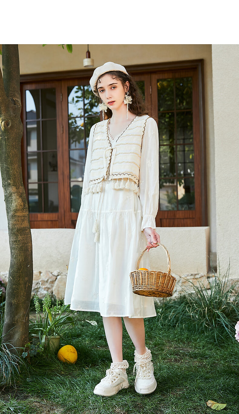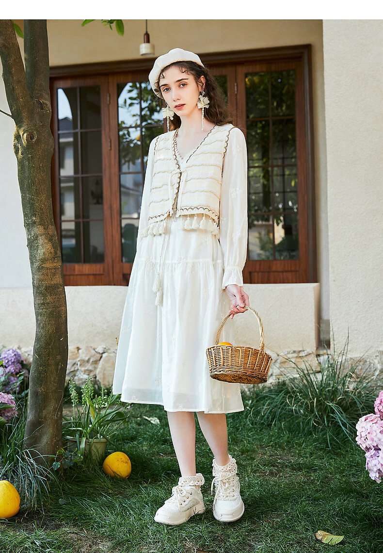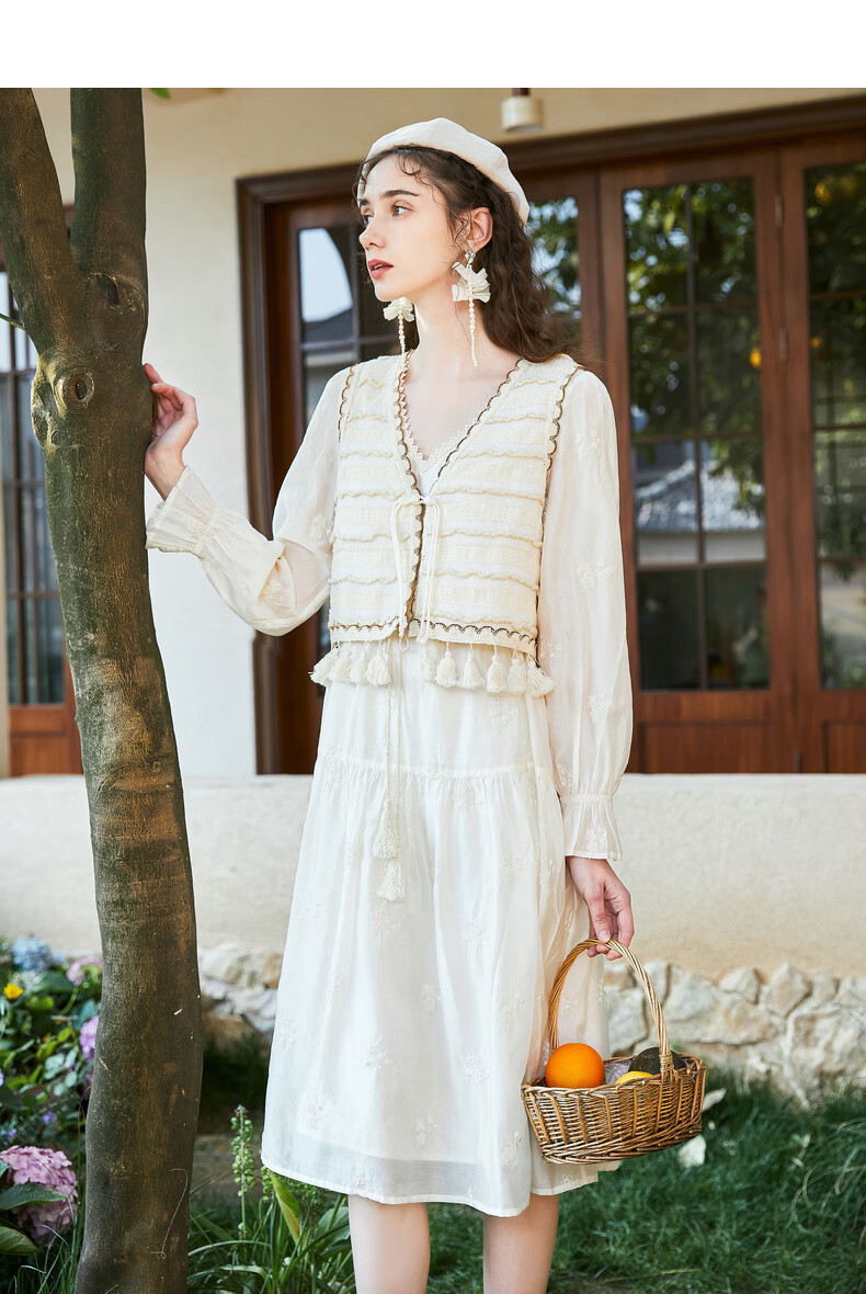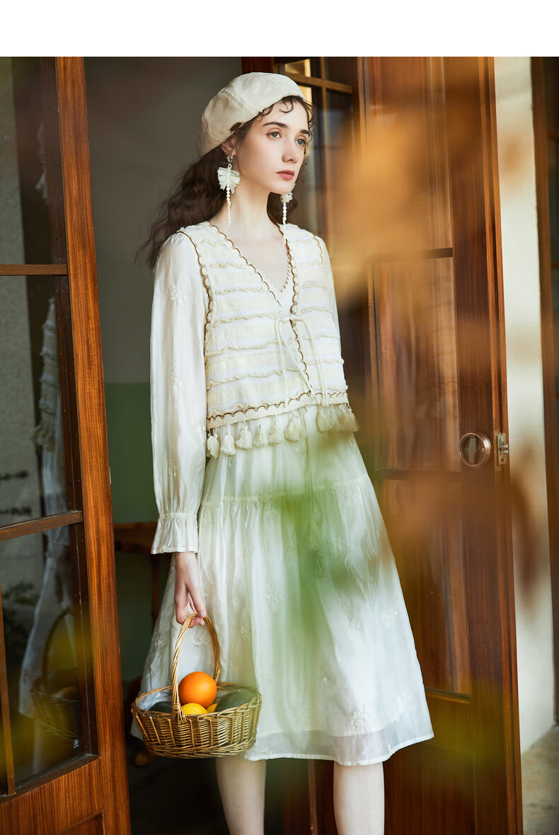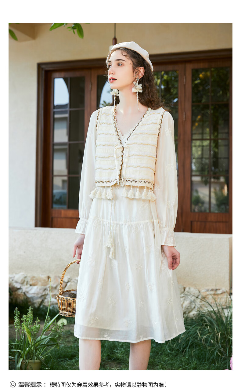 Wancaoyi complete set with two-piece suit skirt women's design spring autumn new long-sleeved dress off-white M