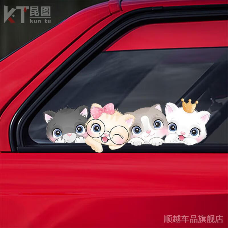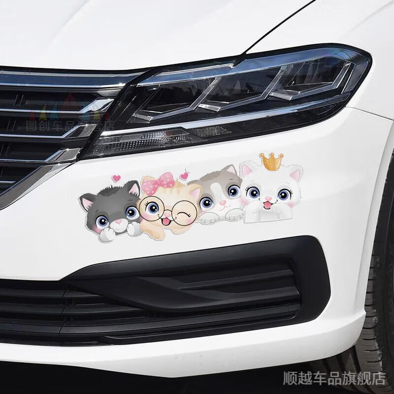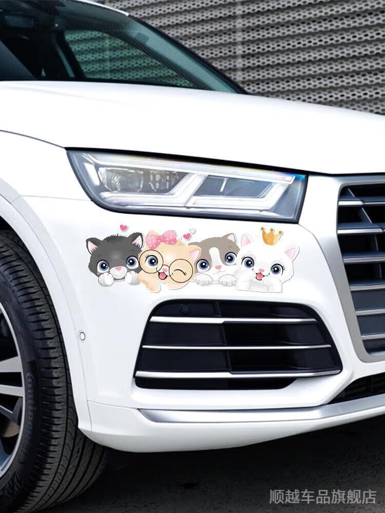 Sivir car stickers large strips scratches cover stickers front and rear bumper body stickers cute cat decorative stickers four cats 25X8CM single sheet