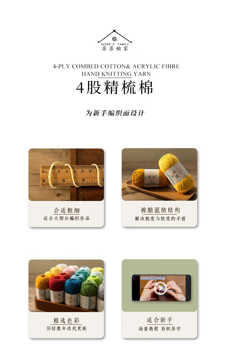 Sister Susu's 4-strand combed cotton milk hand-knitted doll diy crochet material bag baby wool ball sweater 06# milky white