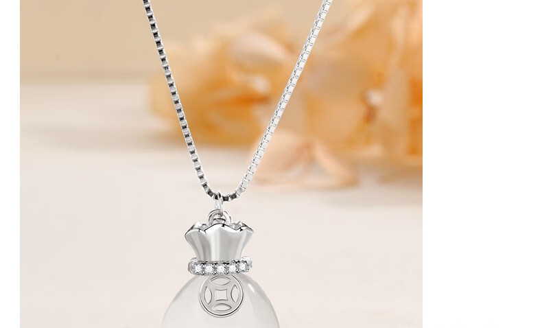 Avro S925 Silver Chalcedony Lucky Bag Necklace Women's Money Bag Pendant for Girlfriend and Wife's Birthday Chinese Valentine's Day Gift Golden Lucky Bag Necklace + Certificate + High-end Gift Box