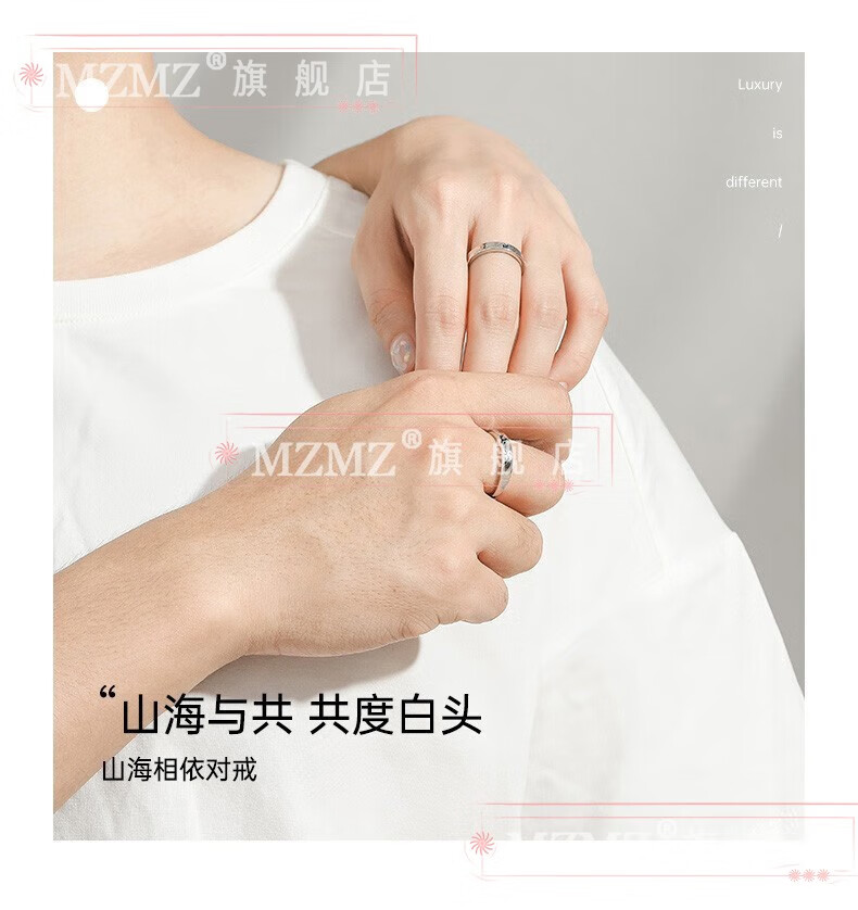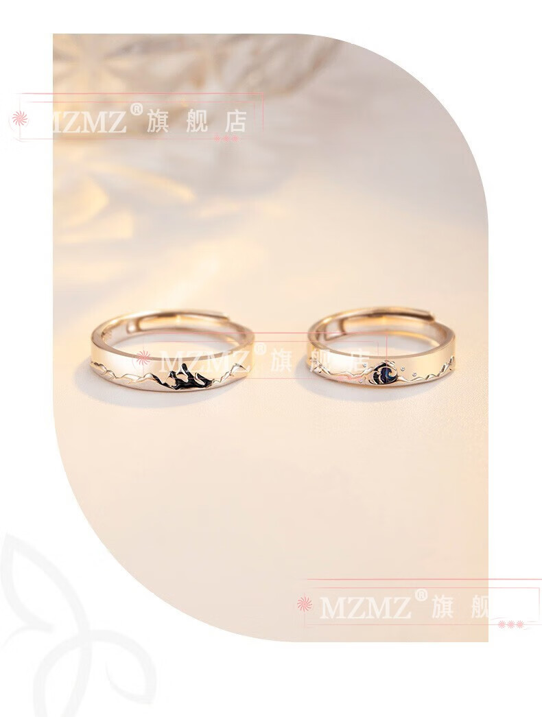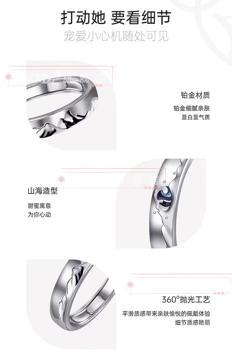 MZMZ platinum ring for couples PT950 platinum, wedding ring, love token, Valentine's Day birthday gift for girlfriend, local warehouse for next day delivery - light luxury mountain and sea love ring